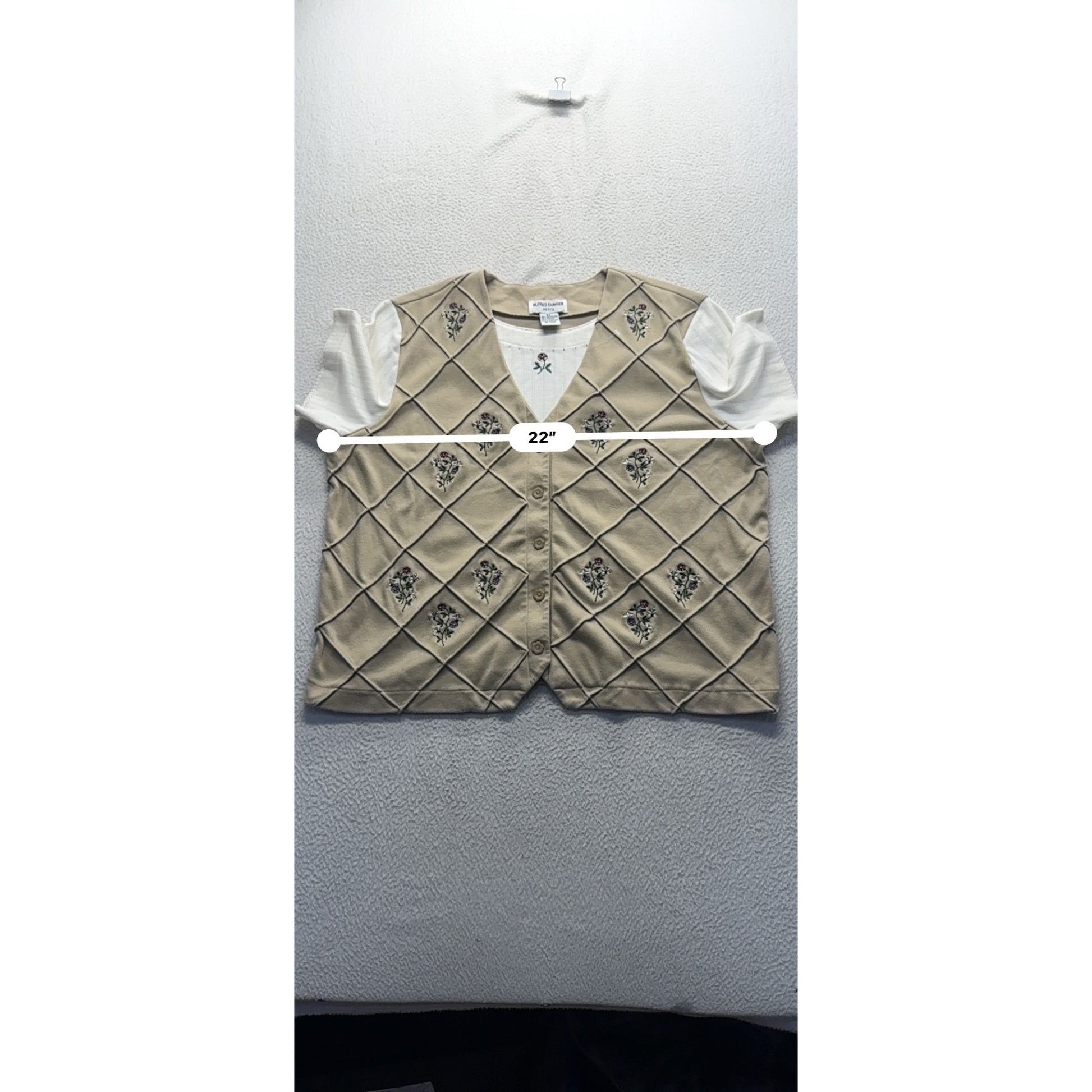 Alfred Dunner Petite Floral Embroidered Short Sleeve Button-Front Vest Top 81B
