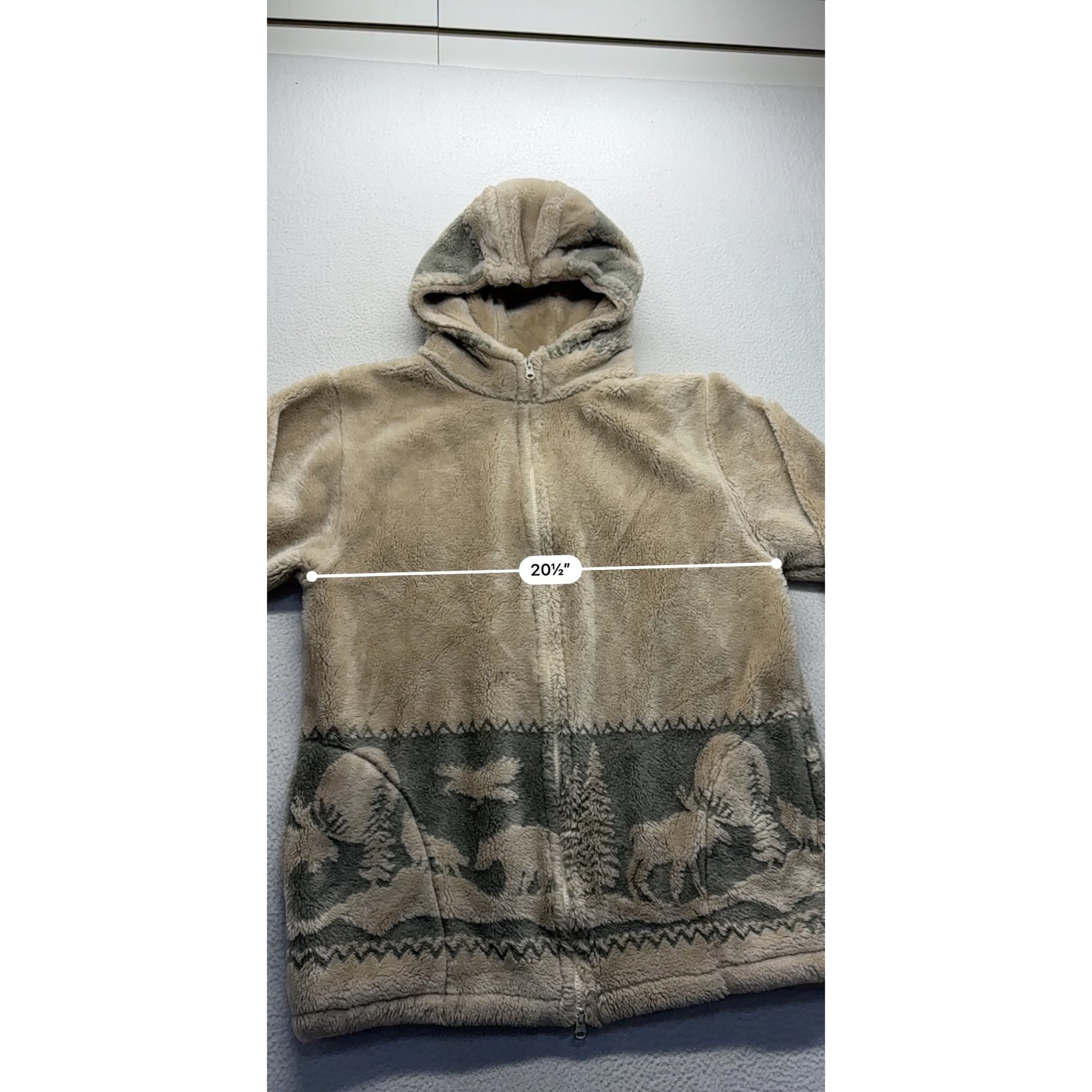 Andrea Fay Hooded Zip-Up Wildlife Scene Fleece Jacket #7515