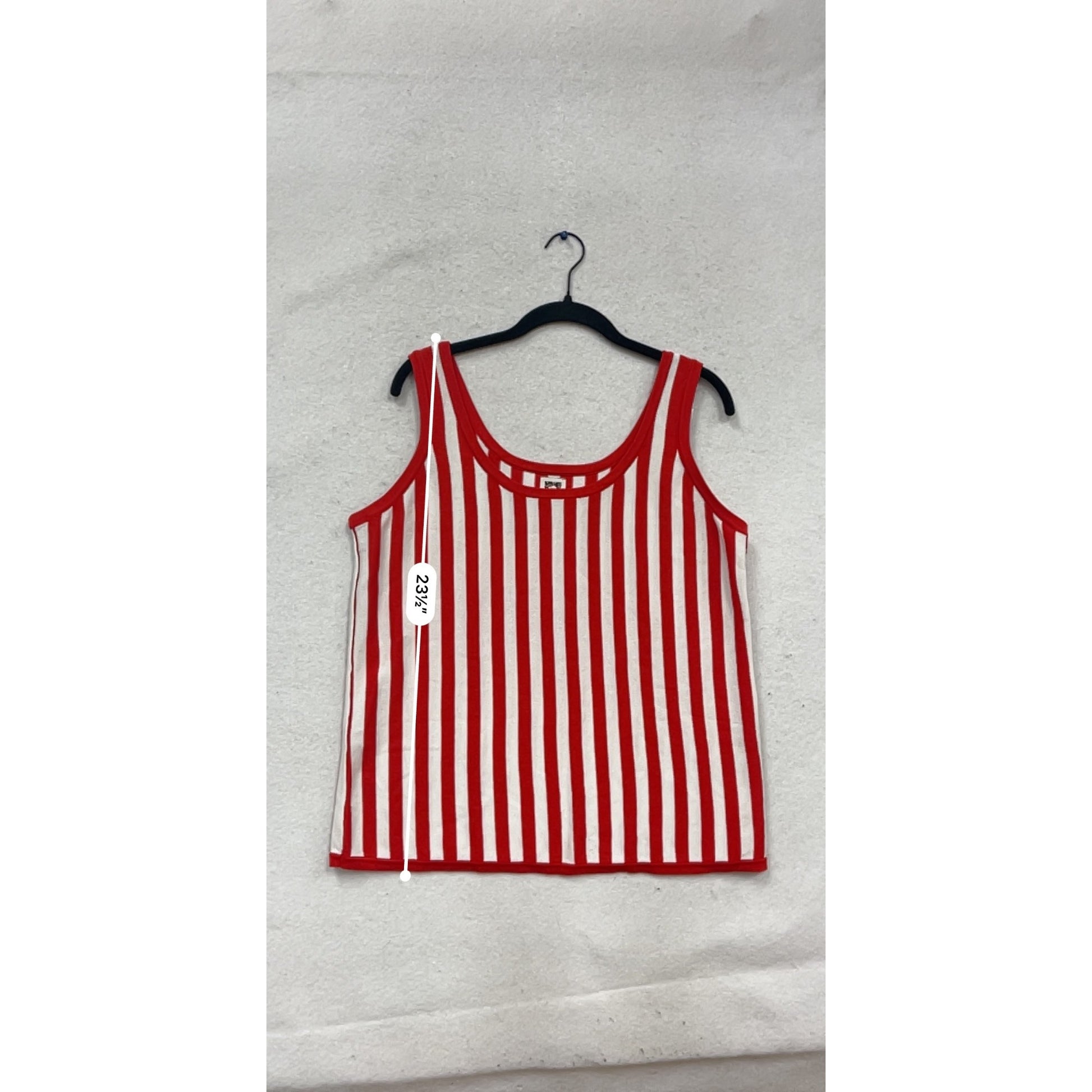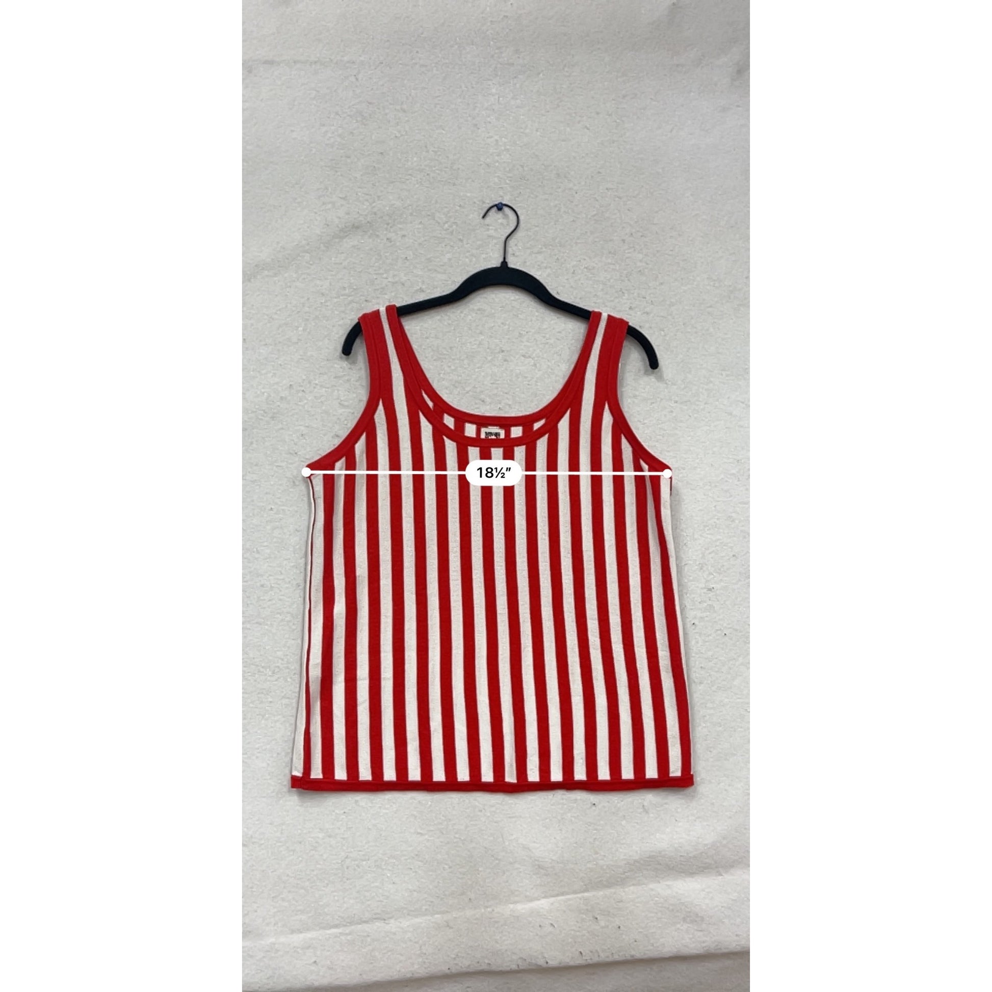 This Anne Klein tank top features a bold red and white striped design, ideal for a polished yet casual look. Crafted from quality materials, it offers comfort and style. This versatile piece can be paired with various outfits, making it an essential addition to your wardrobe.