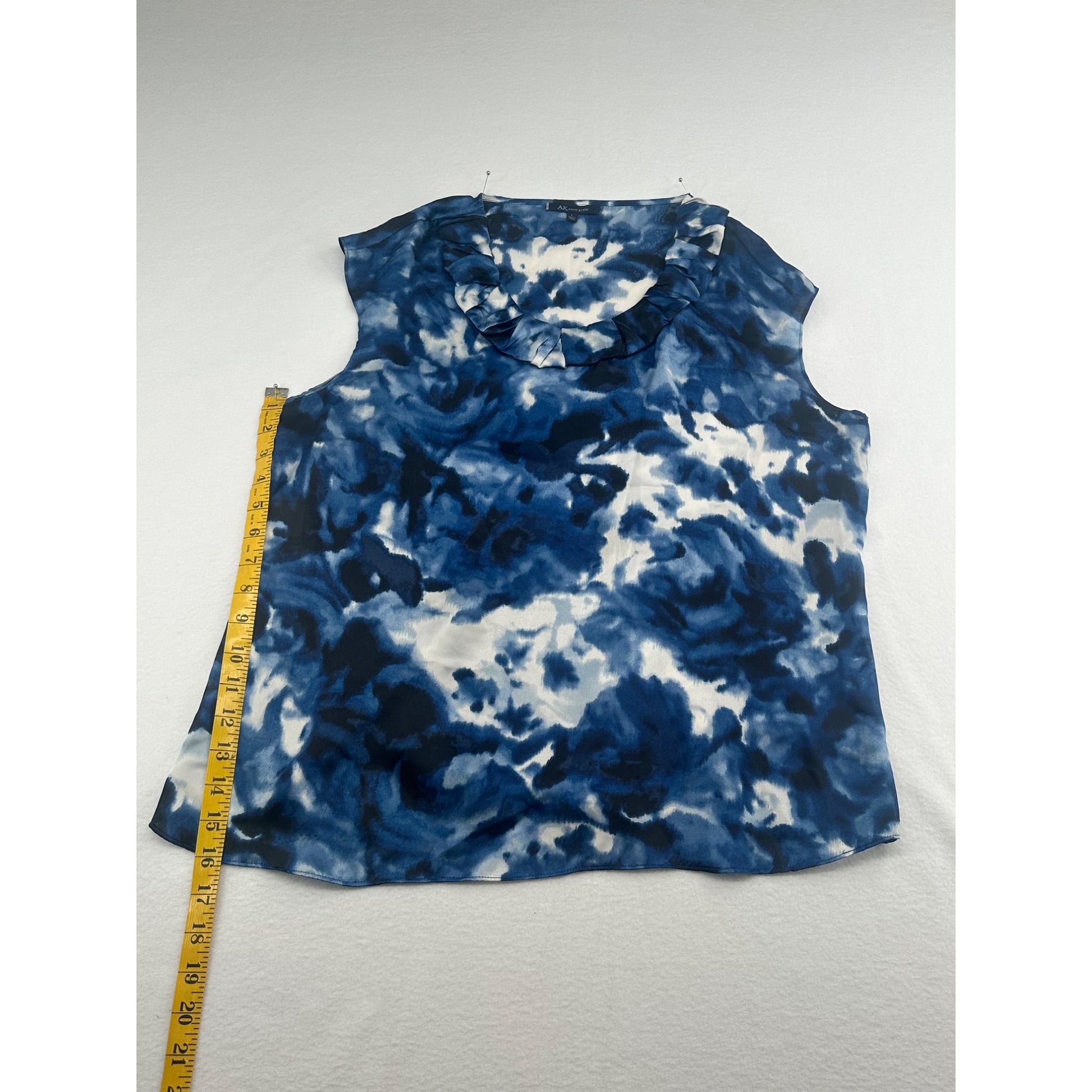 Anne Klein Womens Blue Tie-Dye Sleeveless Ruffled Blouse L #6316