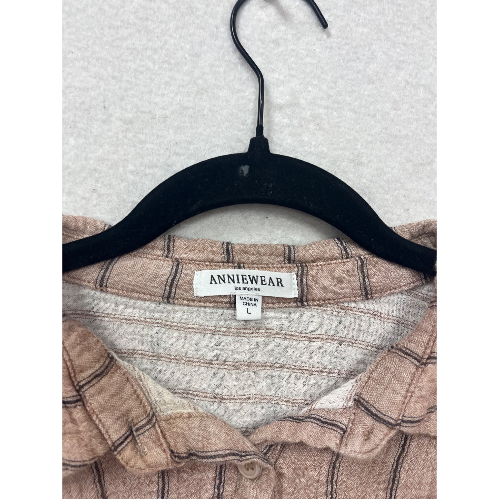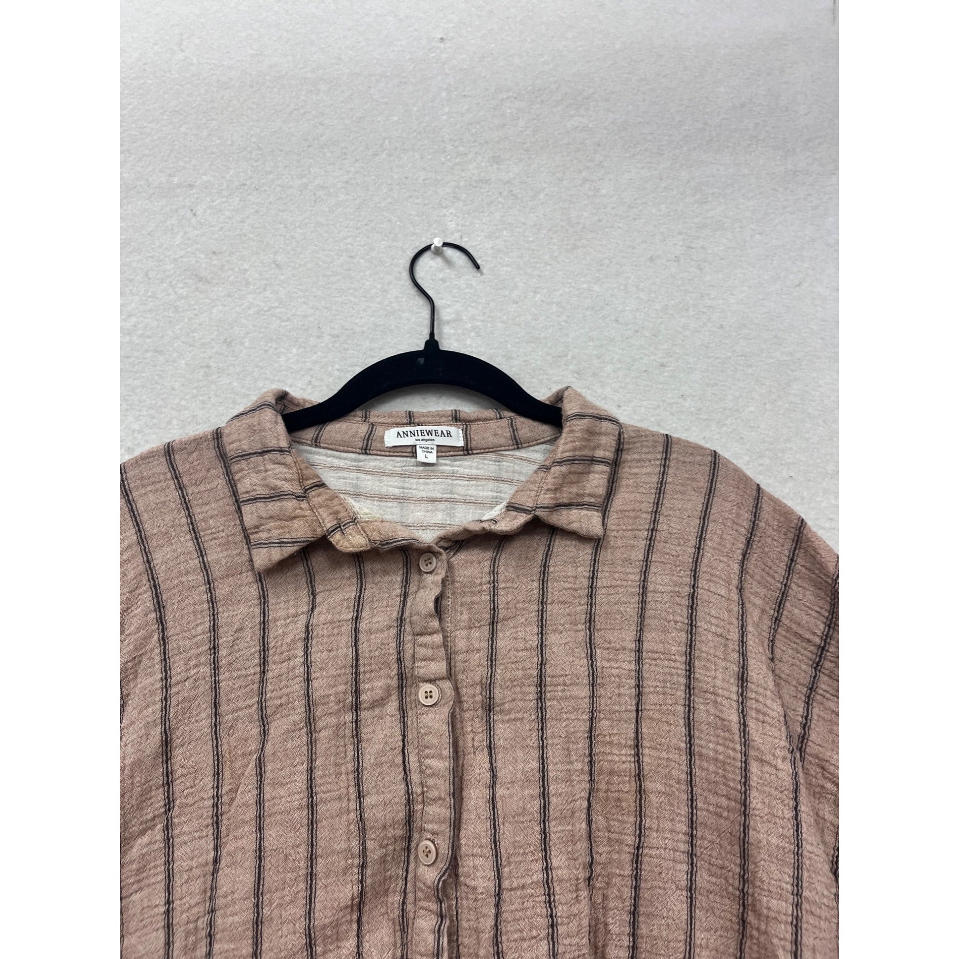 Anniewear Striped Latte Button-Up Blouse L #315A