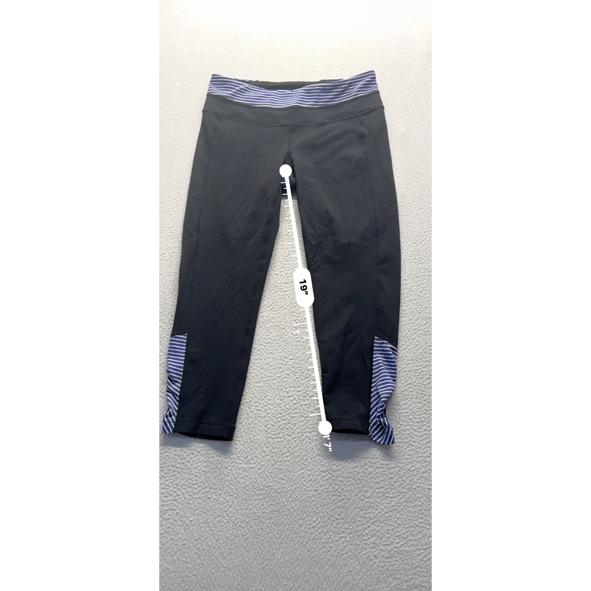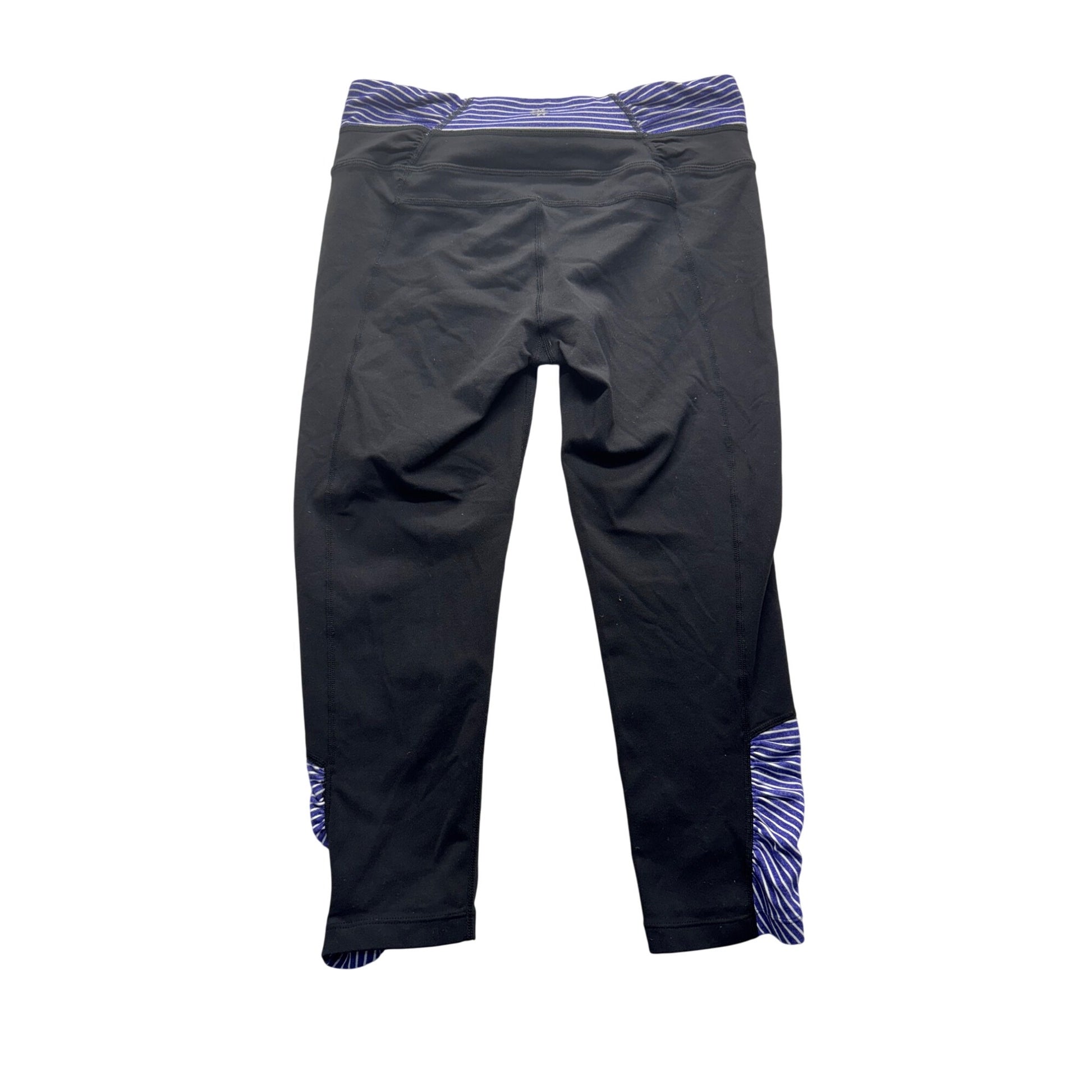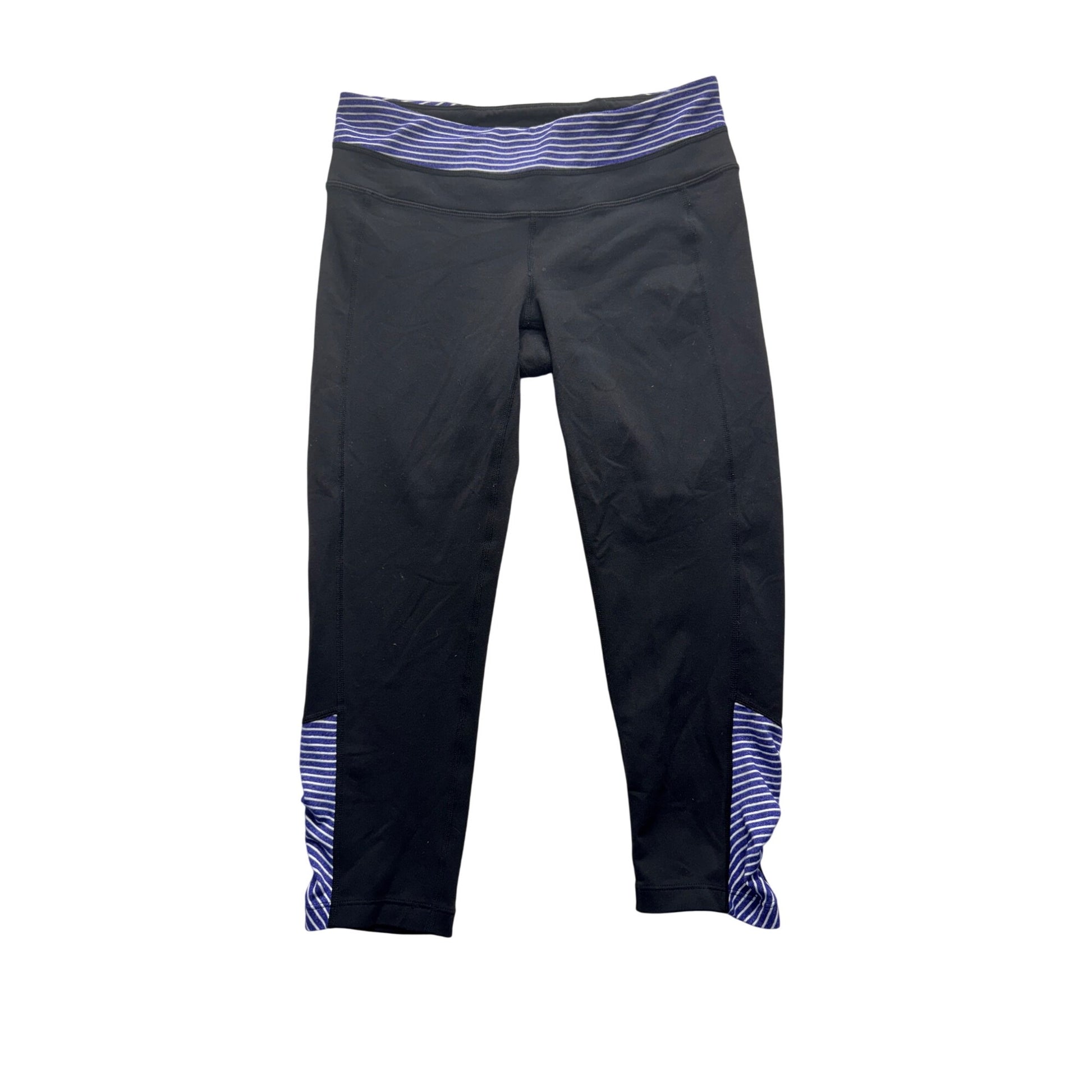 Athleta Black Capri Leggings Purple/White Striped Accents Size S #9131
