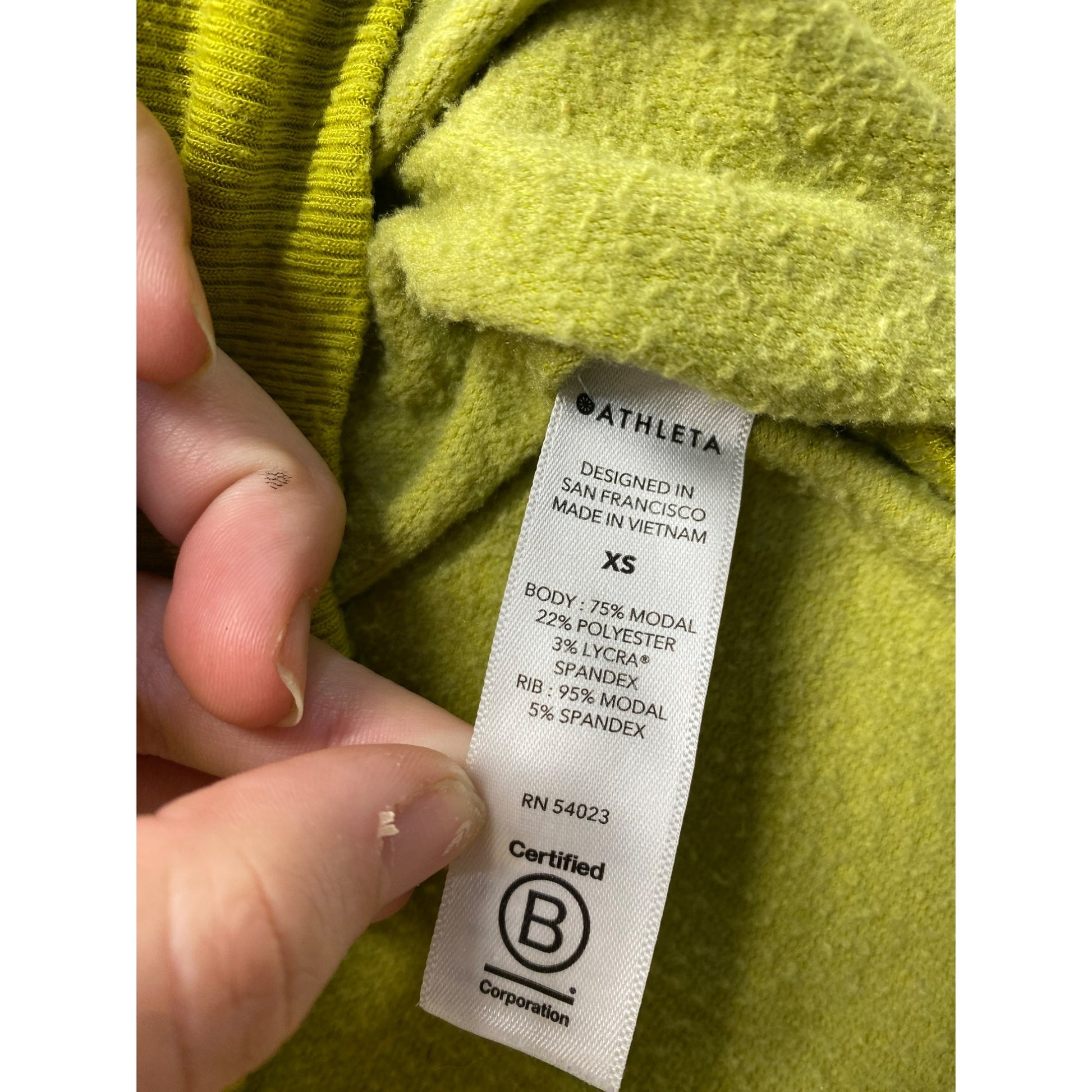 This Athleta long sleeve top offers comfort and style in a vibrant green hue. Designed with thumbholes, it's perfect for layering during cooler months.