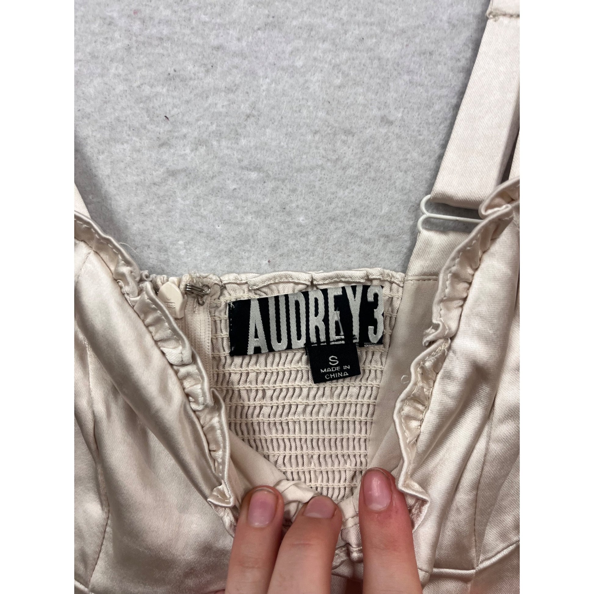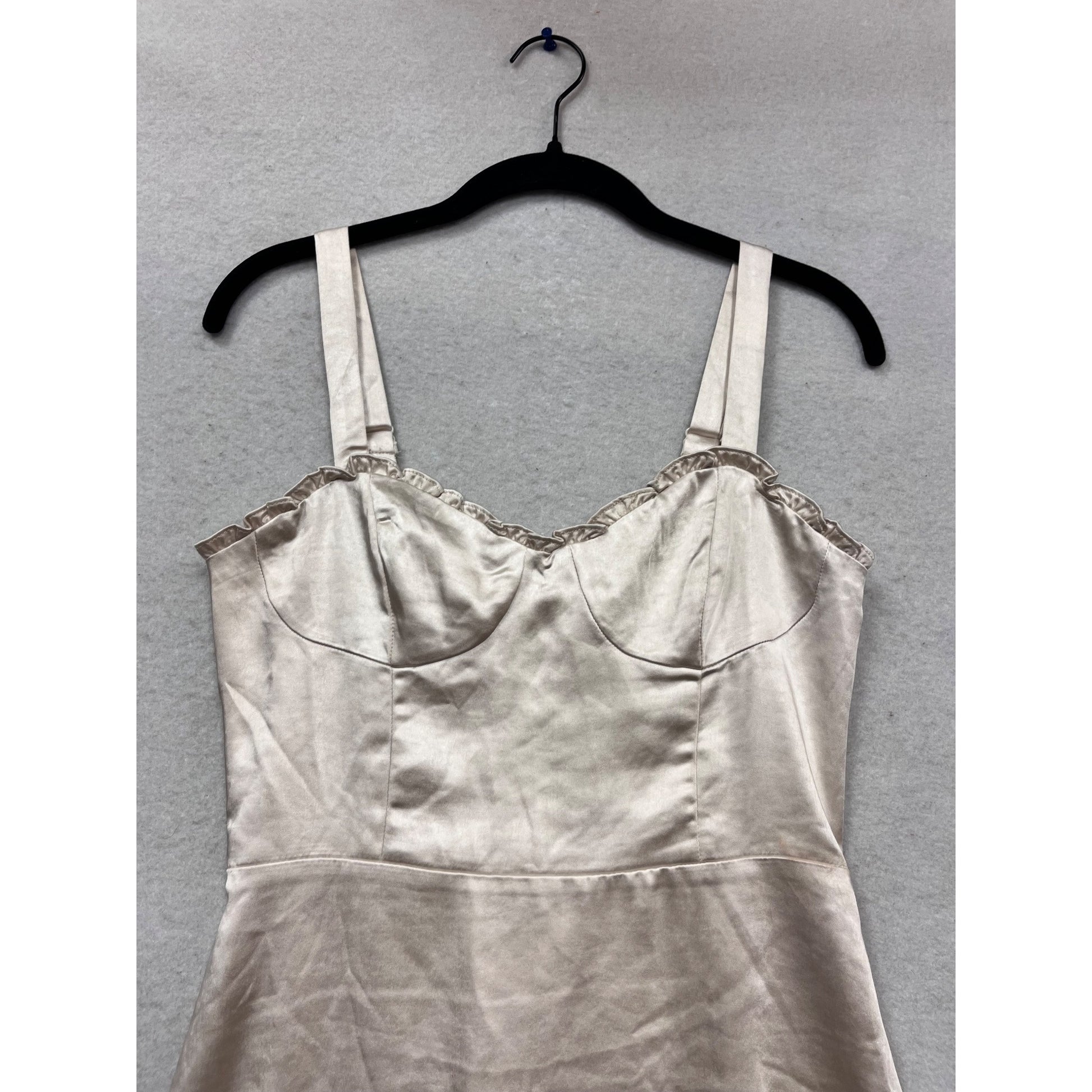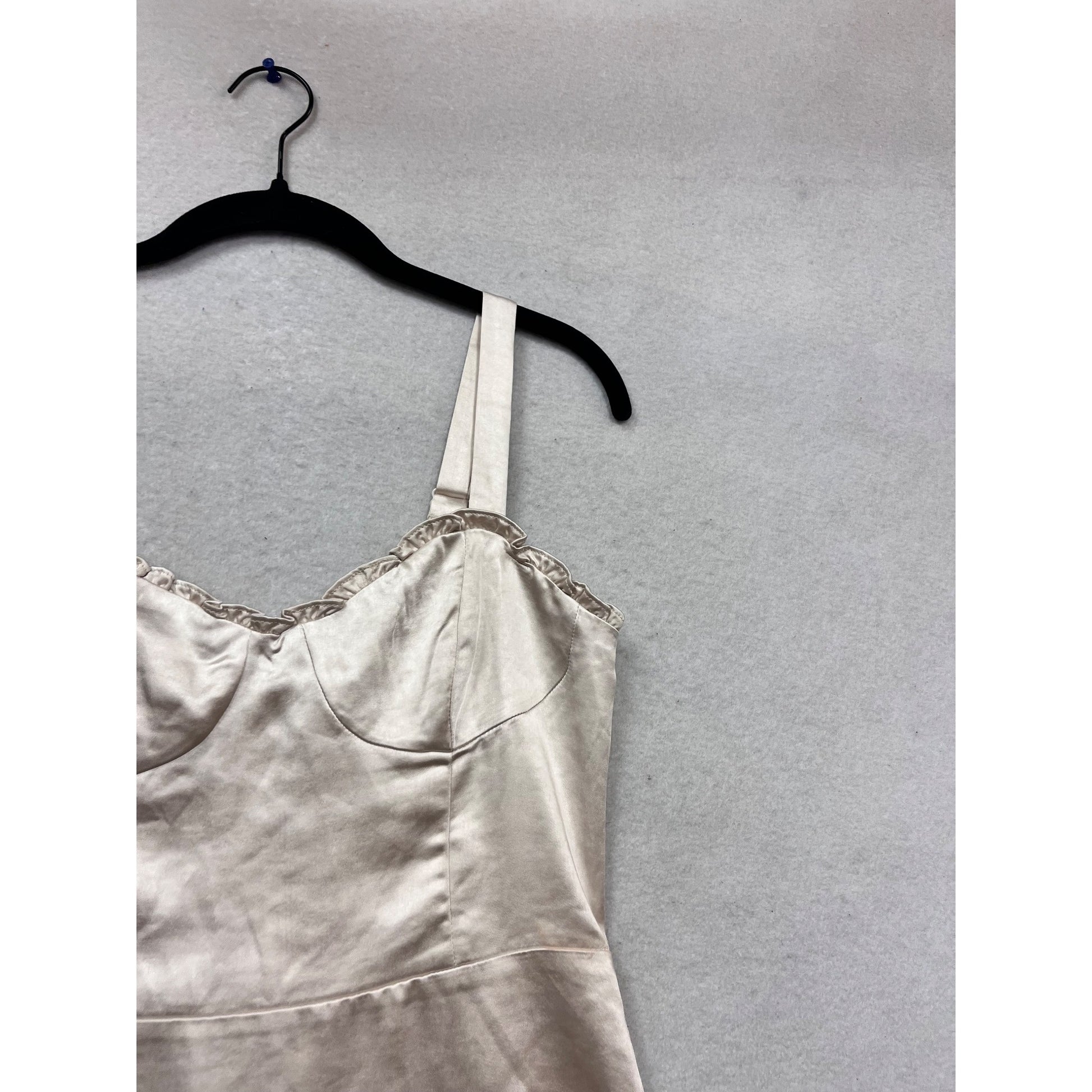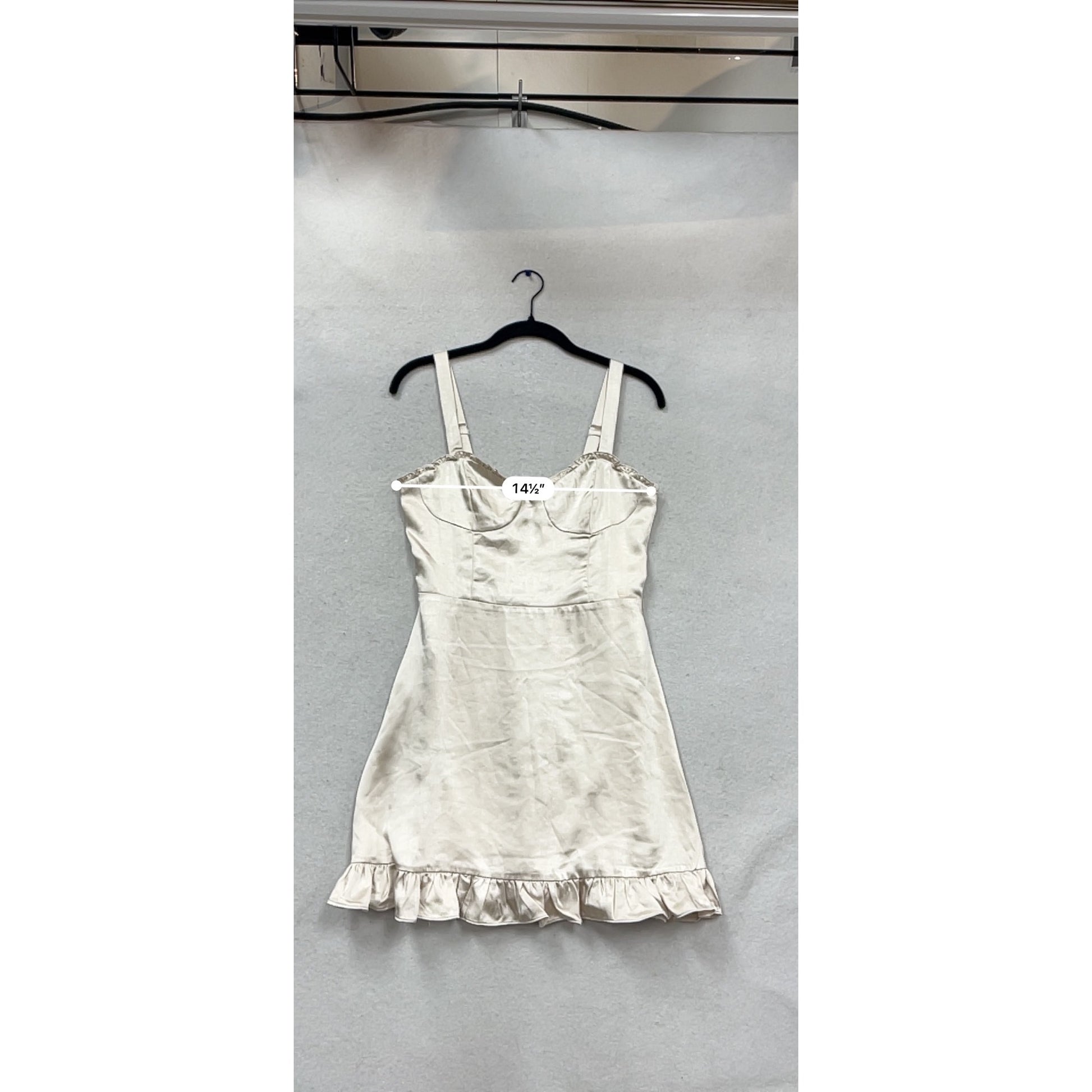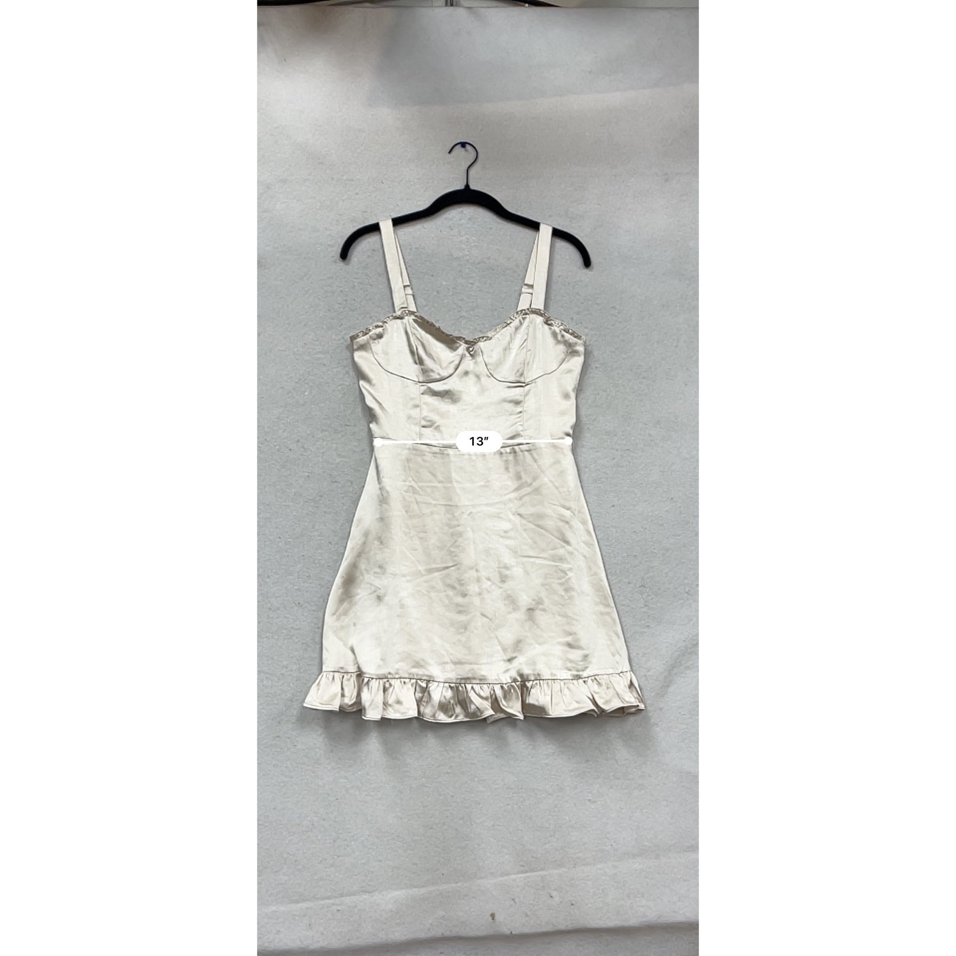 Audrey 3+1 Satin Mini Dress S Beige Ruffle Hem #968A