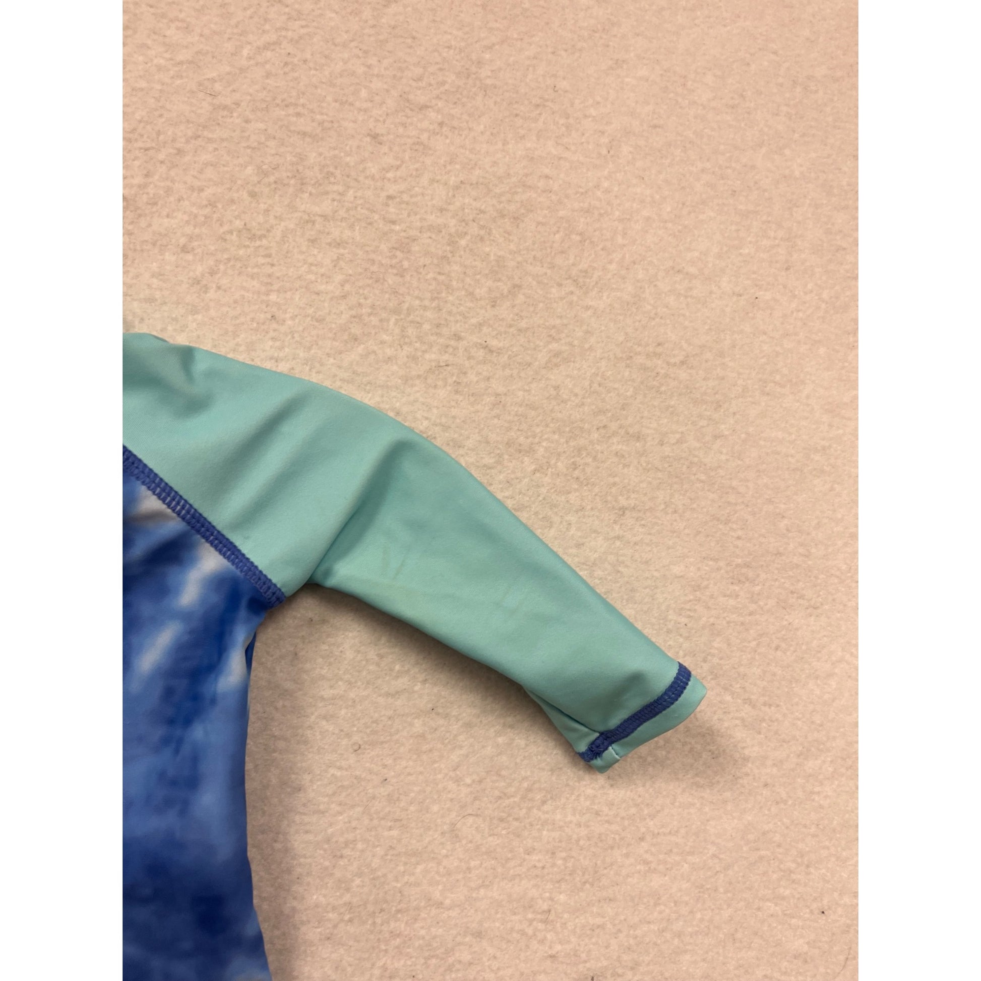 This lightweight rash guard offers UPF protection for sunny days. The tie-dye and aqua design adds style to comfort, ideal for summer swim sessions.