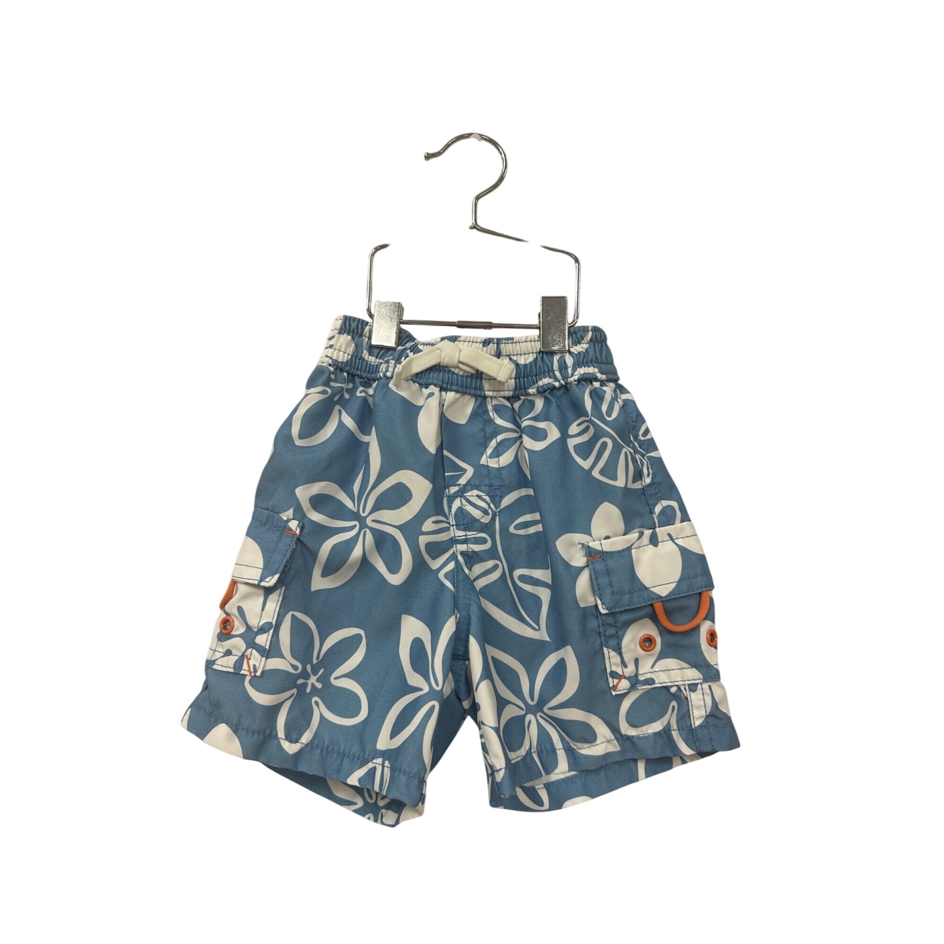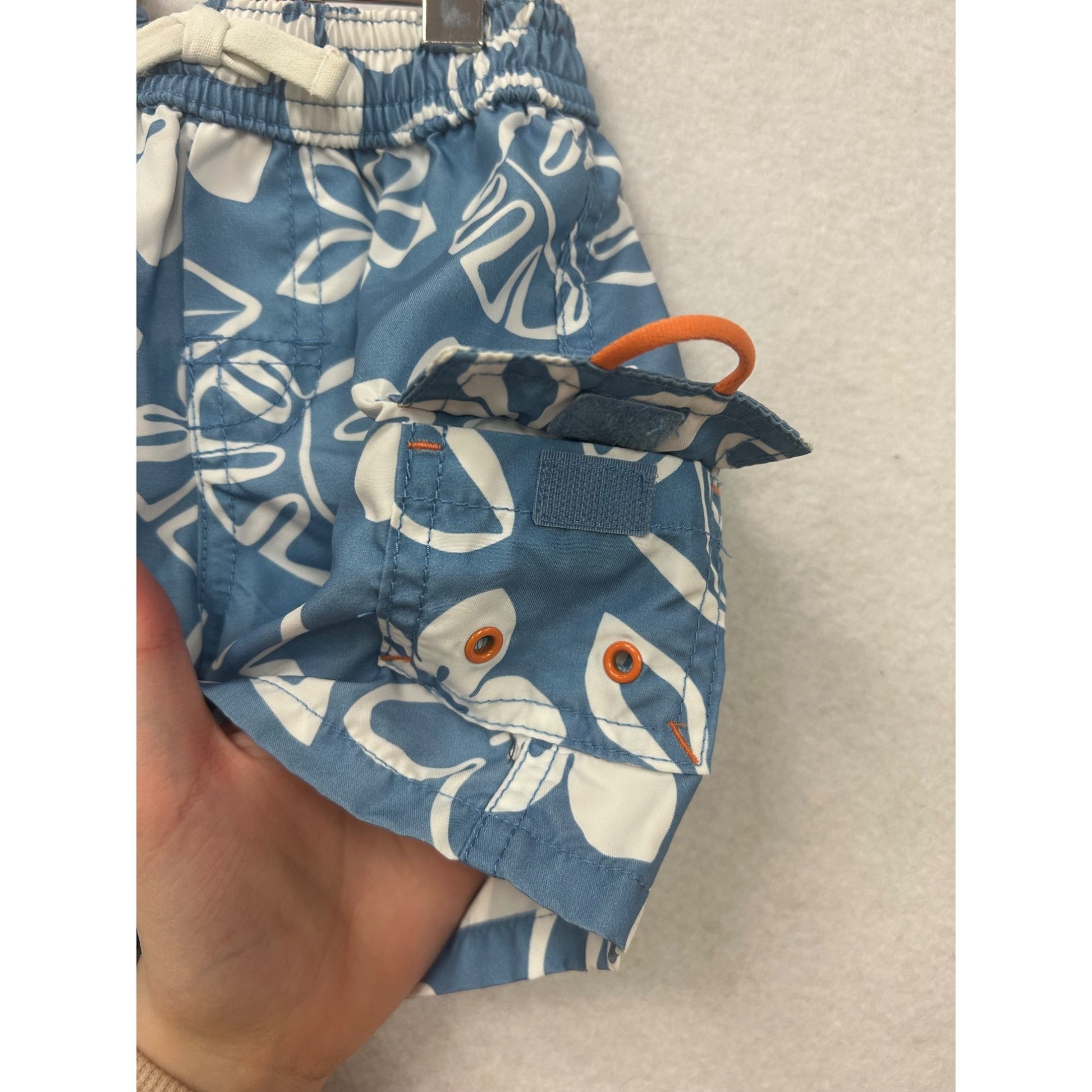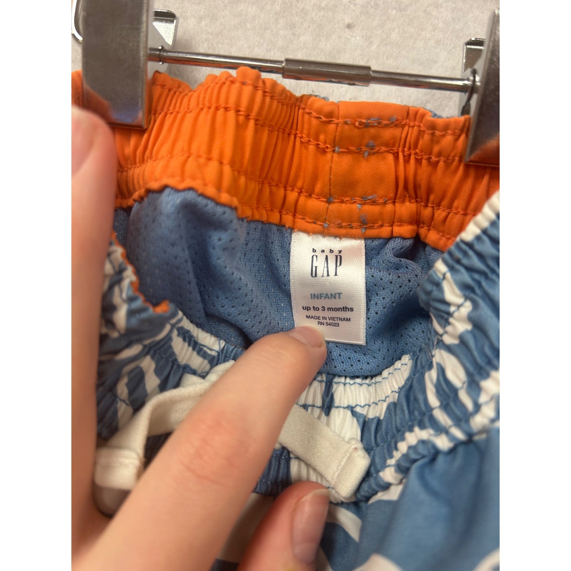 Baby Boys Gap Hawaiian Print Swim Shorts Size 0-3 Months Elastic Waist & Pockets Polyester Blue & White #6595