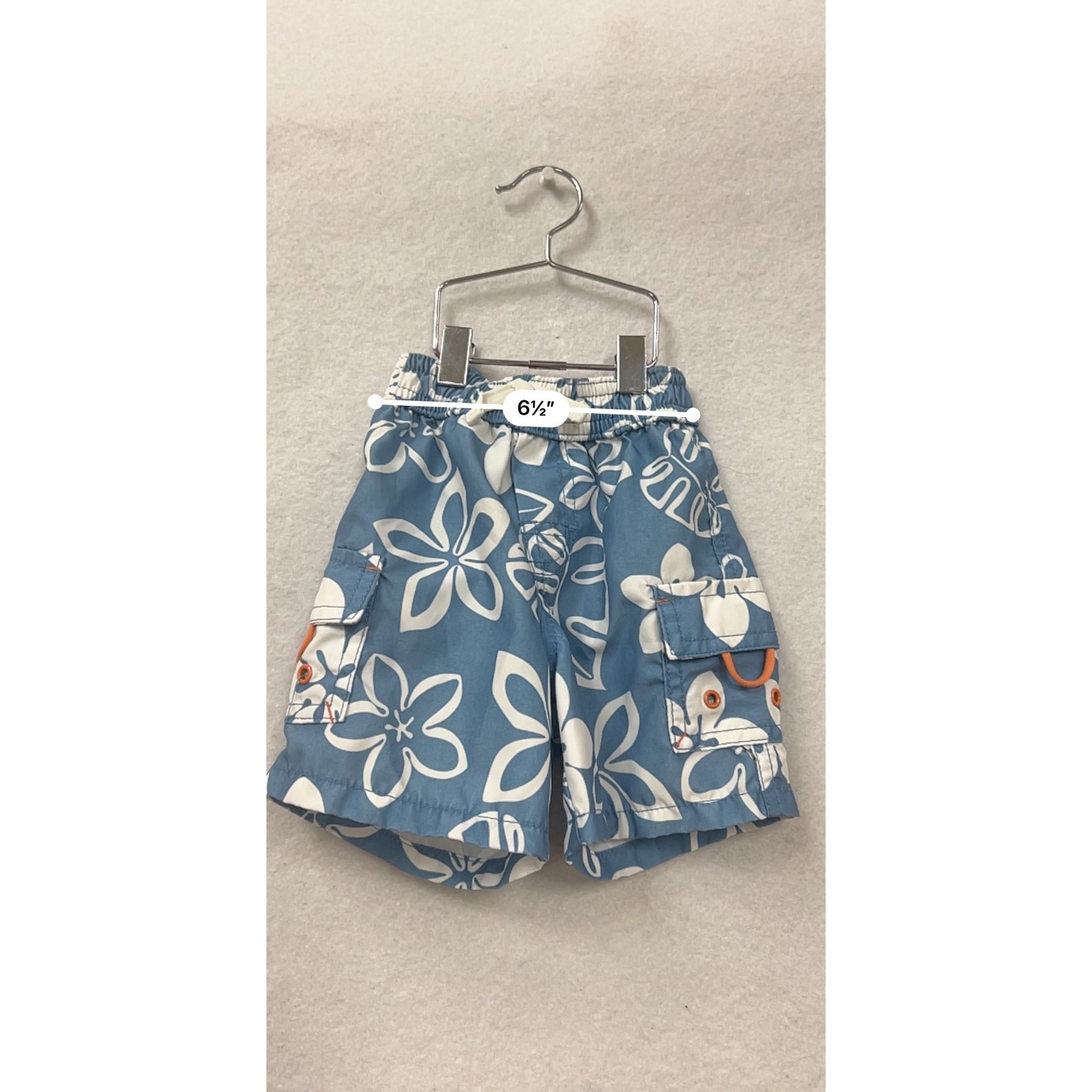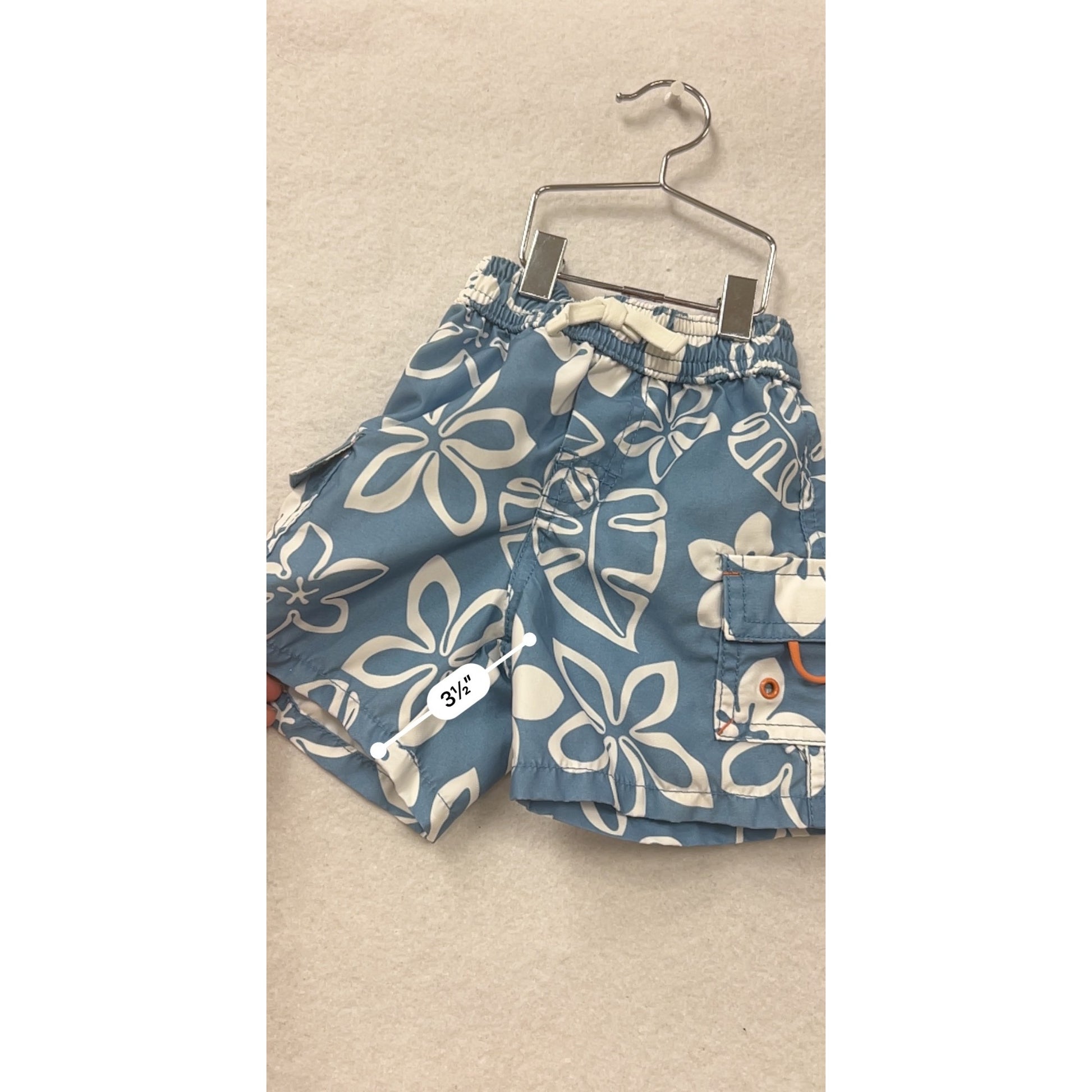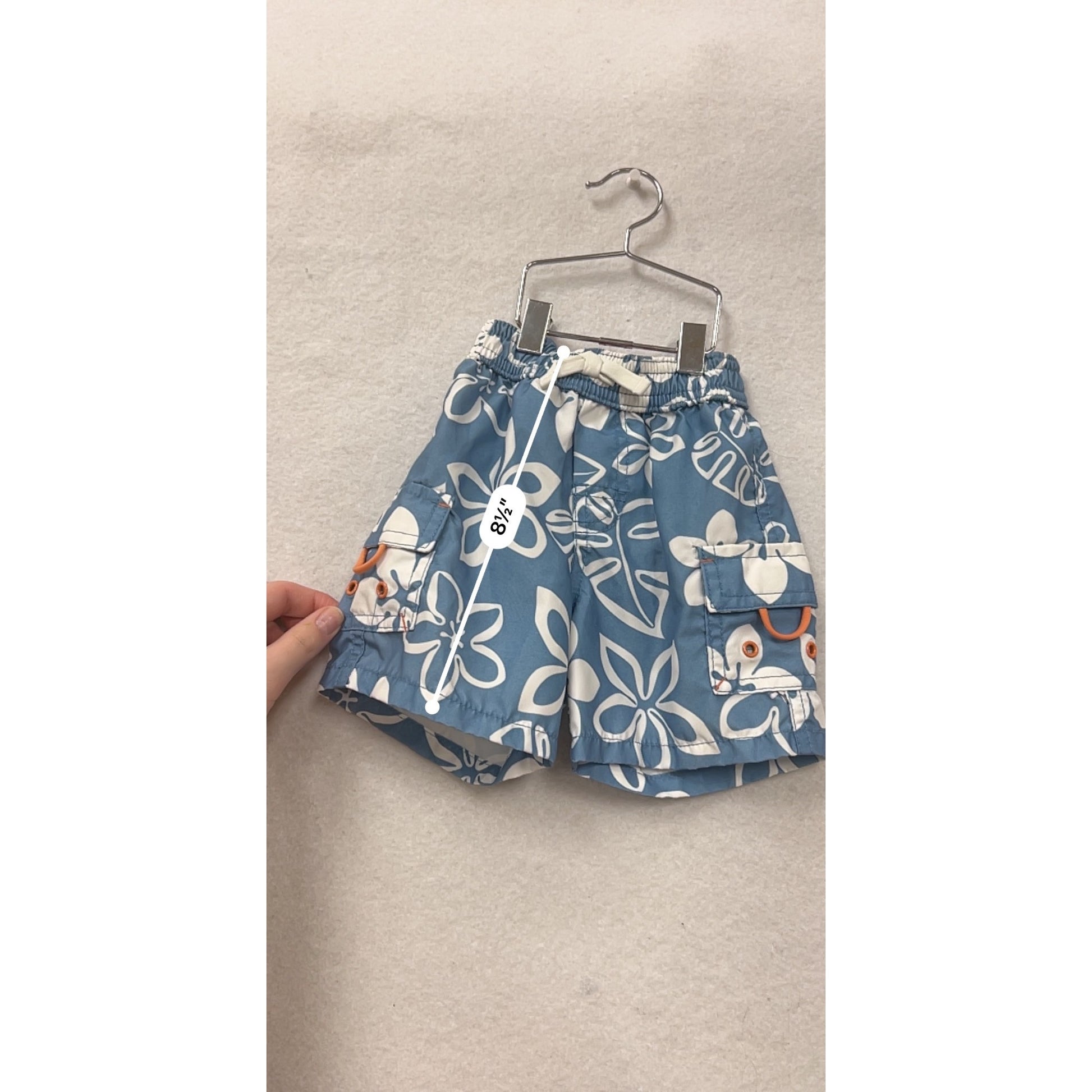 Baby Boys Gap Hawaiian Print Swim Shorts Size 0-3 Months Elastic Waist & Pockets Polyester Blue & White #6595