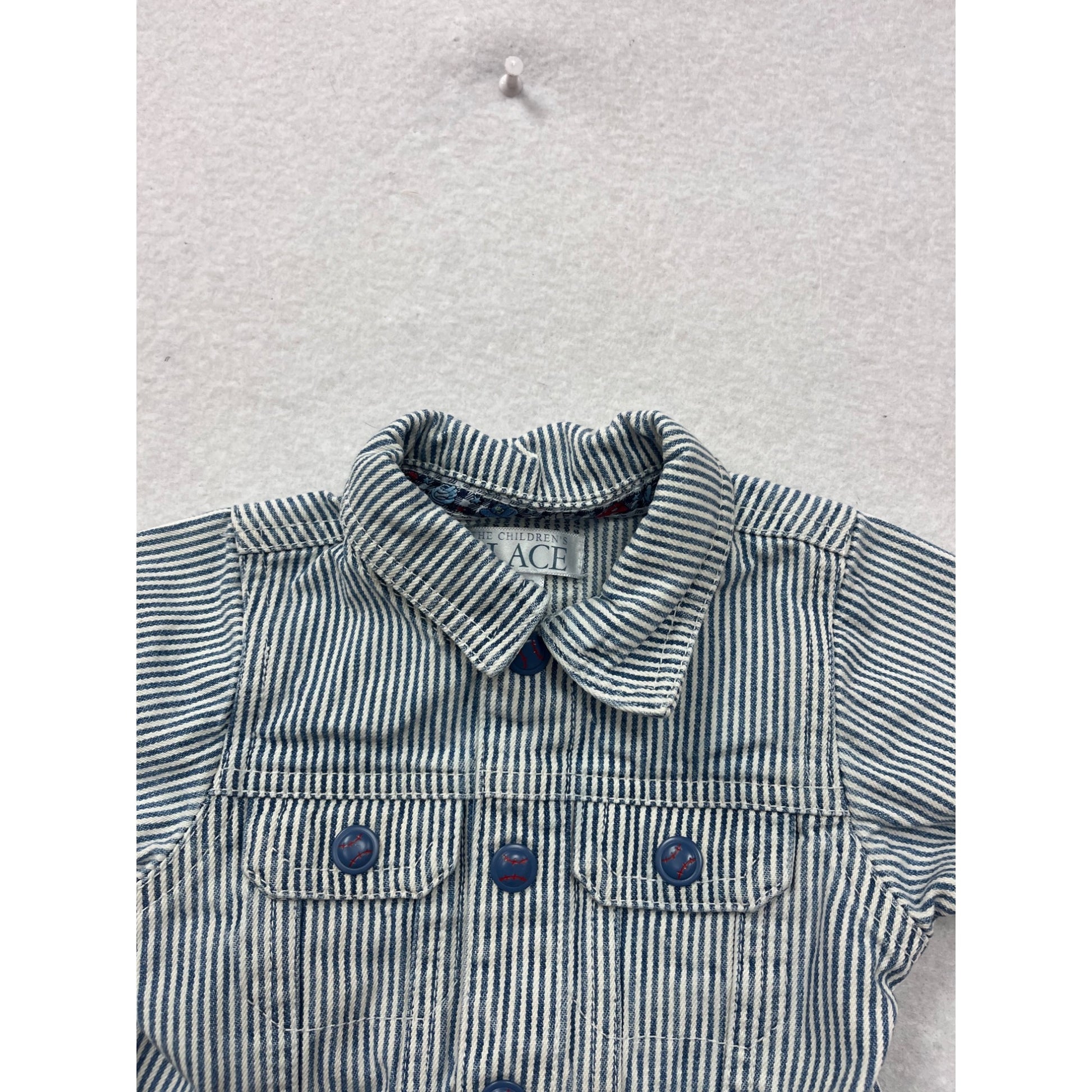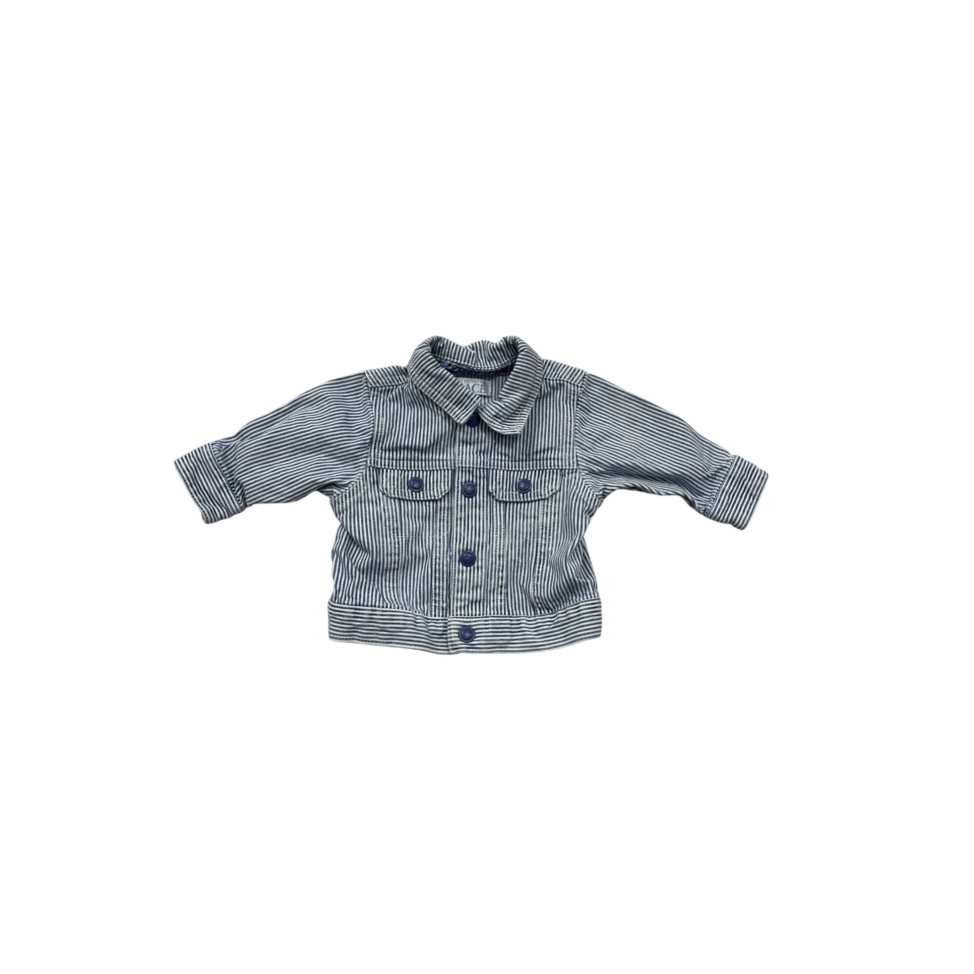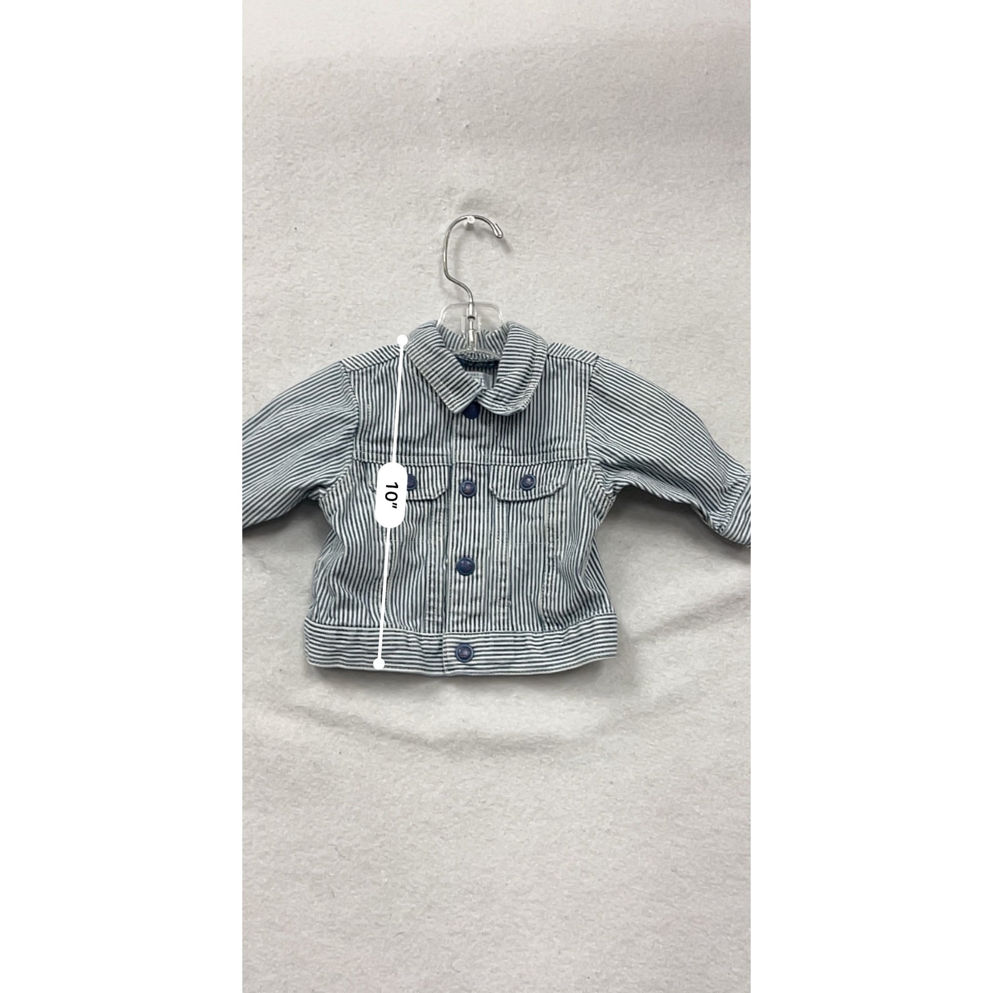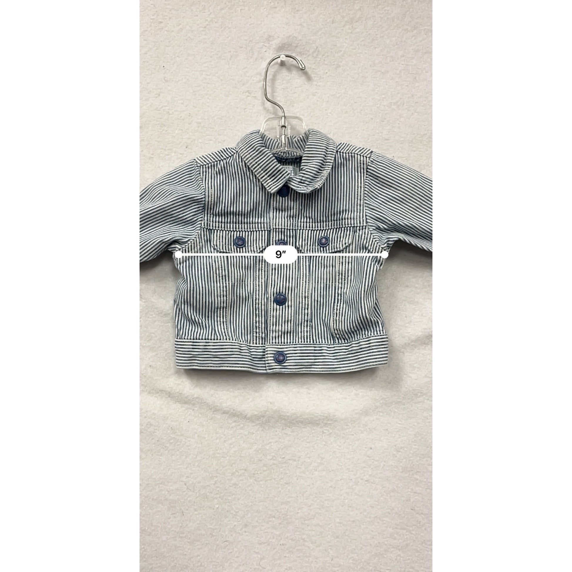 Baby Striped Denim Jacket 0-3M By The Childrens Place With Button-Up Front & Foldable Cuffs #6874