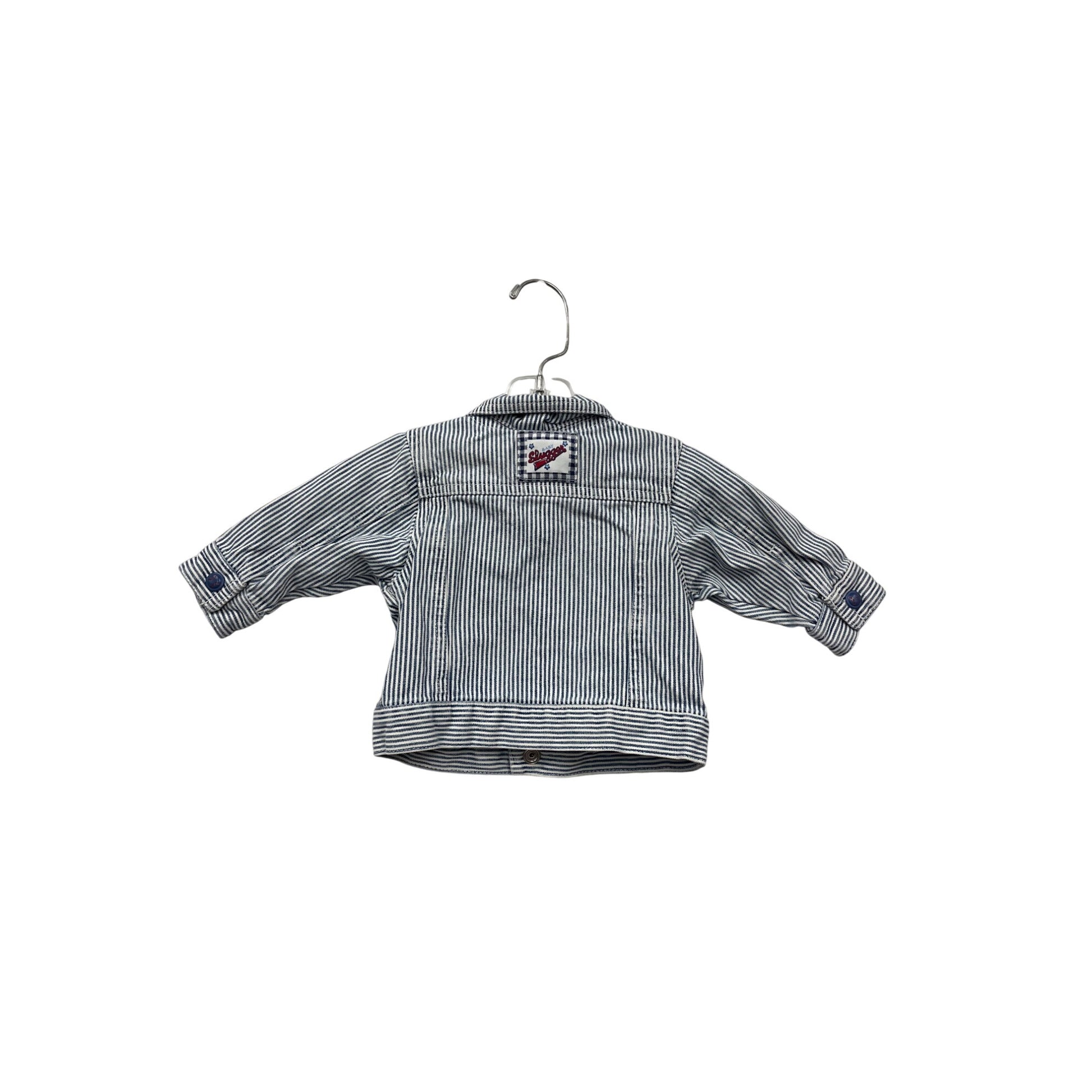 A lightweight cotton jacket for infants, offering a classic striped design with button-up closure. Comfortable and stylish, ideal for layering during cooler days.