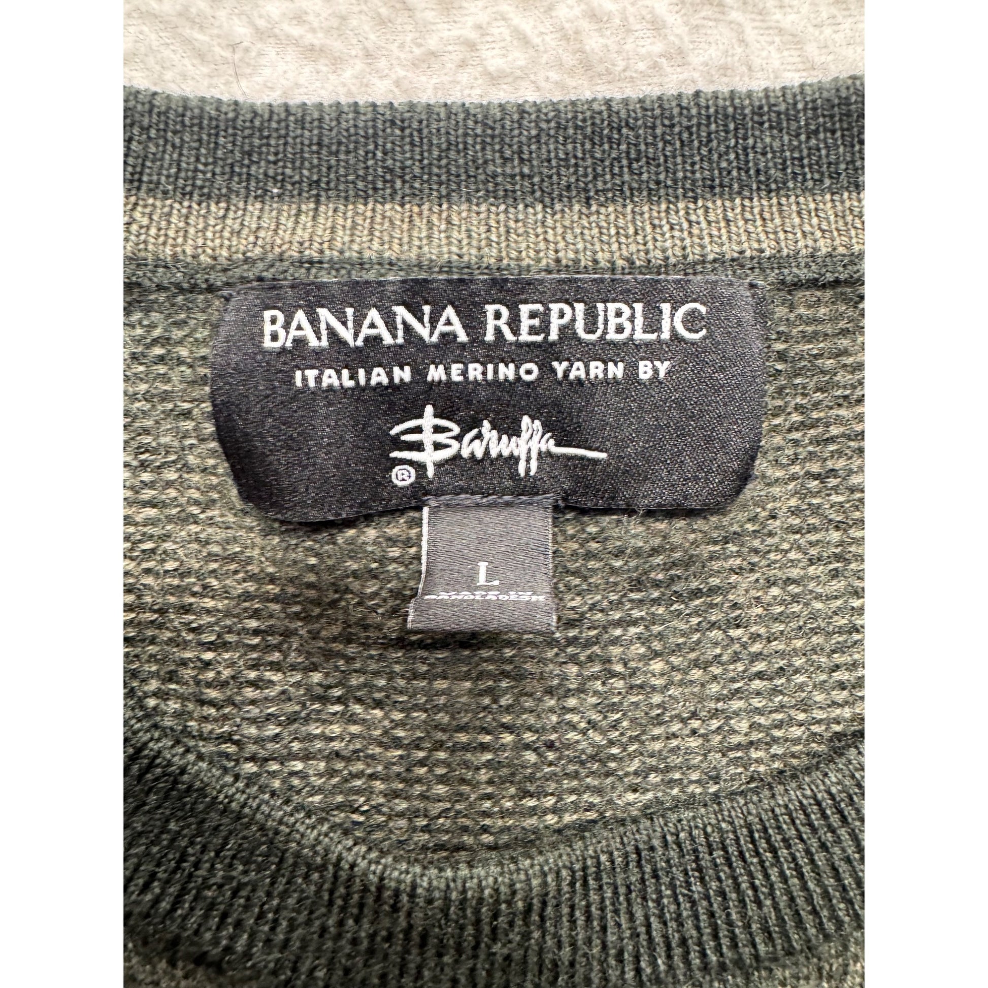 Banana Republic Italian Merino Wool Crew Neck Sweater Textured Green L #9568