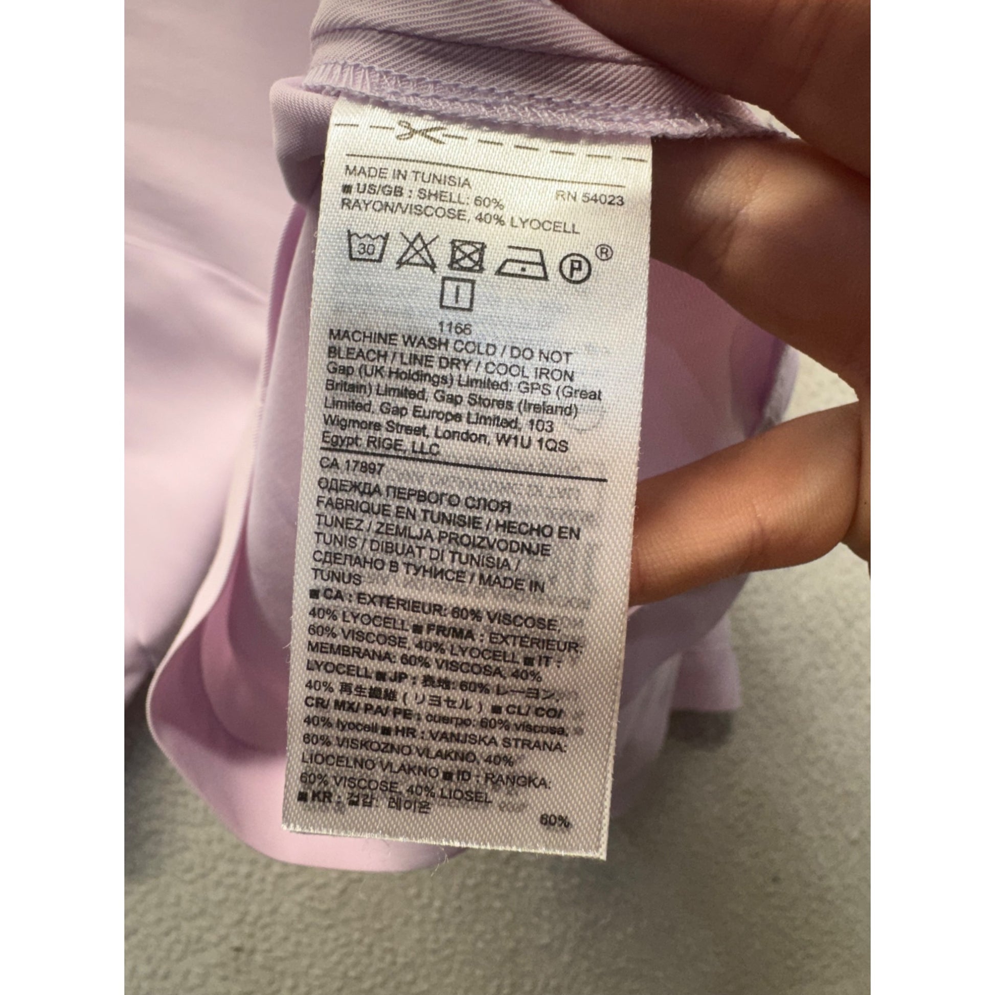 This Banana Republic blouse is made of a lightweight viscose and lyocell blend, offering a smooth texture and professional design. Lavender hue and 3/4 sleeves are ideal for business or casual settings.