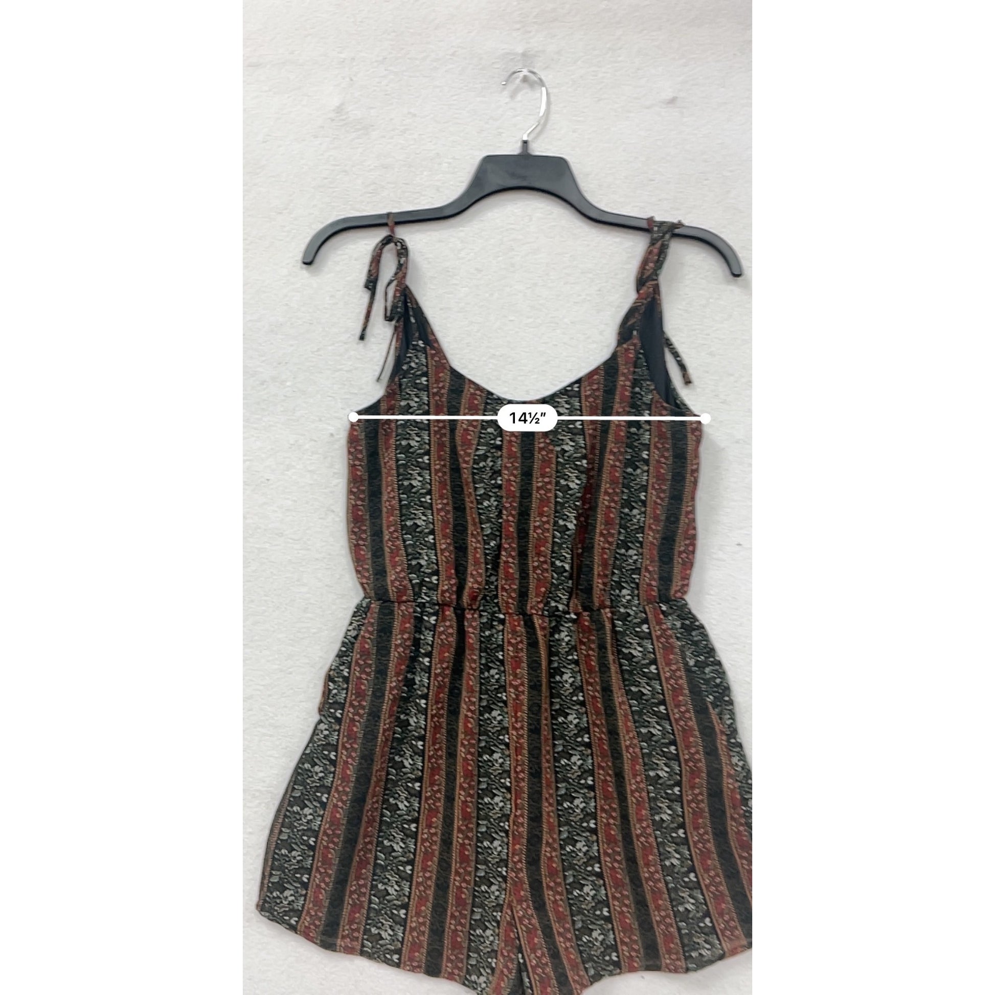 This BCBGeneration romper features a stylish mix of floral and striped prints, offering a chic and modern look. The adjustable tie-shoulder design ensures a tailored fit, while the lightweight fabric provides comfort and ease for warm weather. Designed for versatile wear, this piece is suitable for casual outings or stylish events.