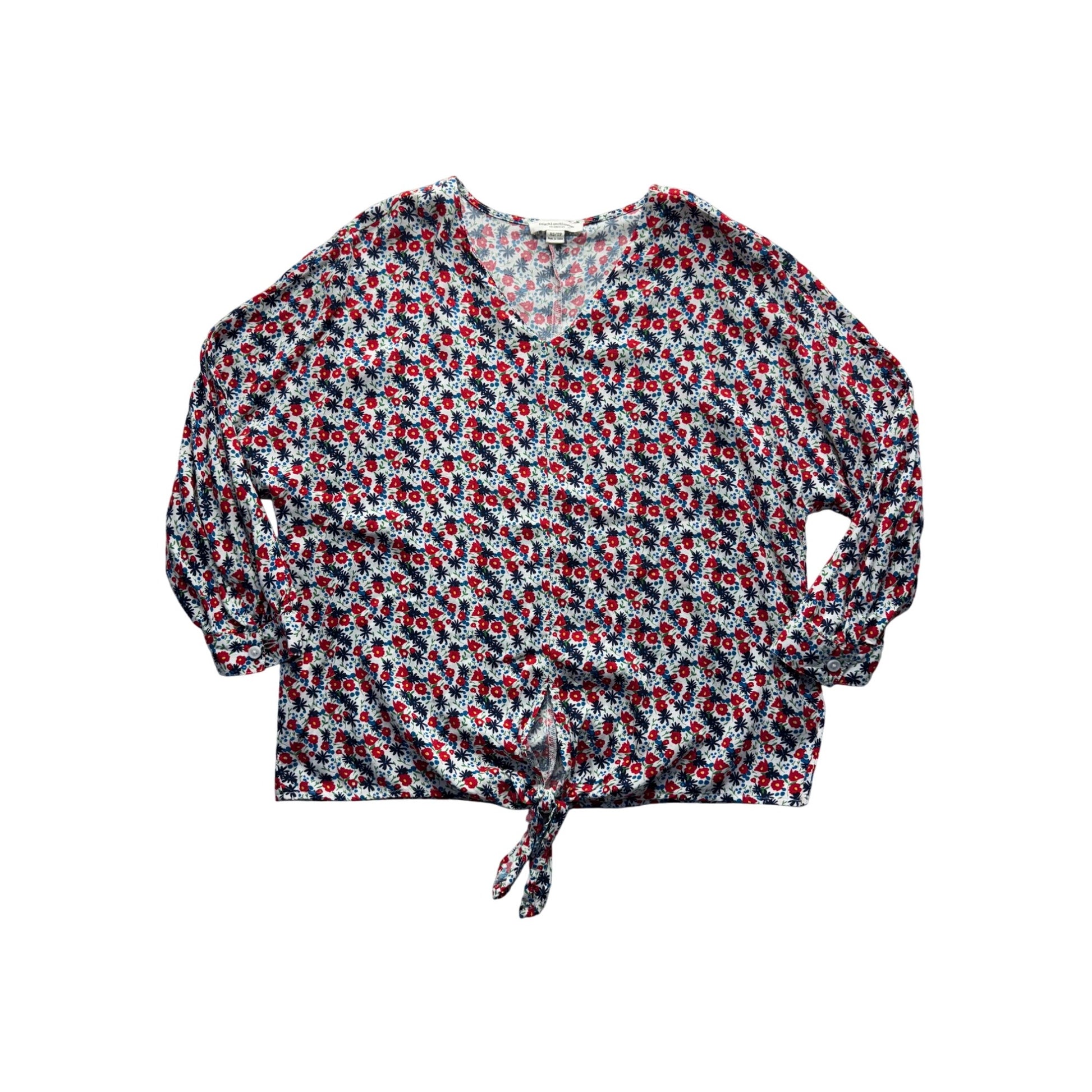 Beachlunchlounge Floral V-Neck Tie-Front Blouse XS 242B