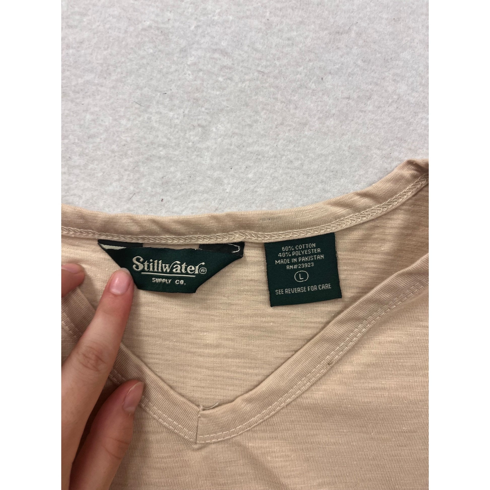 Beige V-Neck Short-Sleeve T-Shirt By Stillwater Supply Co. L #8715
