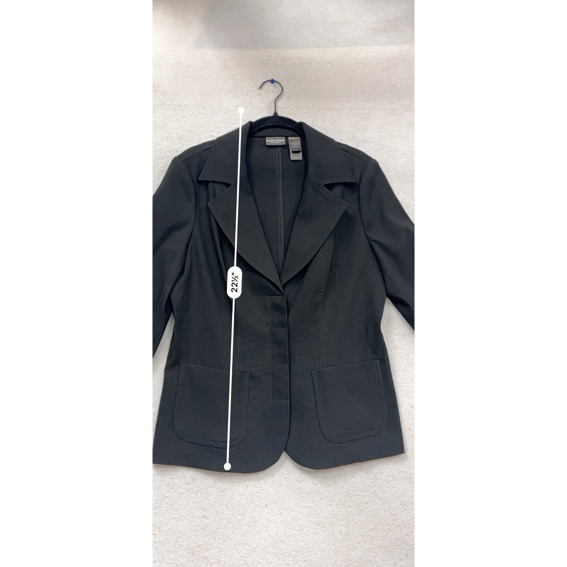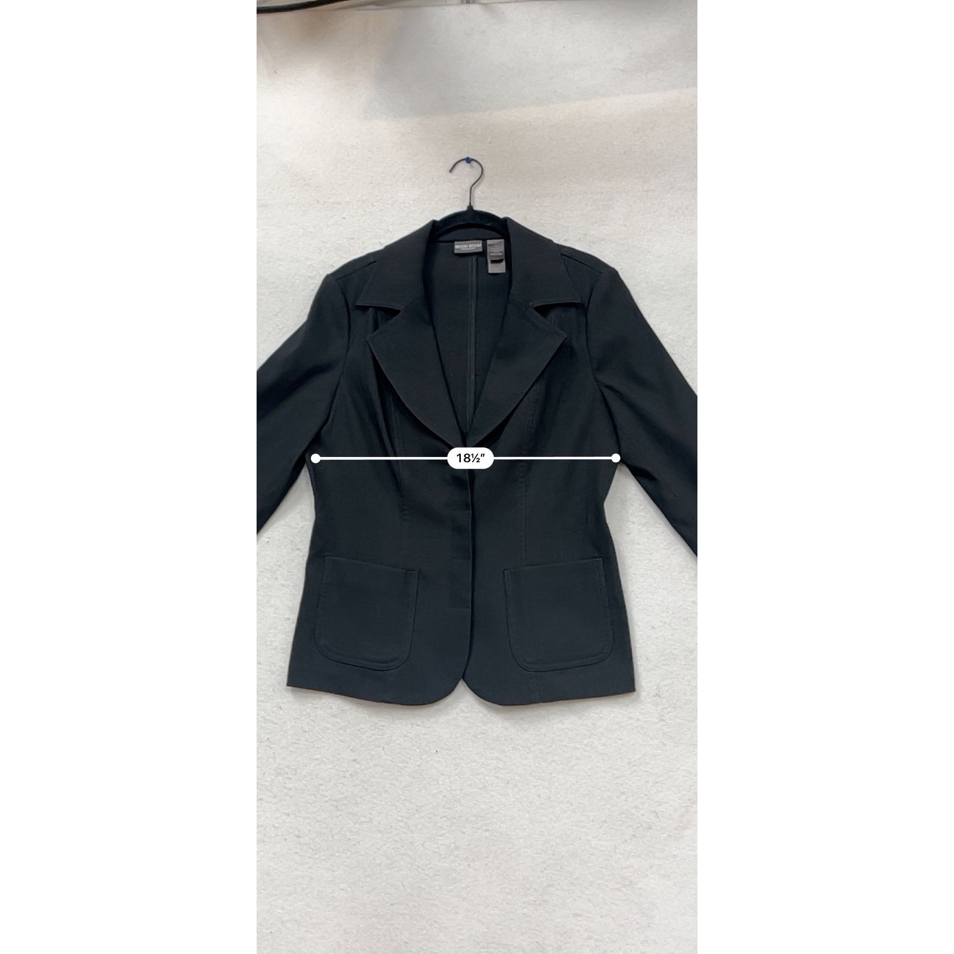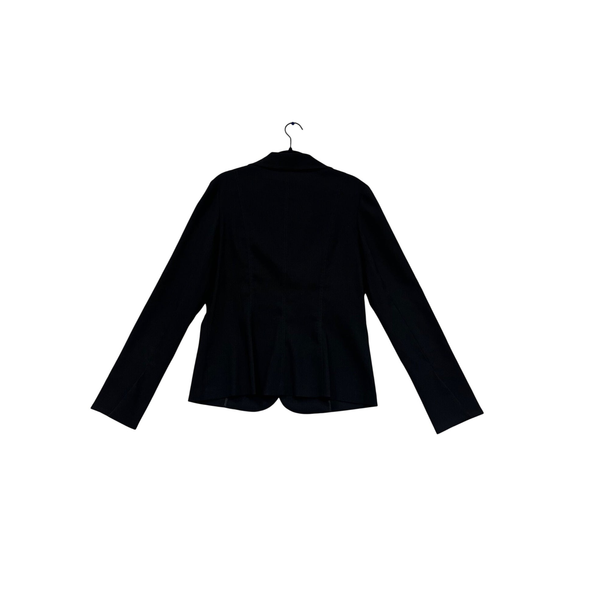Crafted for a polished look, this black blazer by Bisou Bisou features a tailored fit and dual front pockets. Ideal for office or formal settings.