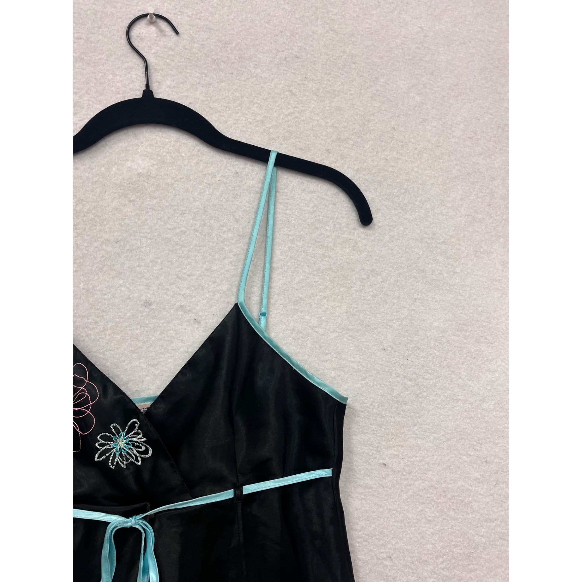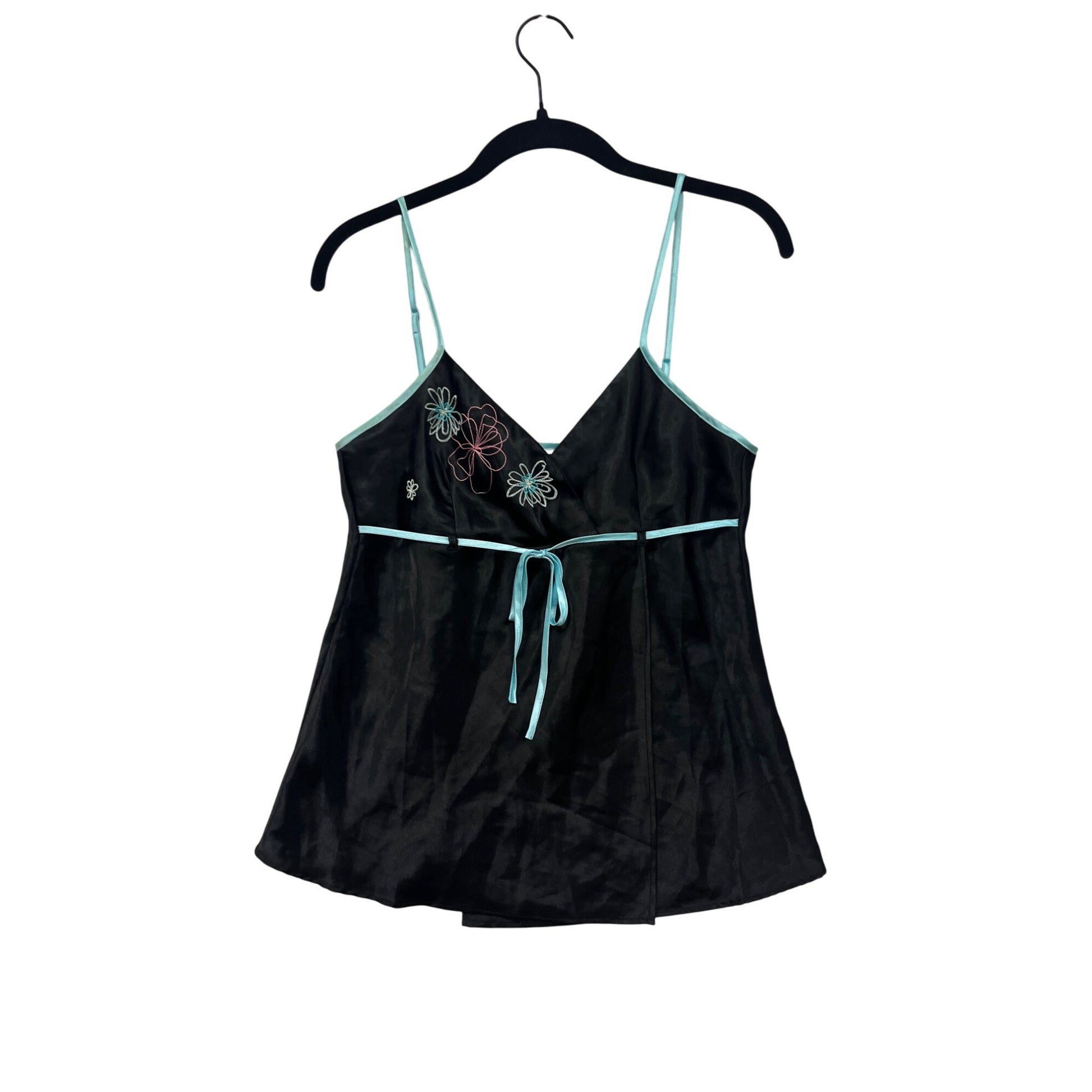 This chic camisole combines a relaxed fit with vibrant floral embroidery and a tie waist detail, offering a stylish yet comfortable wardrobe staple.