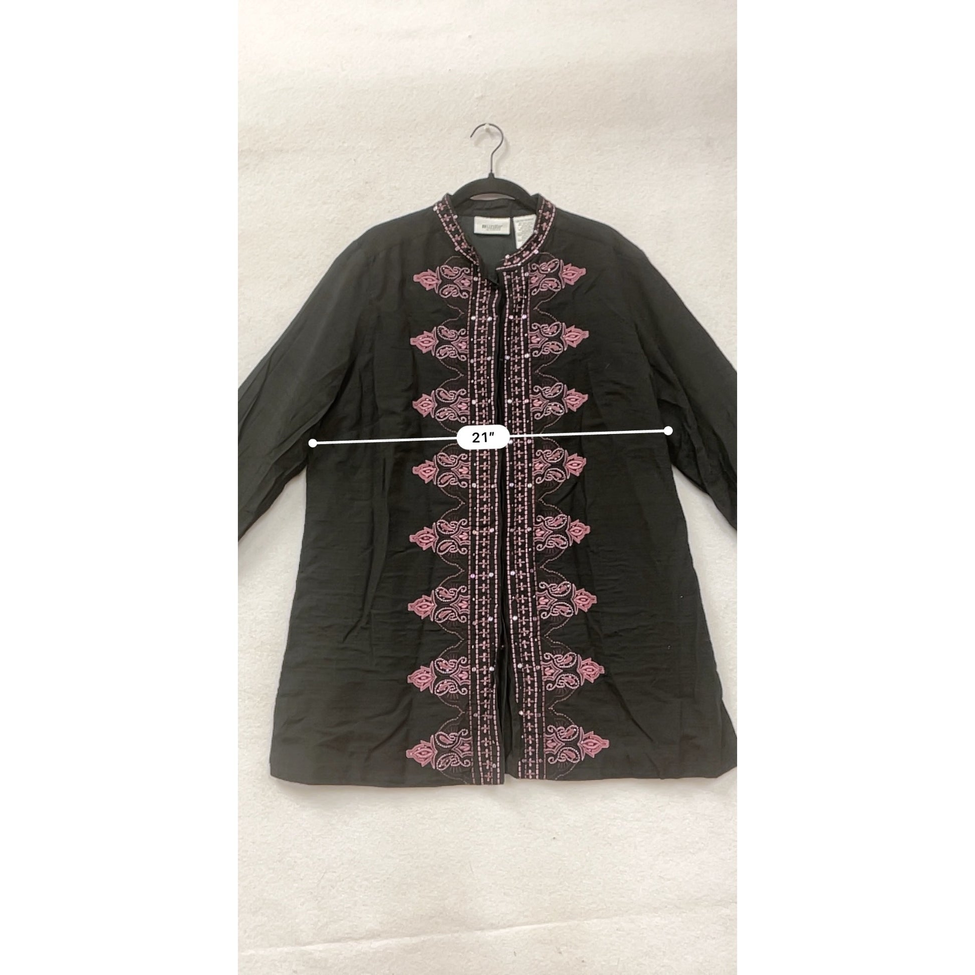 Black Embroidered Long-Sleeve Tunic Top With Pink Detailing Units 1X #8679