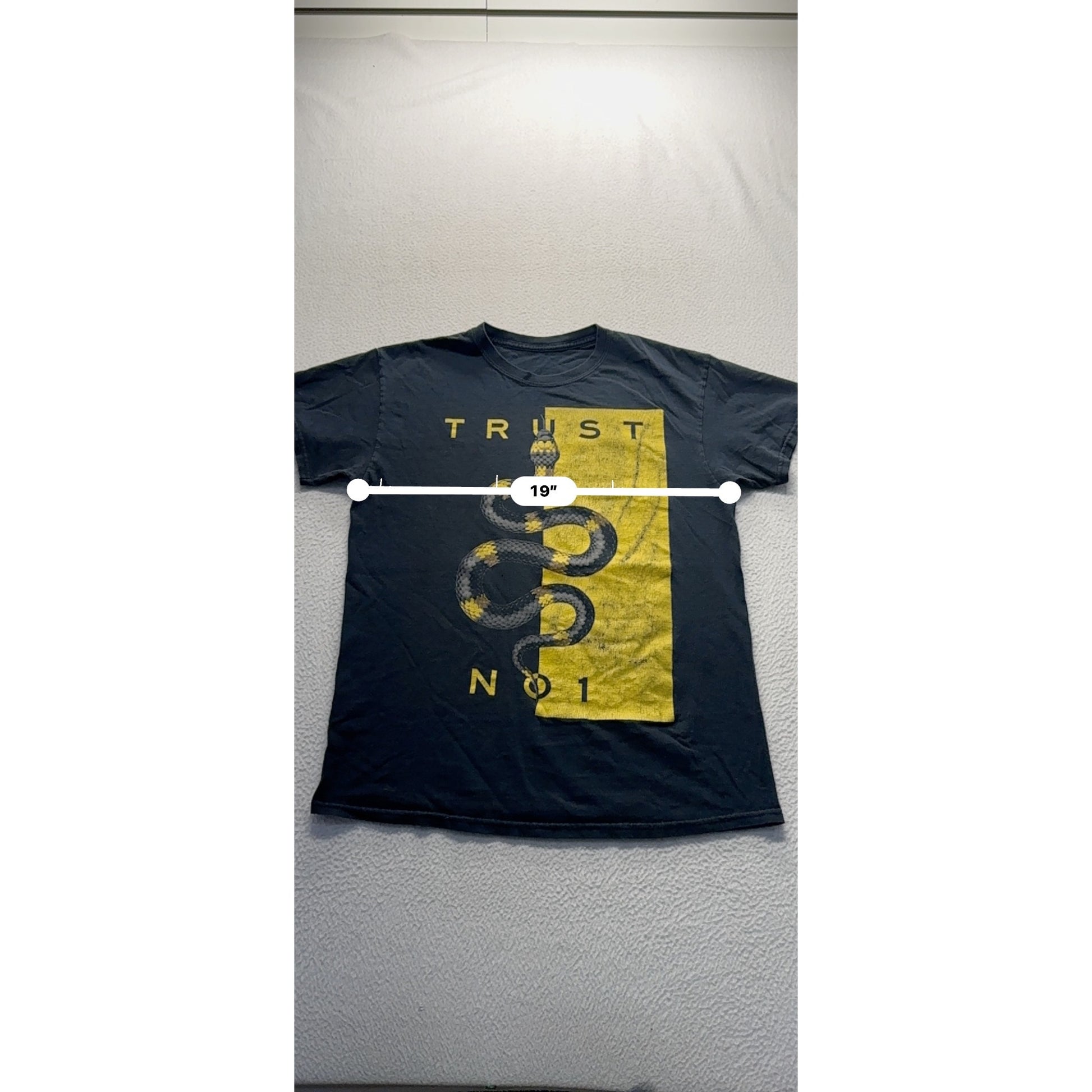 This black graphic t-shirt features a striking snake design with a bold "Trust No1" print. Made from soft material, it offers casual comfort.