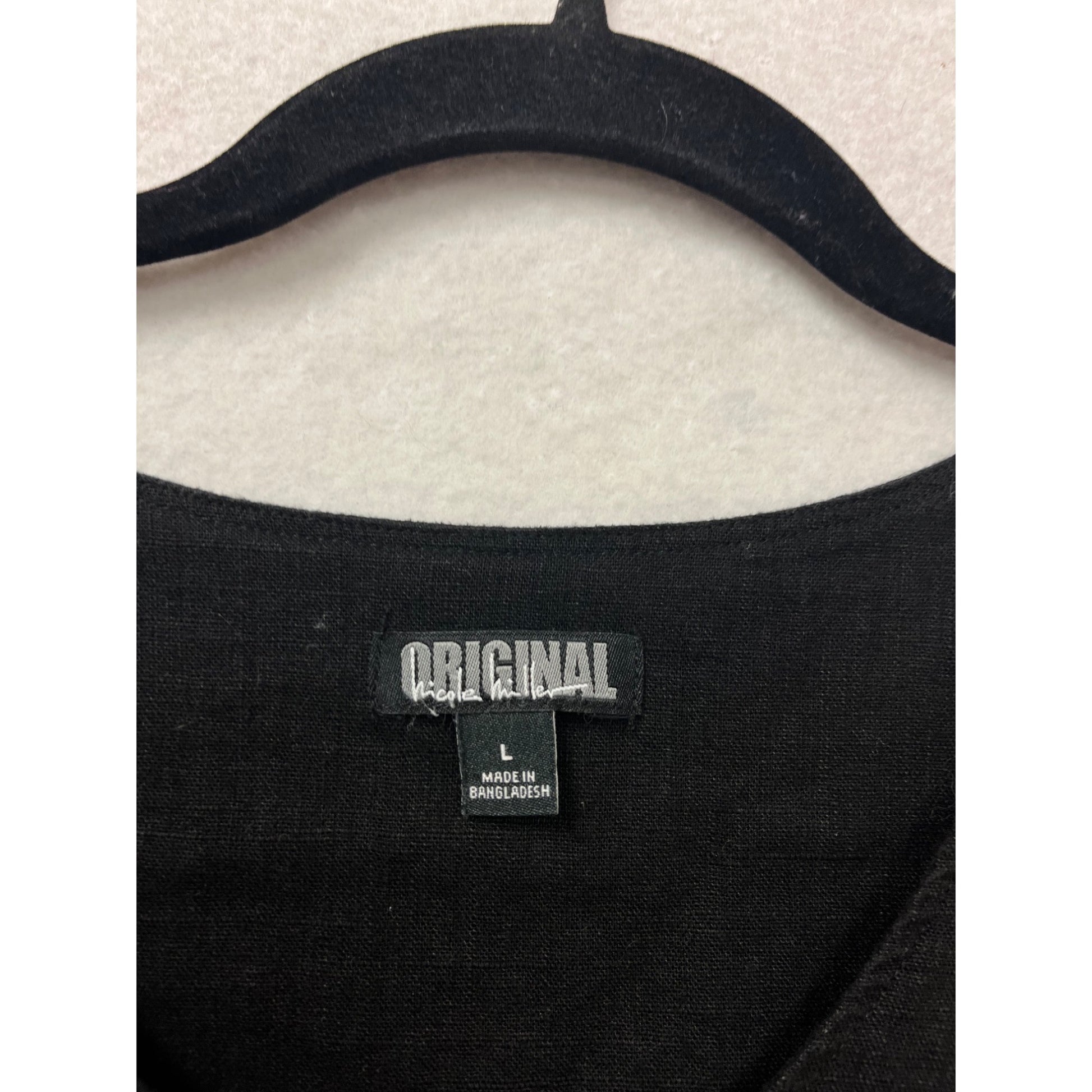 This dress offers a classic silhouette with its short sleeves and elegant black color. The linen and viscose blend ensures breathability and comfort. Suitable for professional settings, this dress provides a versatile option for office wear.