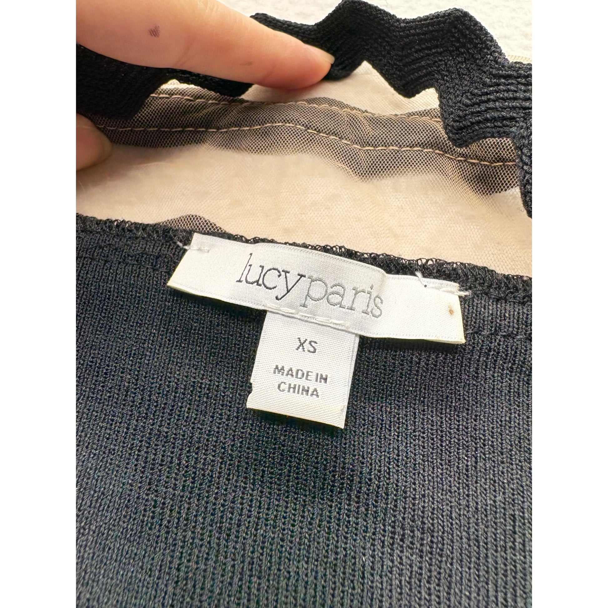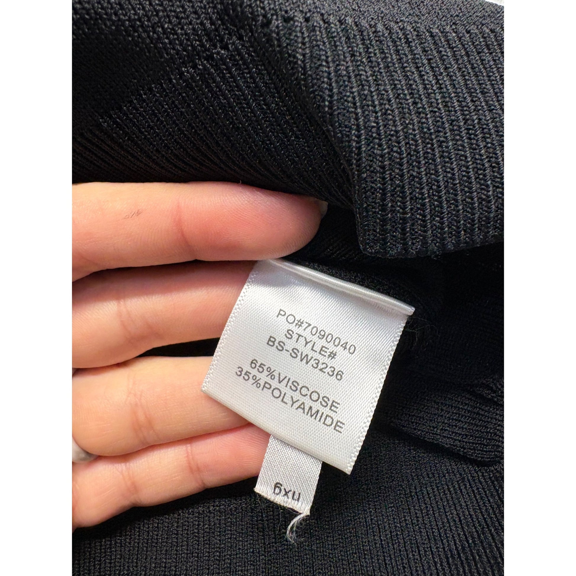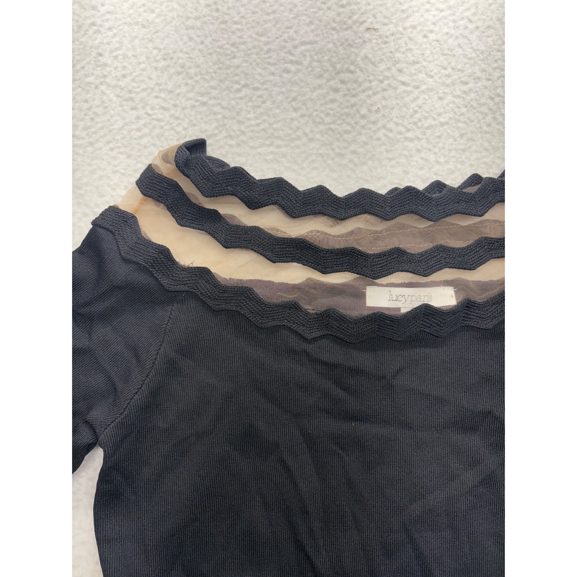 Black Off-Shoulder Bell Sleeve Top W/ Sheer Trim #7418