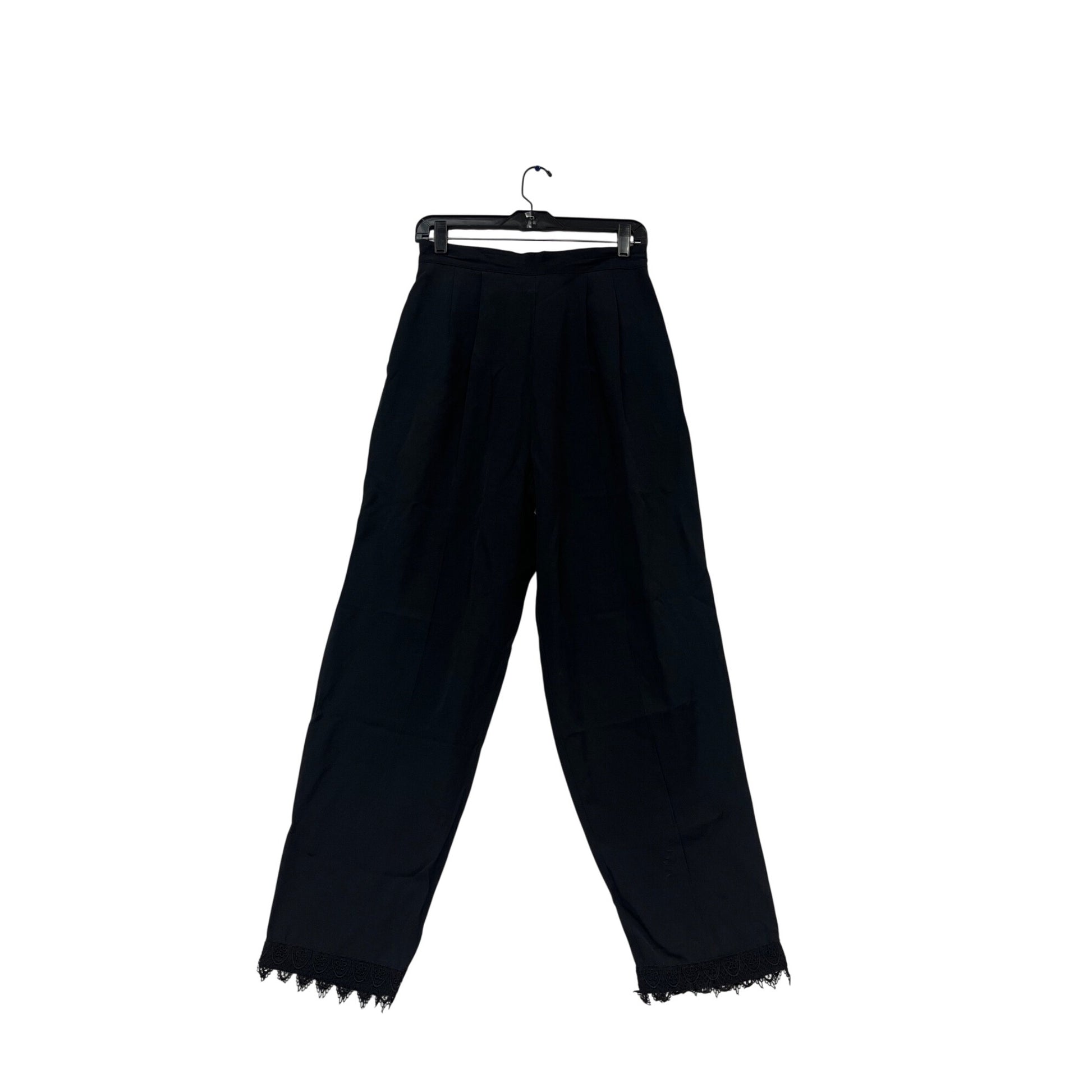 Black Pleated Pants With Lace Hem Size 12 By Rumours #130C