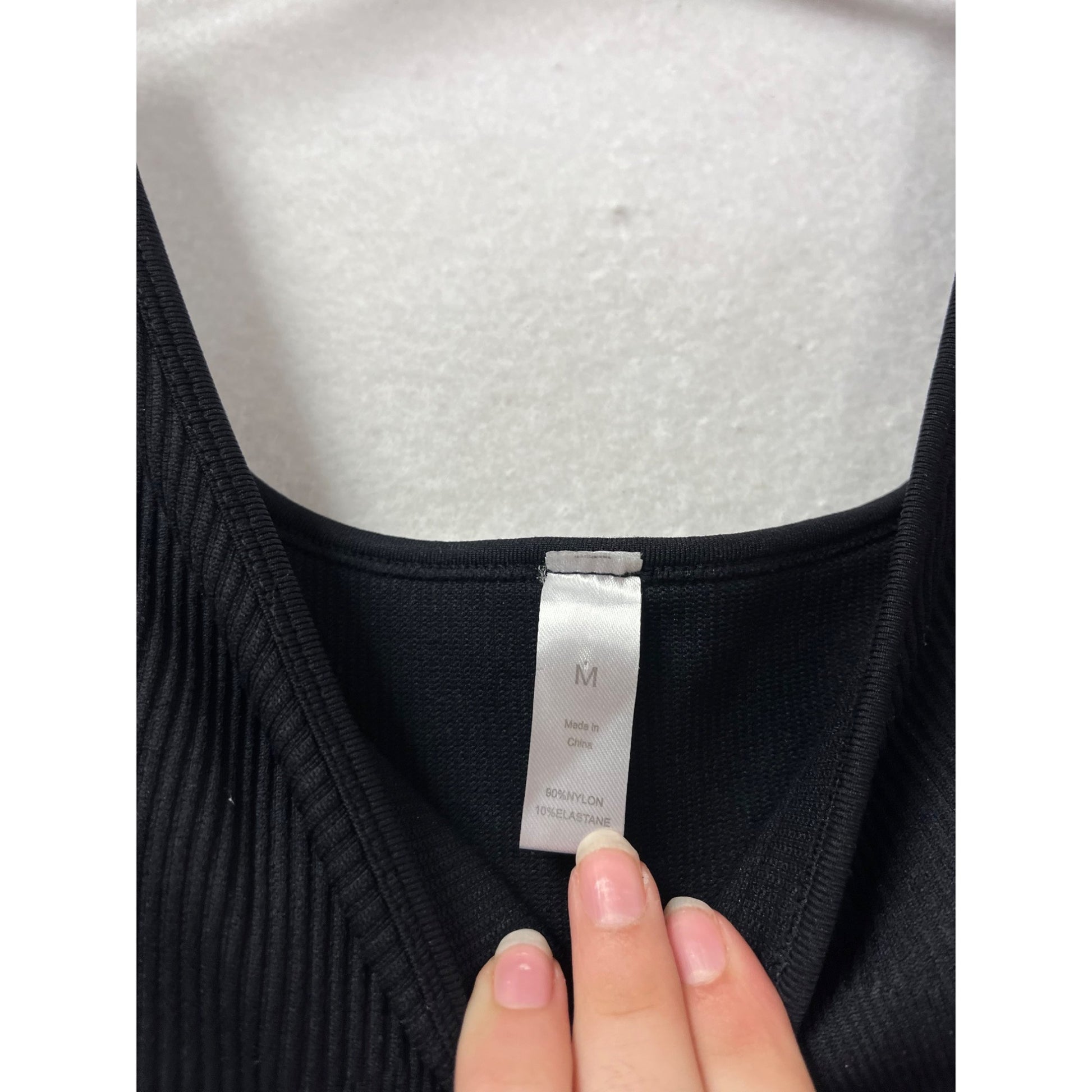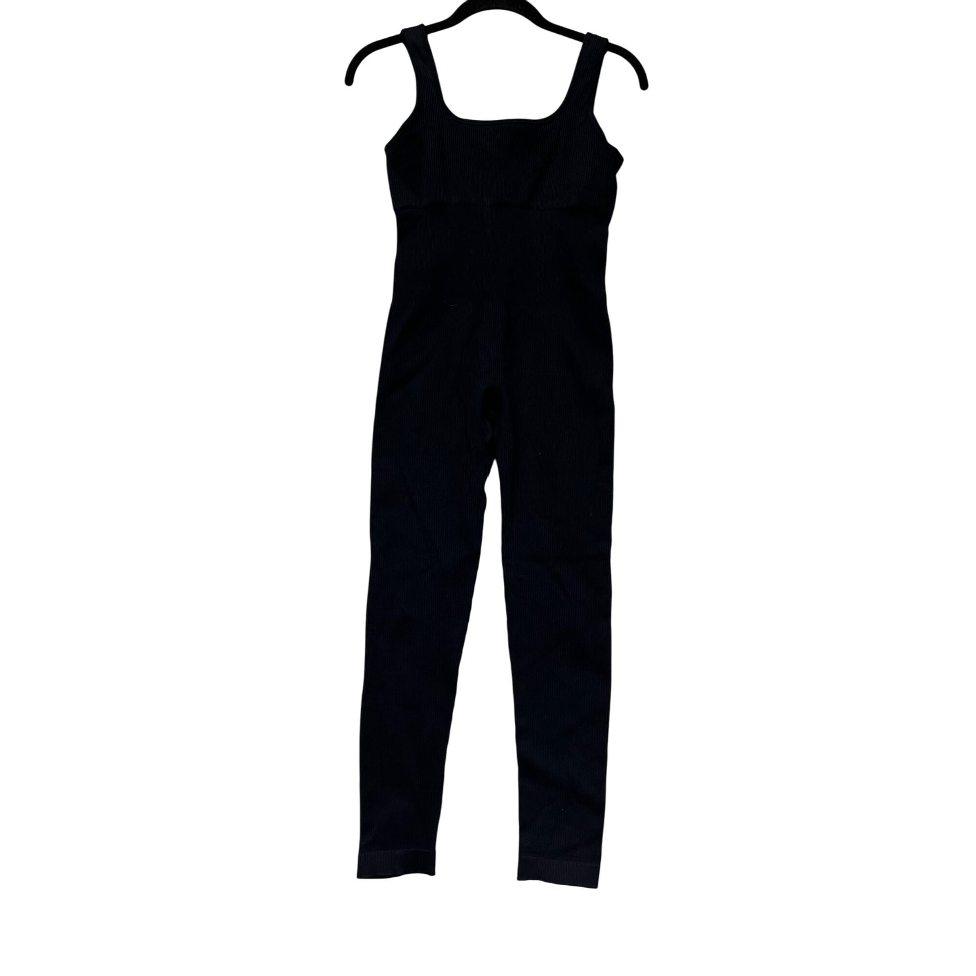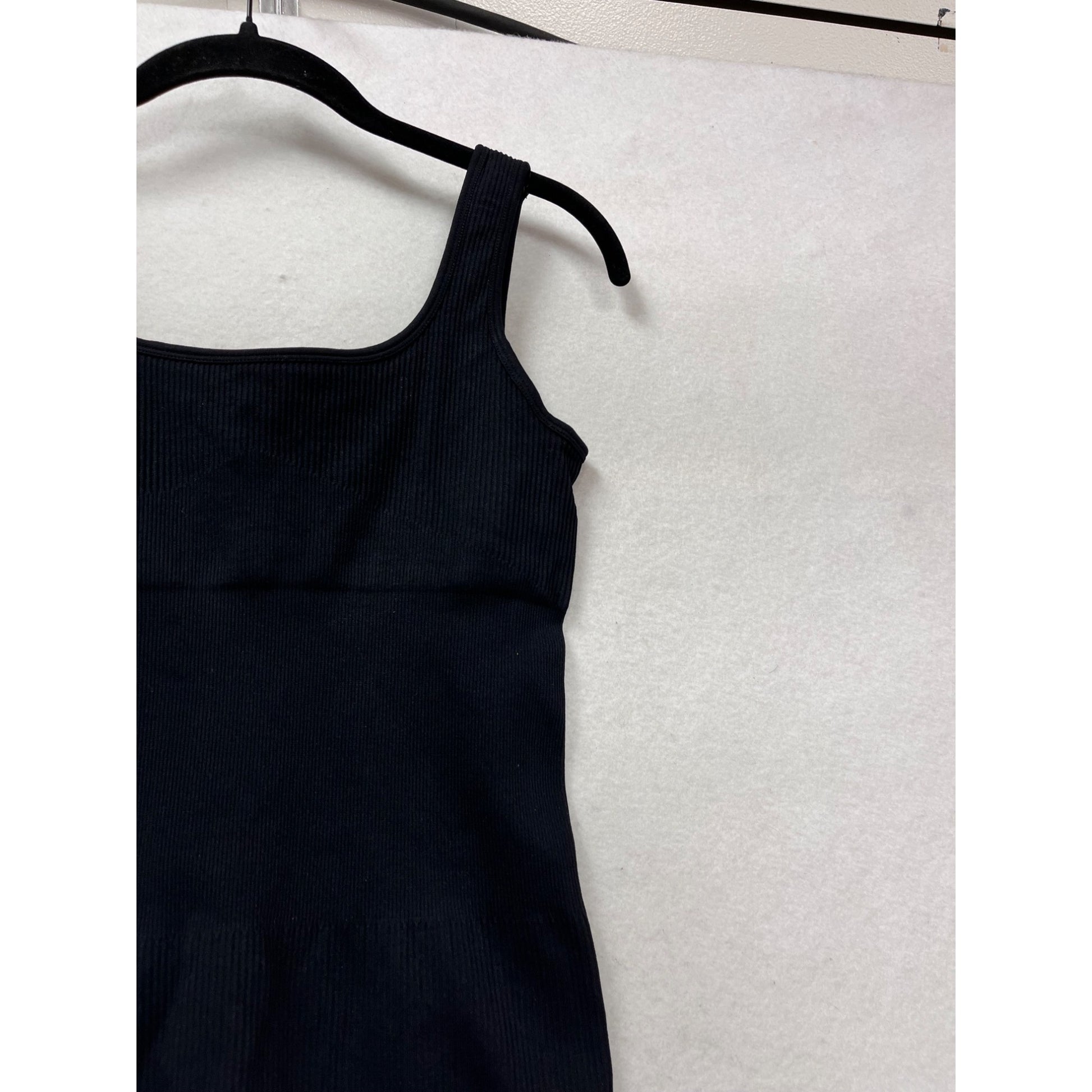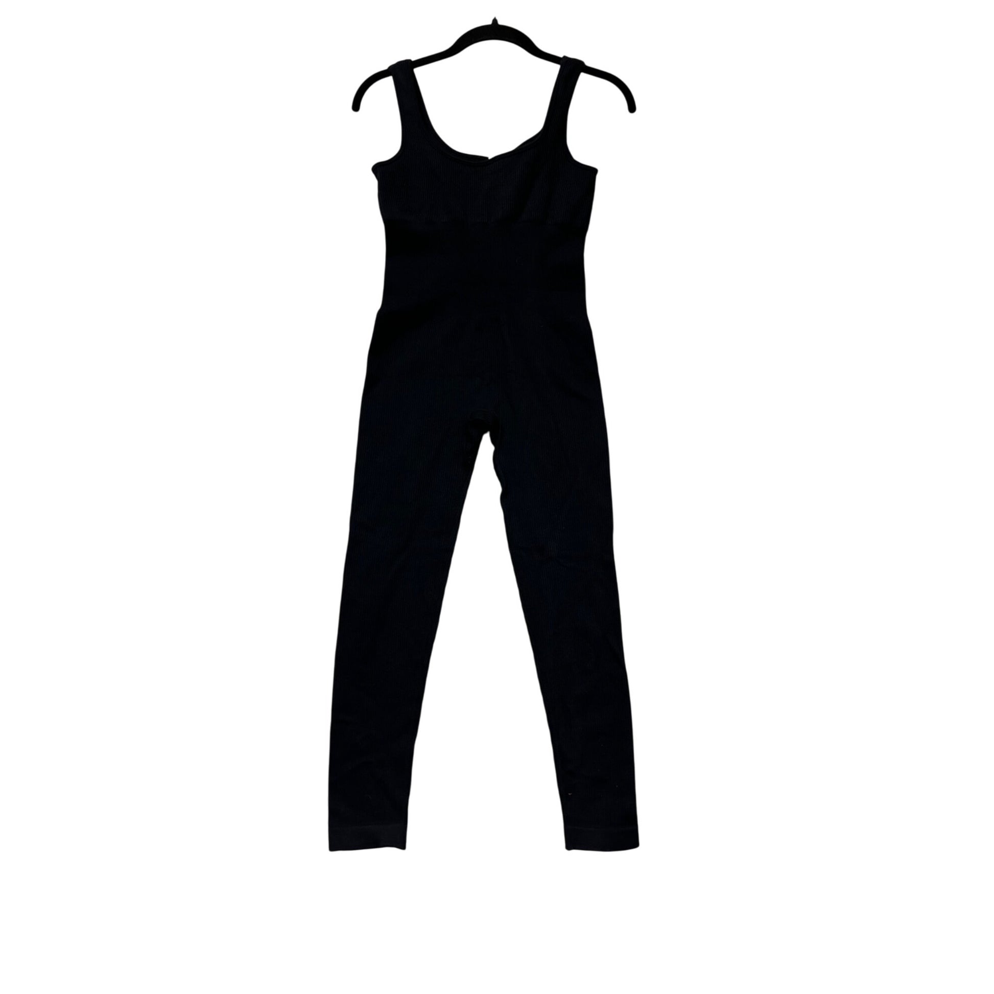 This black ribbed jumpsuit offers a sleek and form-fitting design, suitable for various professional settings. Its stretchy material ensures comfort and ease of movement throughout the day.