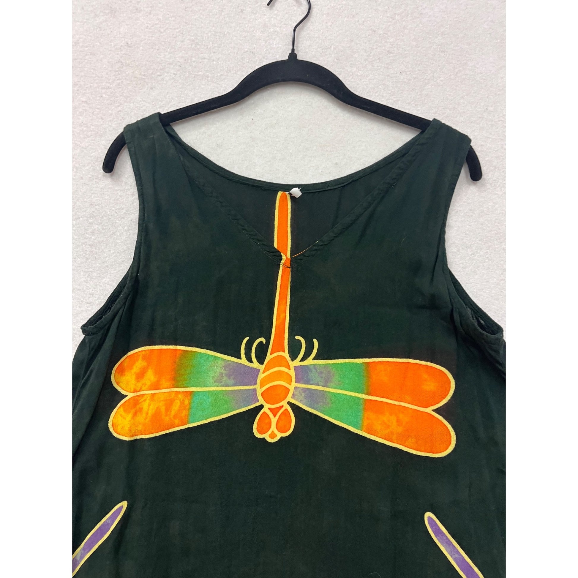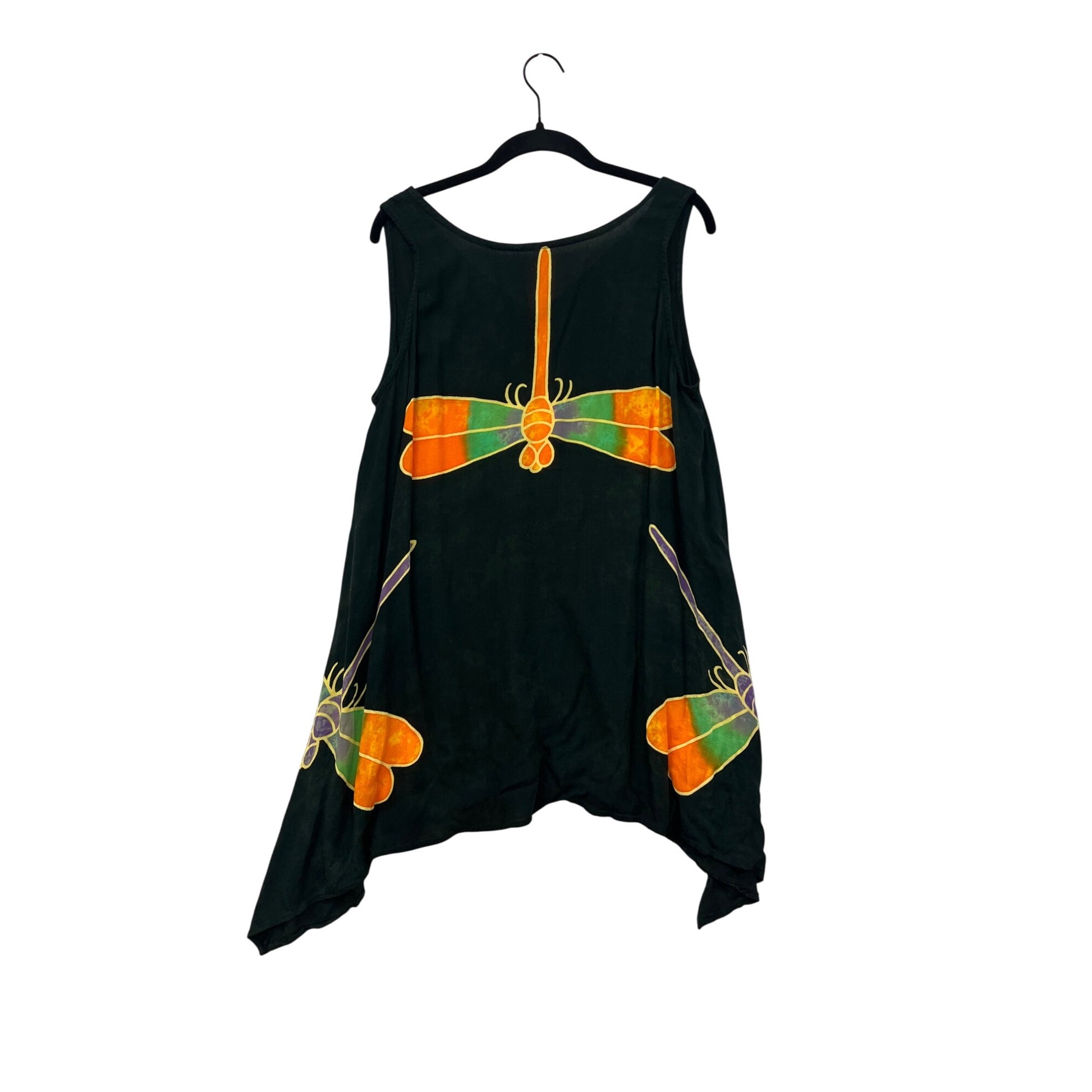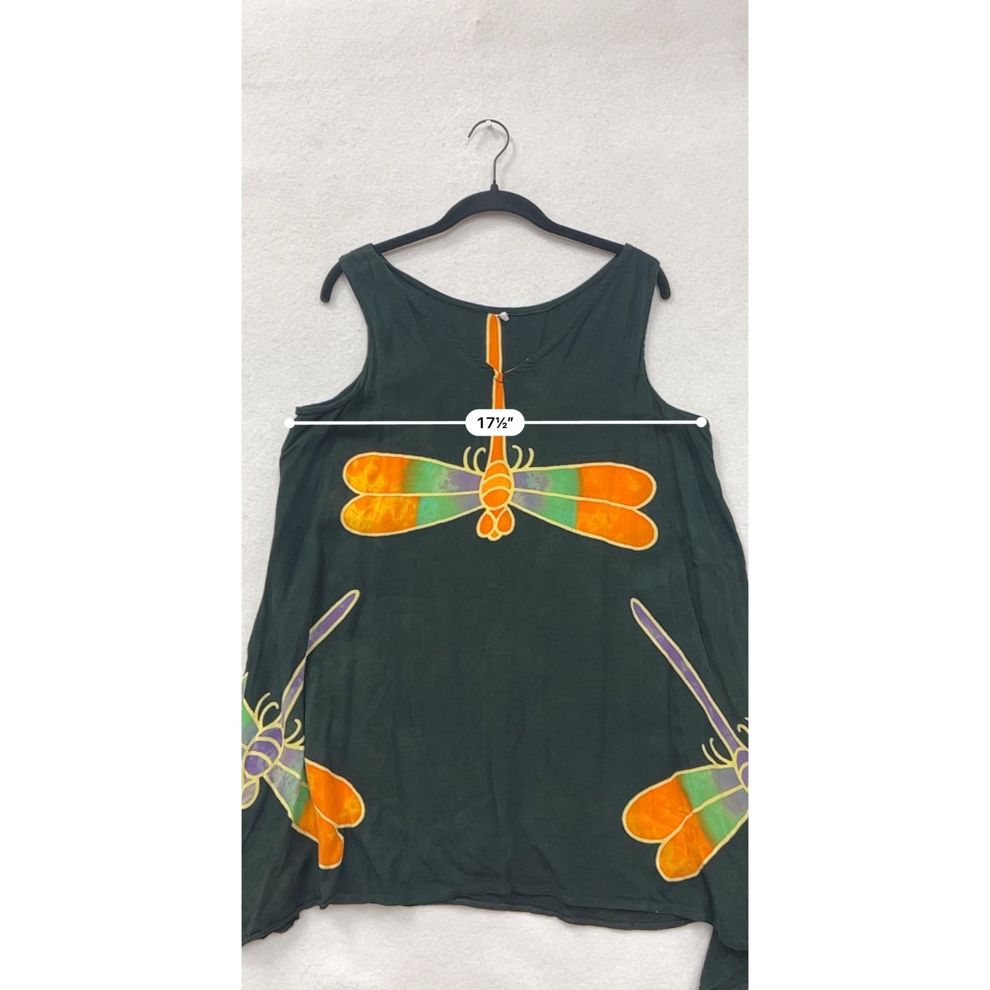 Black Sleeveless Tunic Top With Dragonfly Size 6 #8708