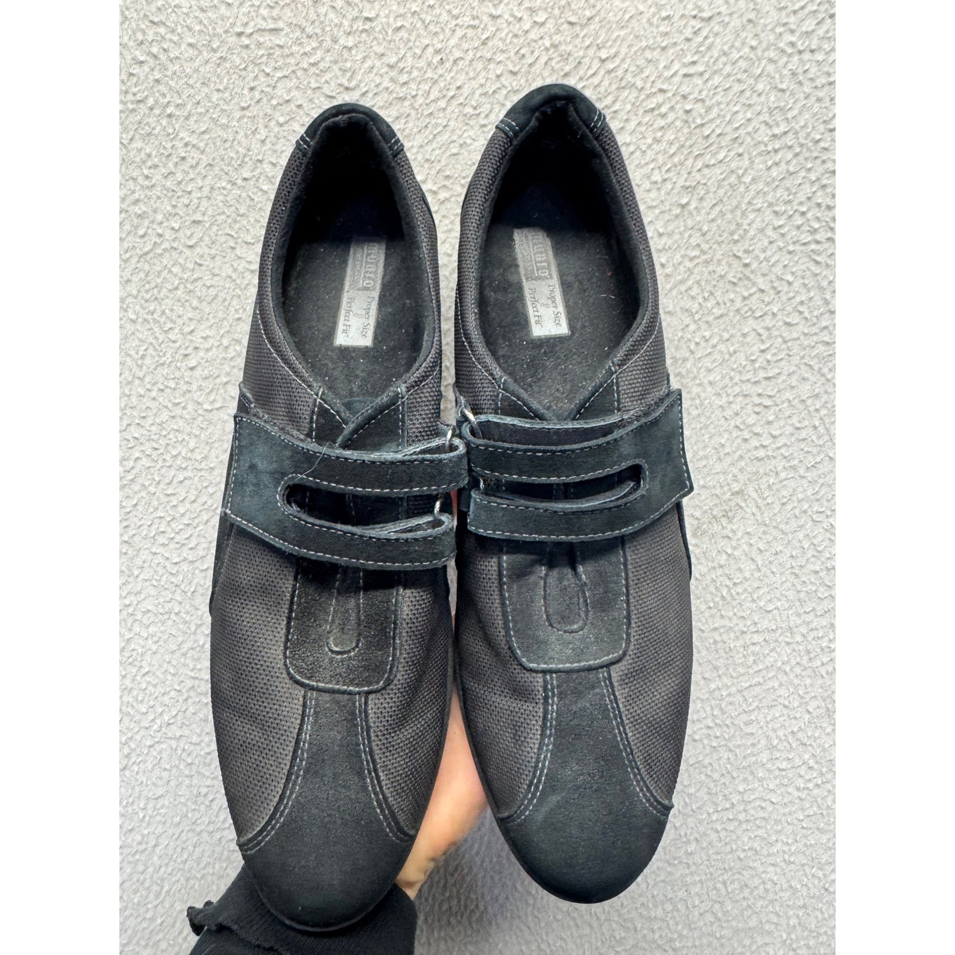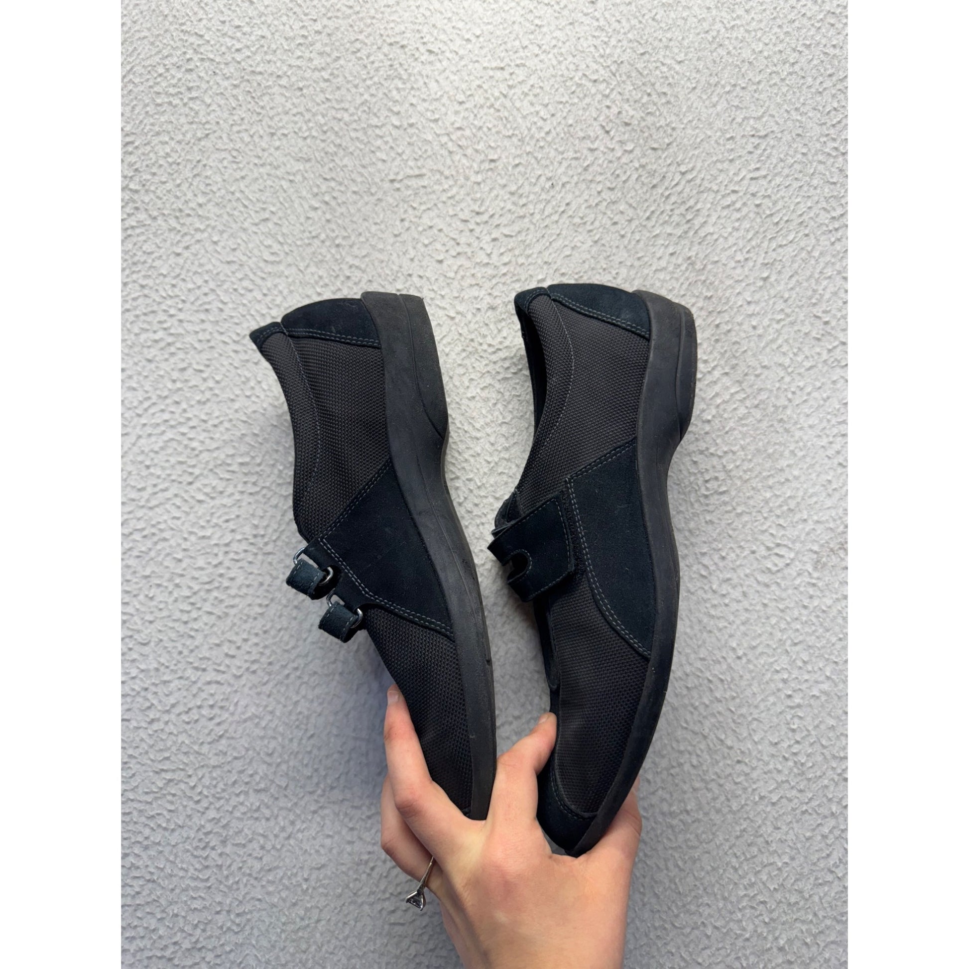 Black Velcro Strap Comfortable Walking Shoes Mens Size 10 Mesh & Suede Upper 9438