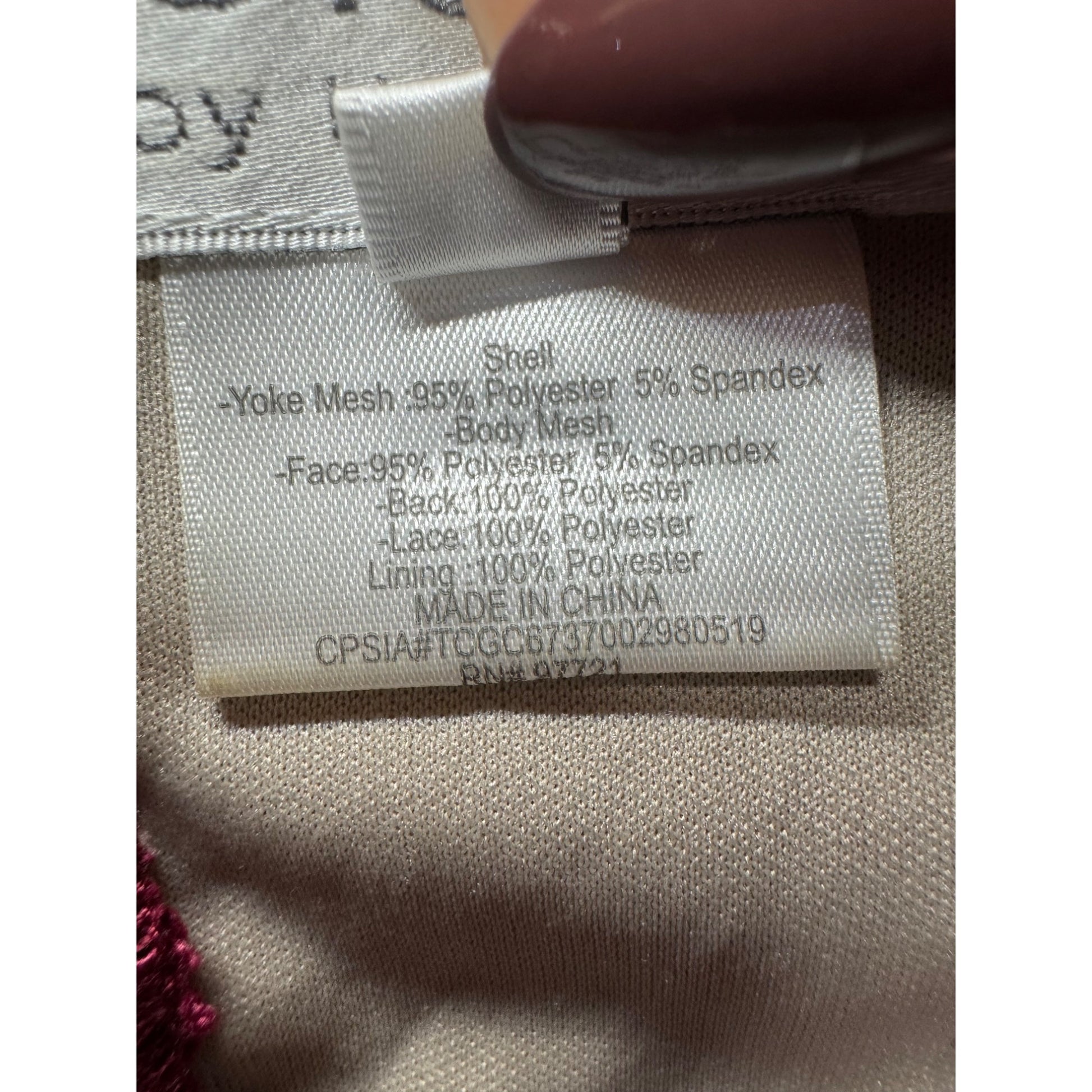 This dress offers a sophisticated look with its beautiful lace overlay and mesh design. It's crafted for comfort and style, suitable for various occasions. The rich red hue adds an elegant touch, while the polyester and spandex materials ensure a flexible fit.