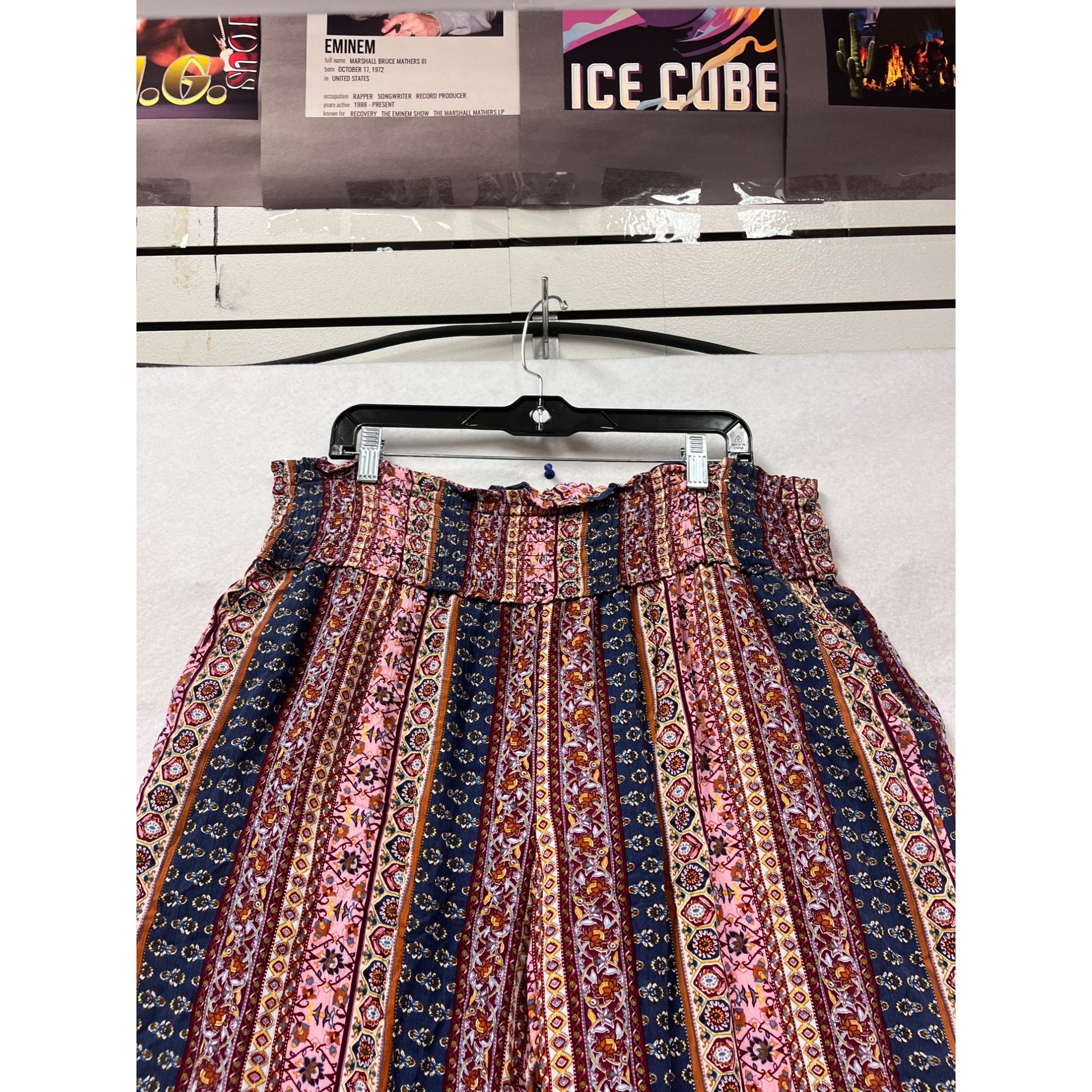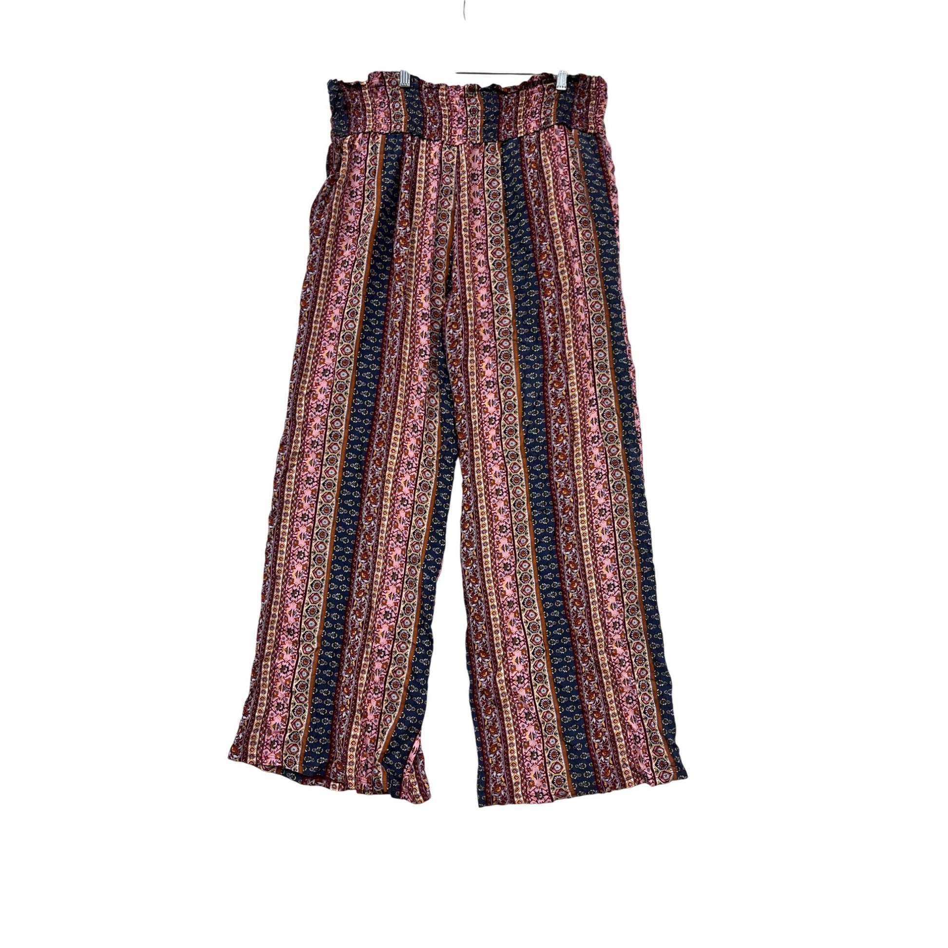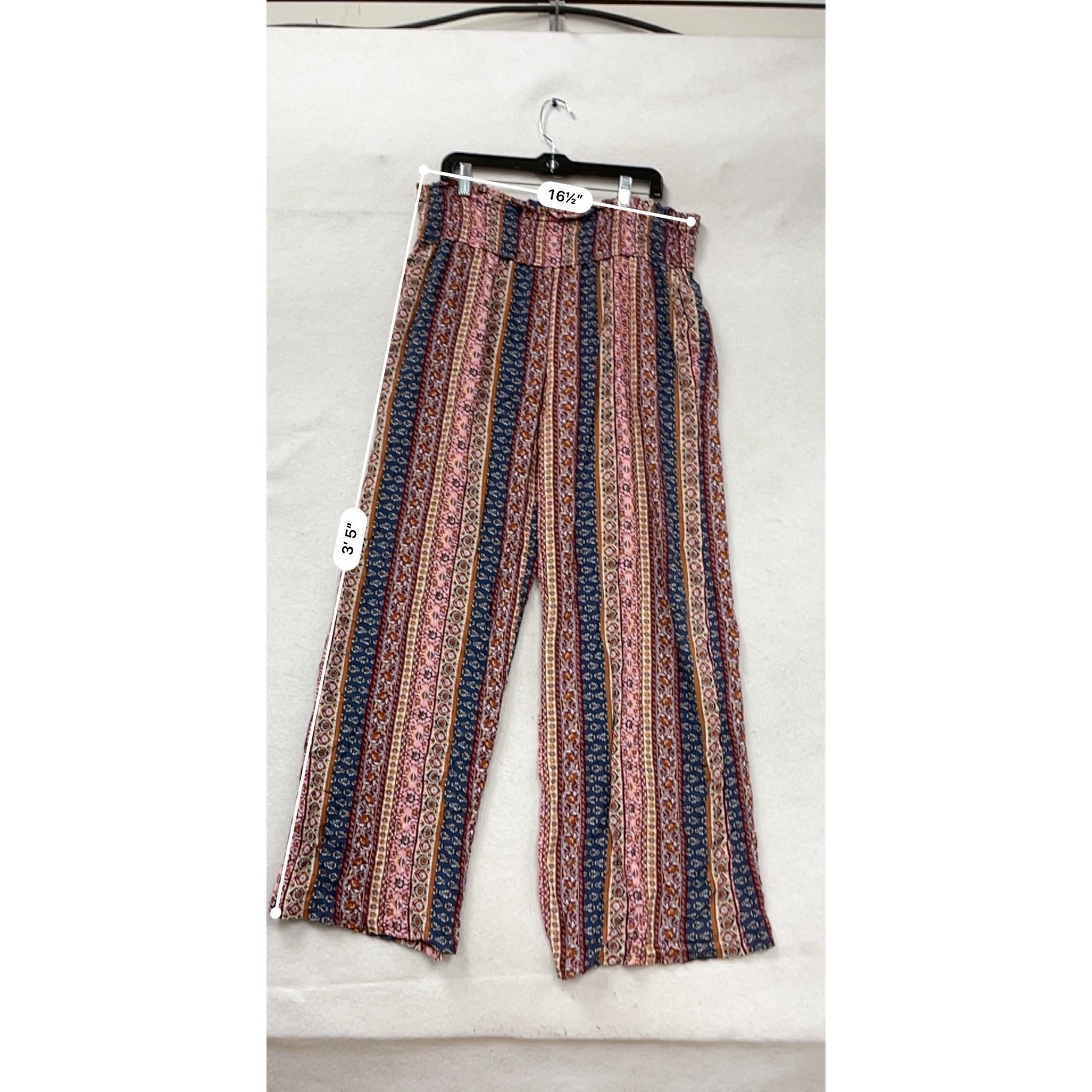 These bohemian-inspired pants offer a comfortable fit with their wide-leg design and elastic waistband. The vibrant floral stripe pattern adds a touch of elegance, making them suitable for casual and relaxed occasions. Crafted from rayon and viscose, they provide breathability and a soft touch, ensuring all-day comfort.