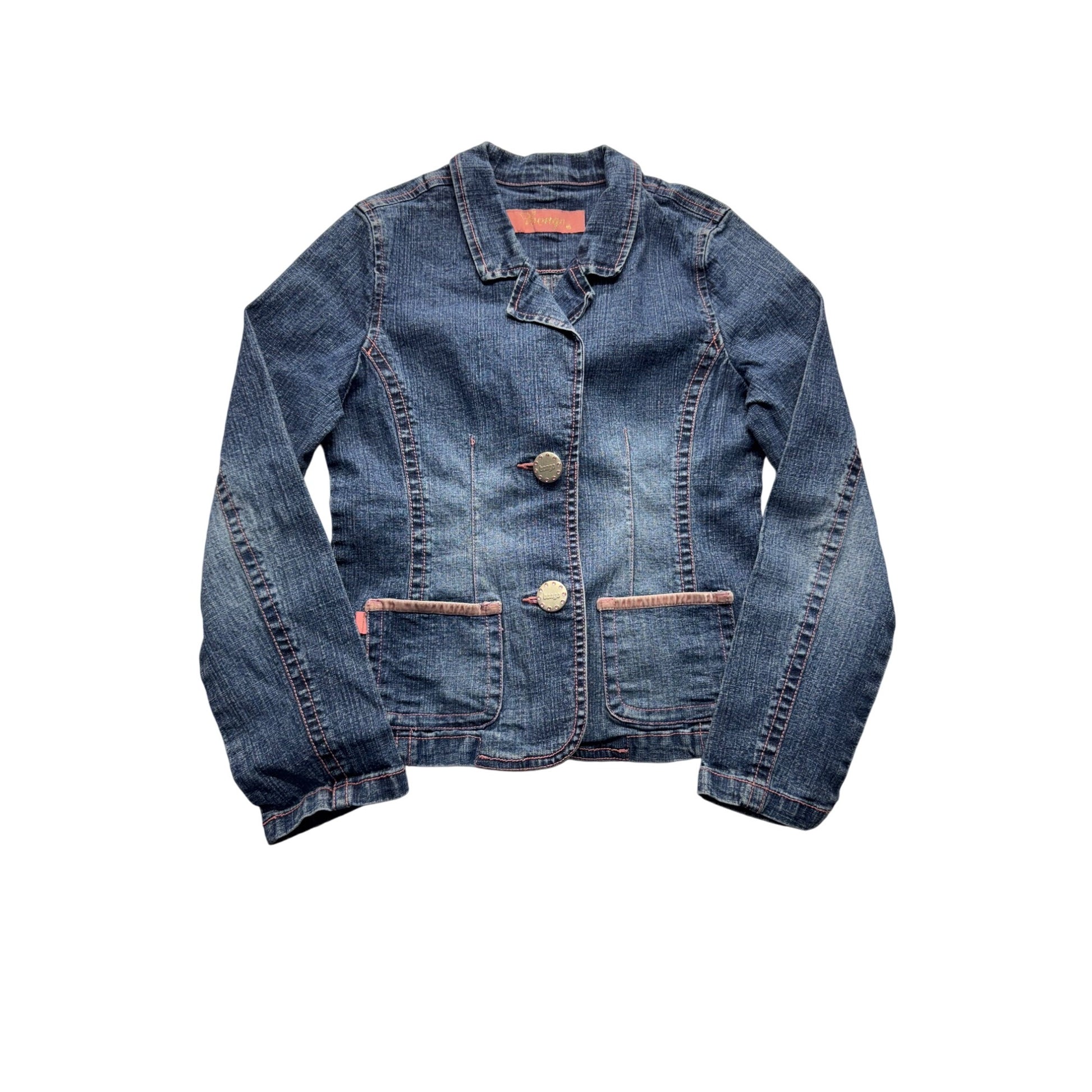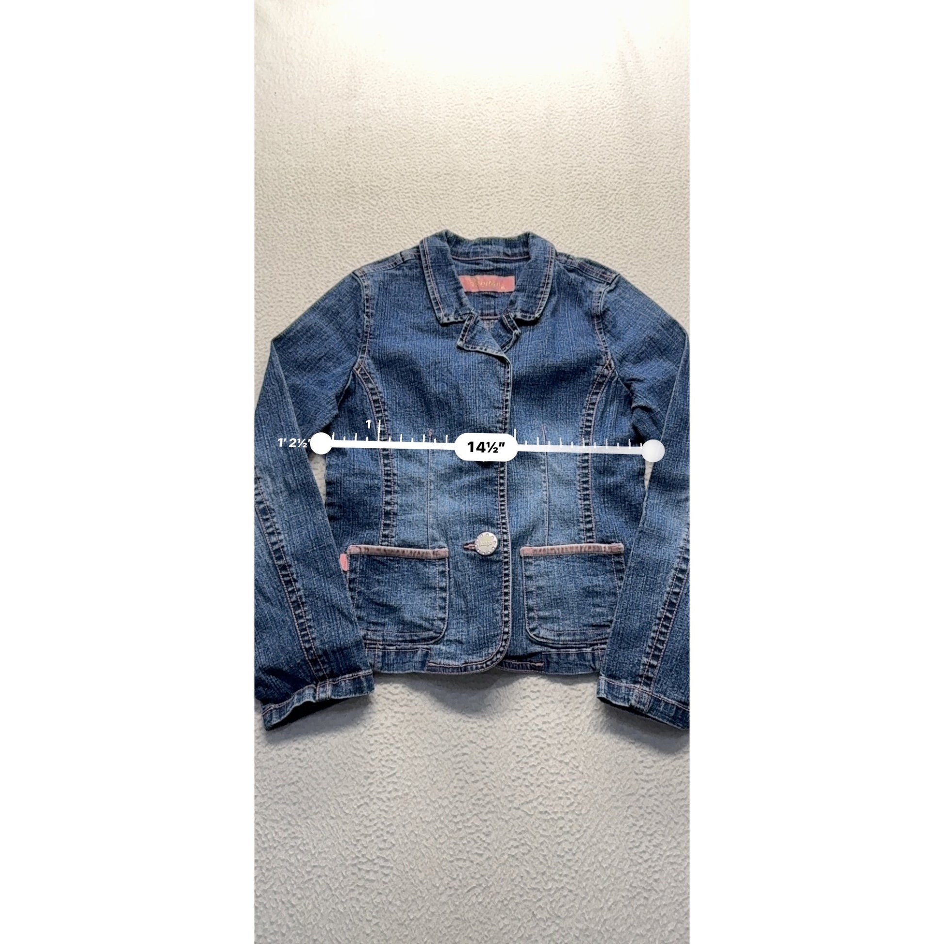 Bongo Girls Denim Blazer Jacket M Button Front Blue Long Sleeve #9027