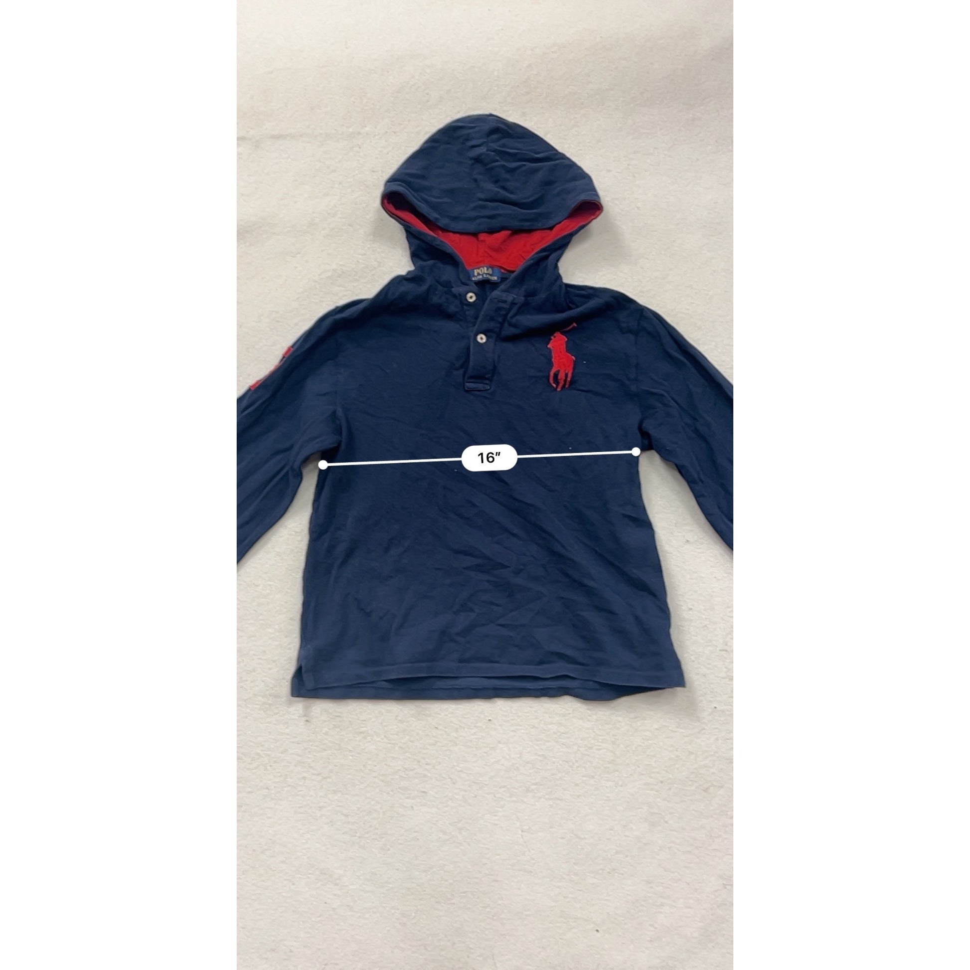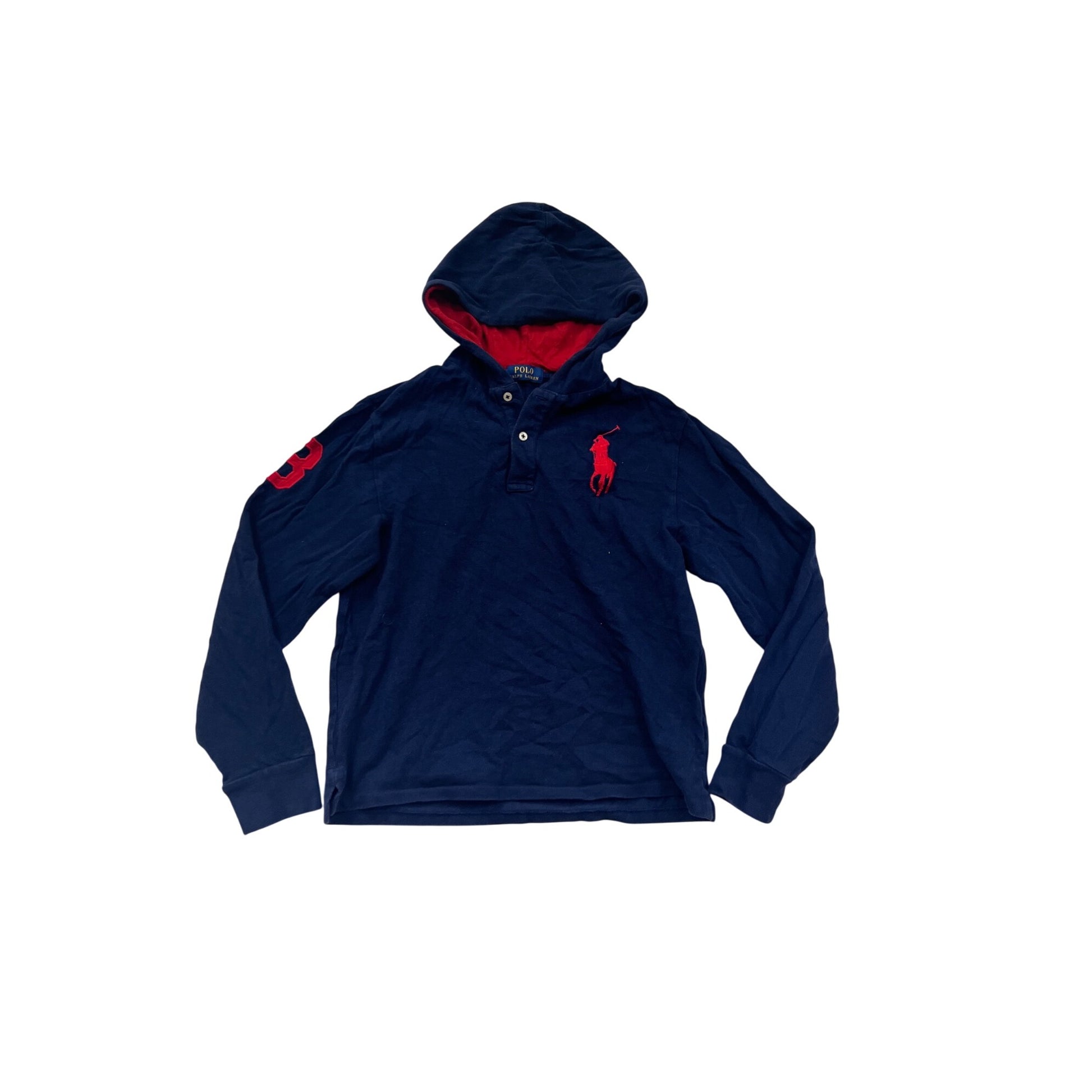 Boys Large Polo Ralph Lauren Navy Hoodie With Red Accents & Embroidered Logo #8879