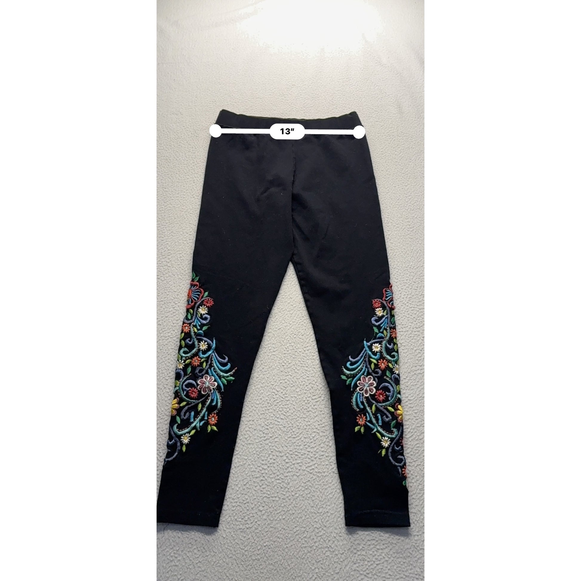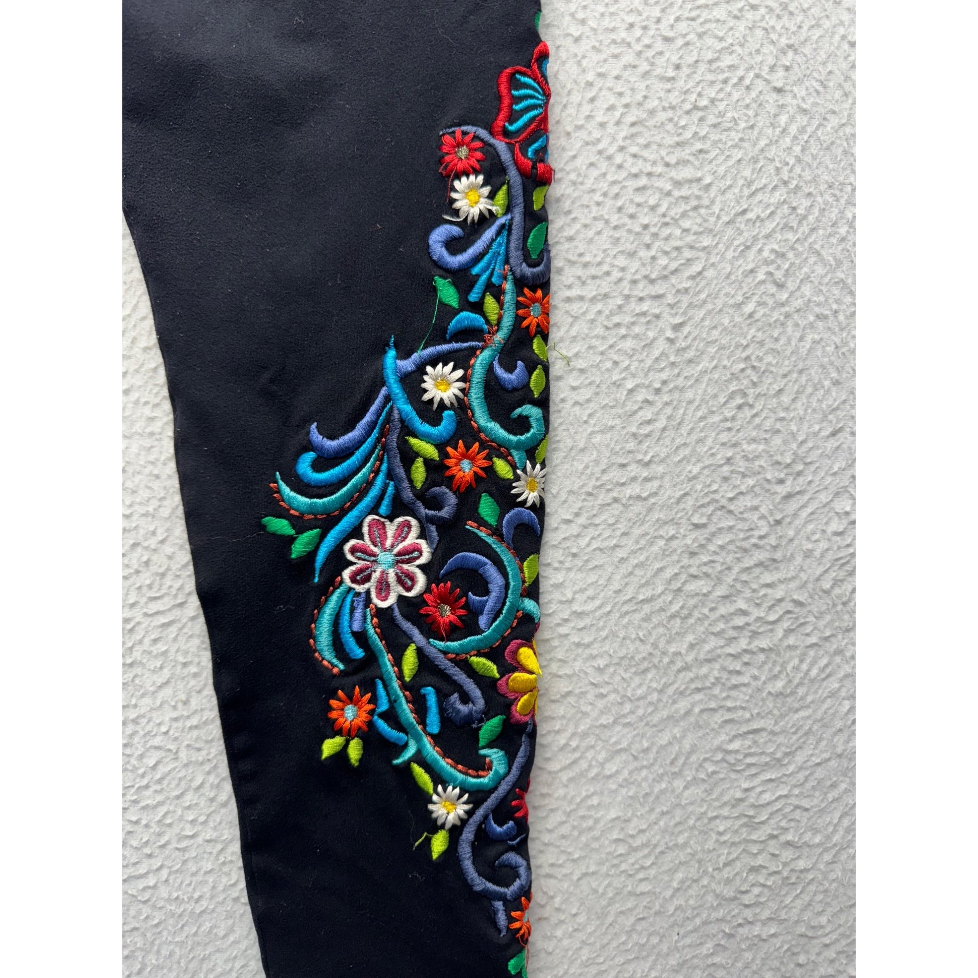 Brazilrox Black Embroidered Floral Leggings Size Z #9082