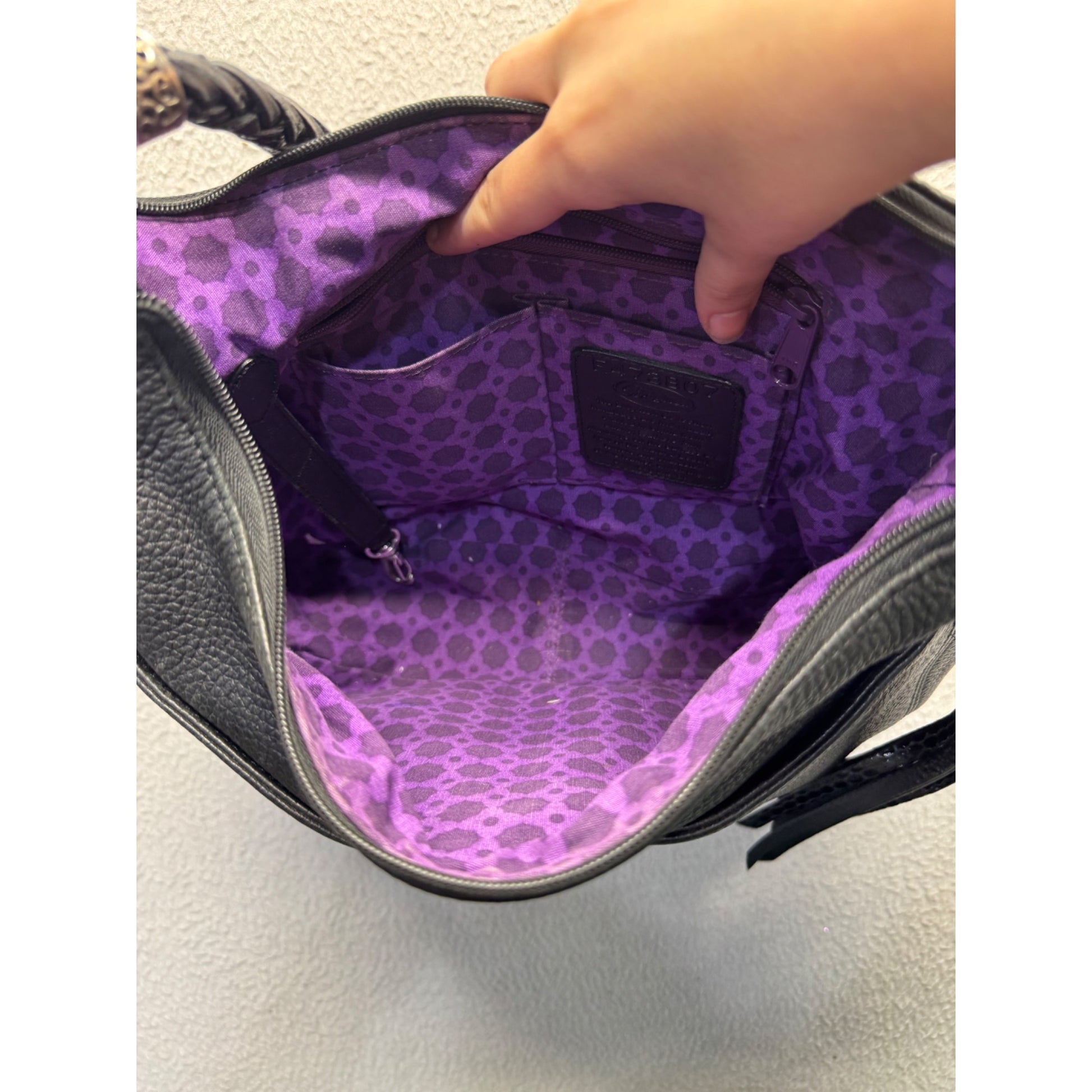 Brighton Black Pebbled Leather Shoulder Bag With Braided Strap Heart Charm #9516