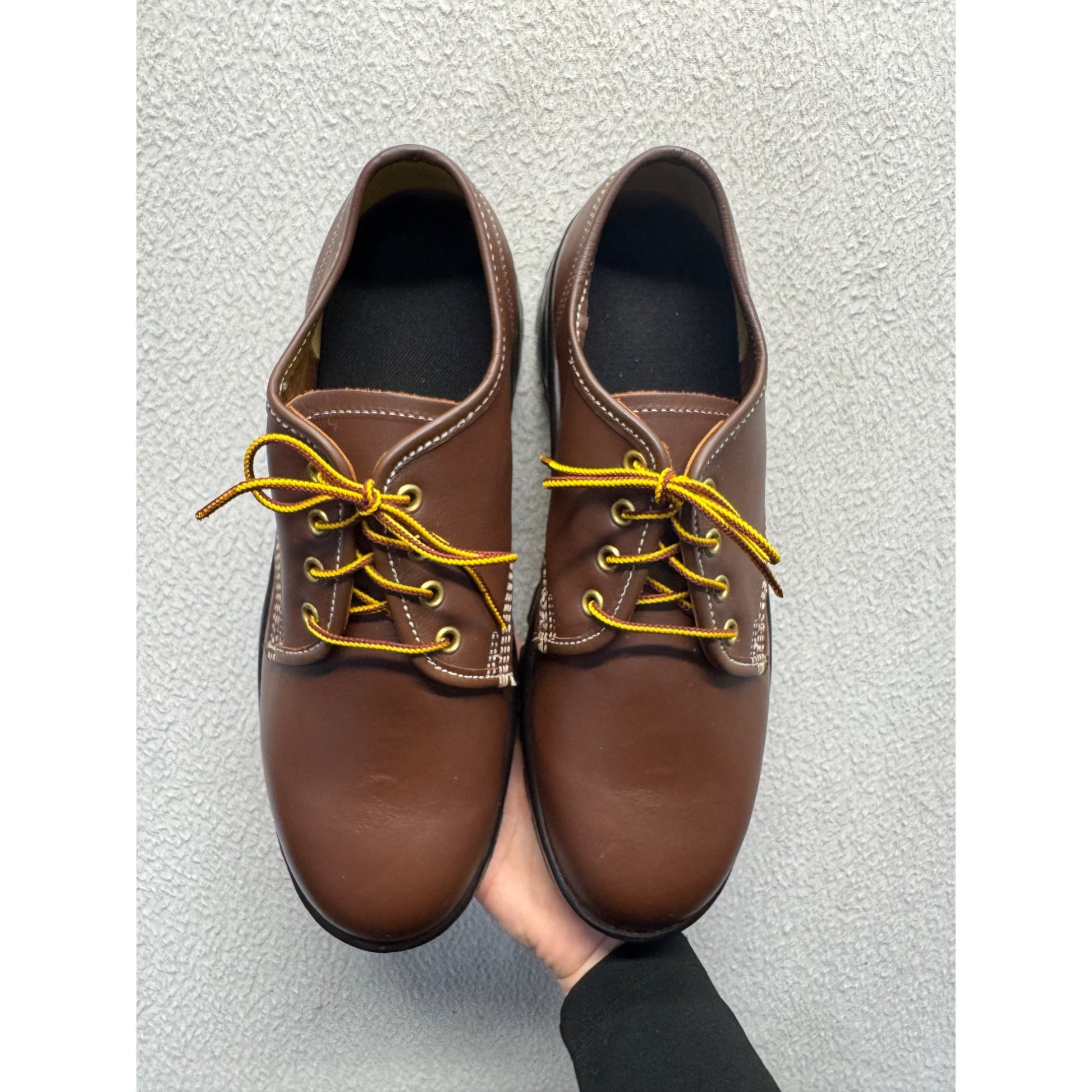 Crafted from durable leather, these lace-up shoes feature rugged soles for enhanced traction and comfort. Ideal for outdoor activities and versatile style.