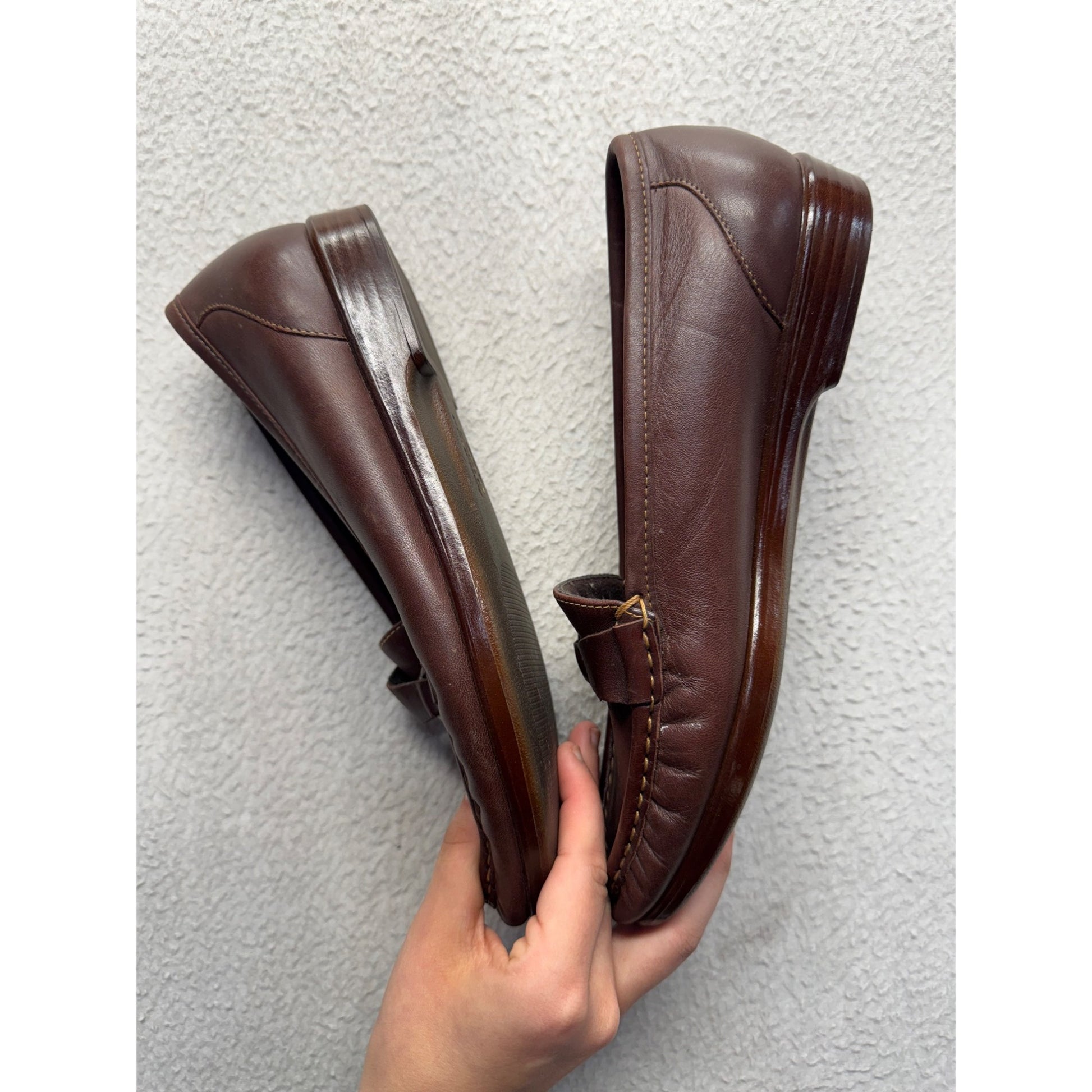 Brown Leather Slip-On Loafers With Buckle Accent By SAS Size 8.5M #9411