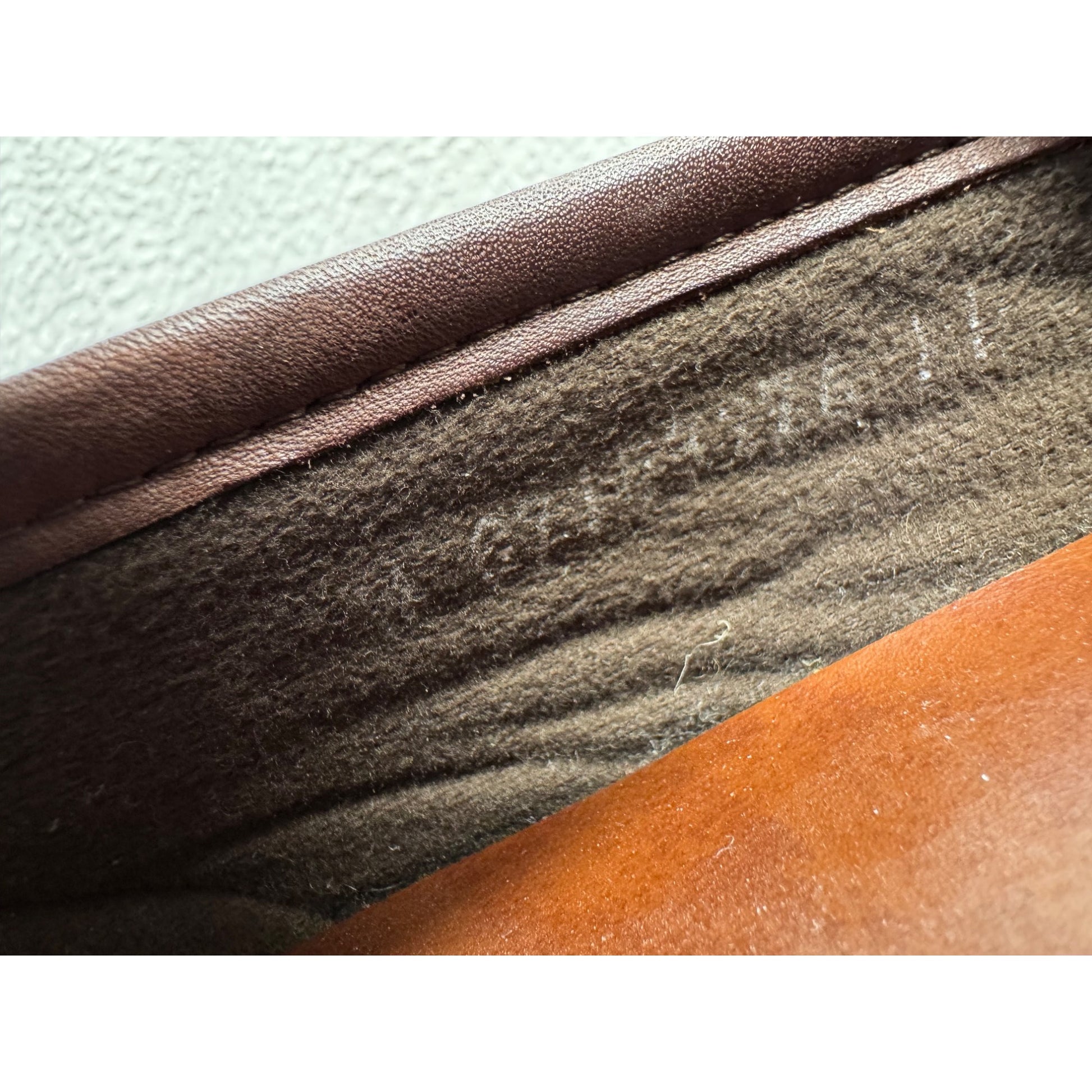 Minor scuffs visible on leather upper and back. Outsole shows light wear. Length from toe to heel = 12 inches.
