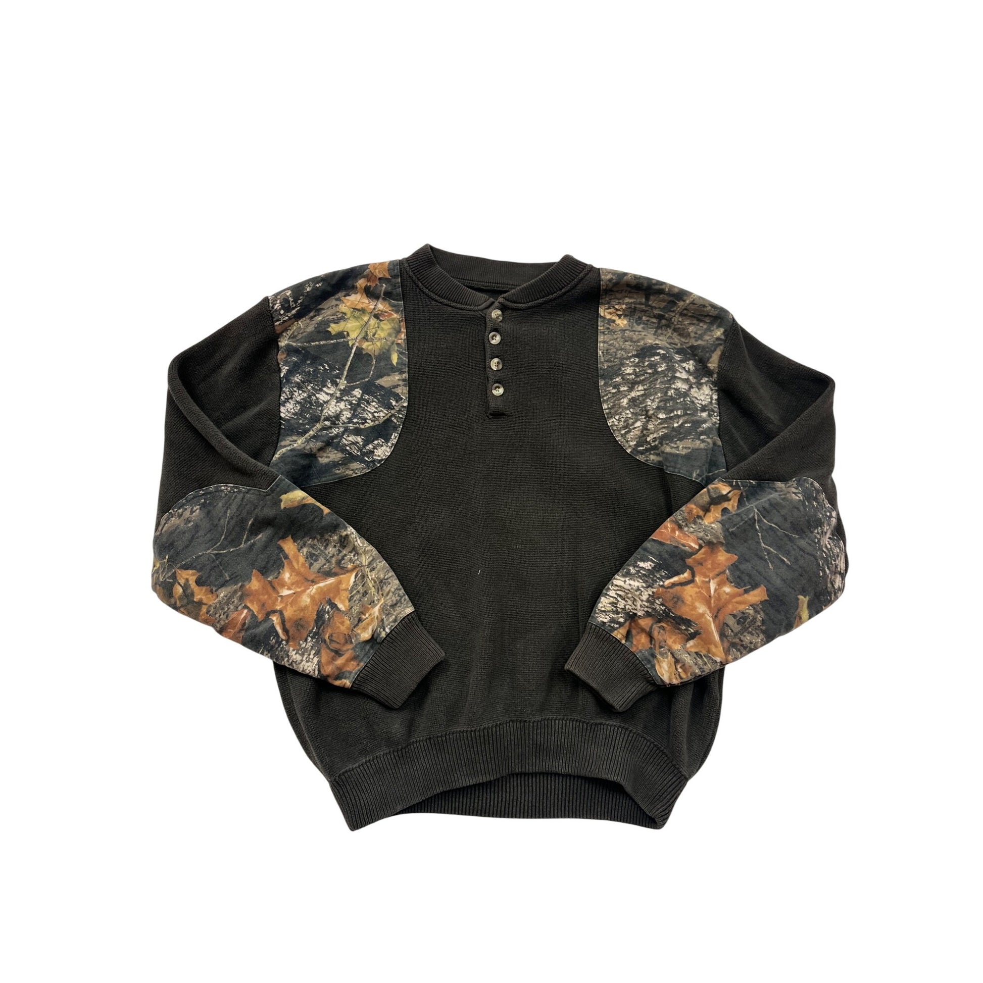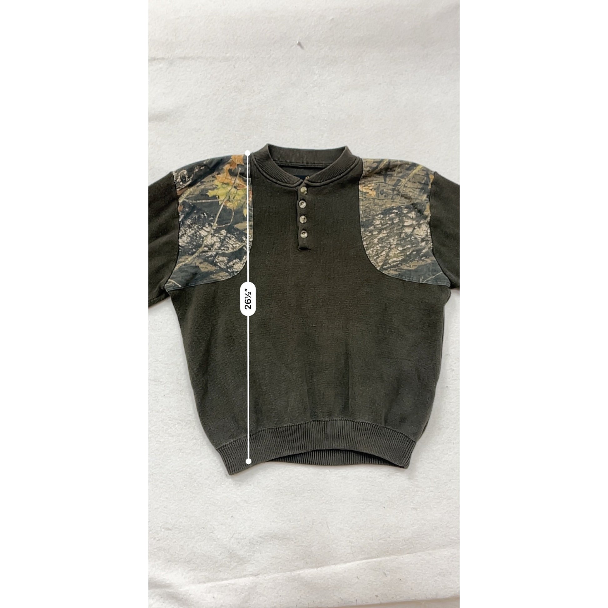 Browning Large Camo Sleeve Waffle Knit Cotton Henley Sweater #8831