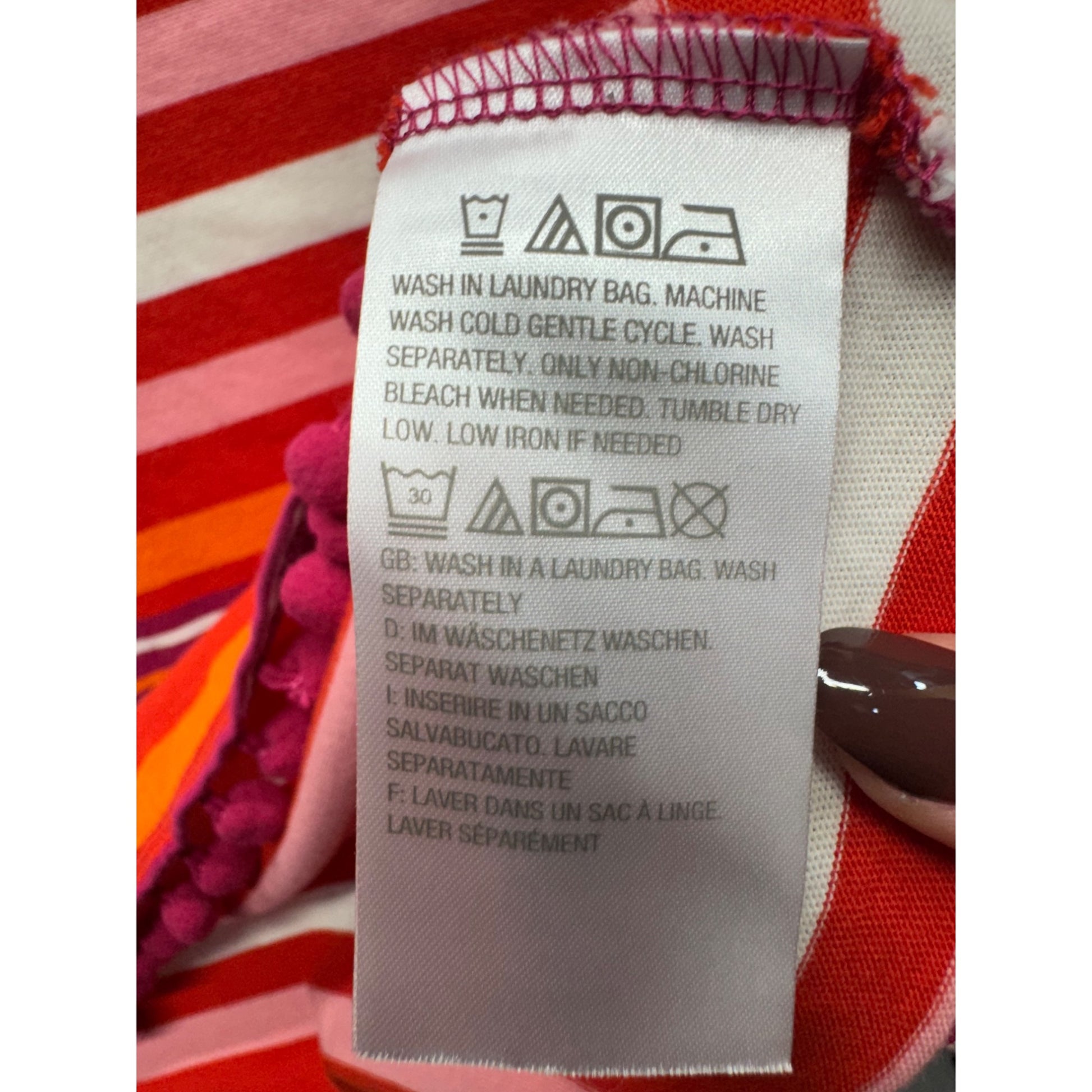 C. Wonder Striped Cotton T-Shirt With Pom Pom Hem Multicolor S 238B