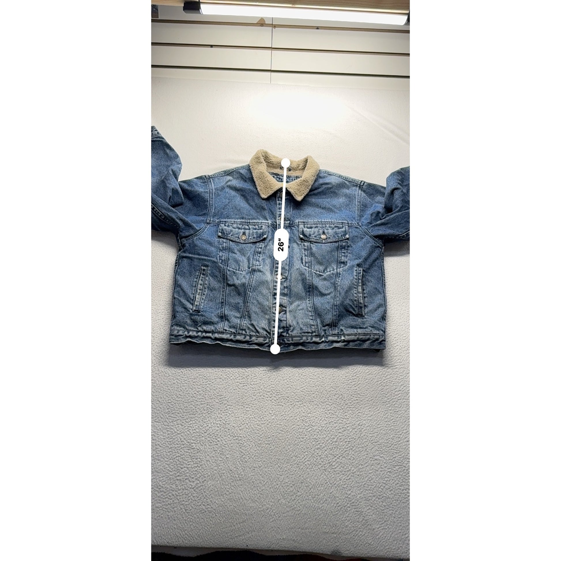 Stay warm and stylish with this sherpa-lined denim jacket. The tan collar adds a classic touch, while the durable cotton shell ensures lasting comfort.