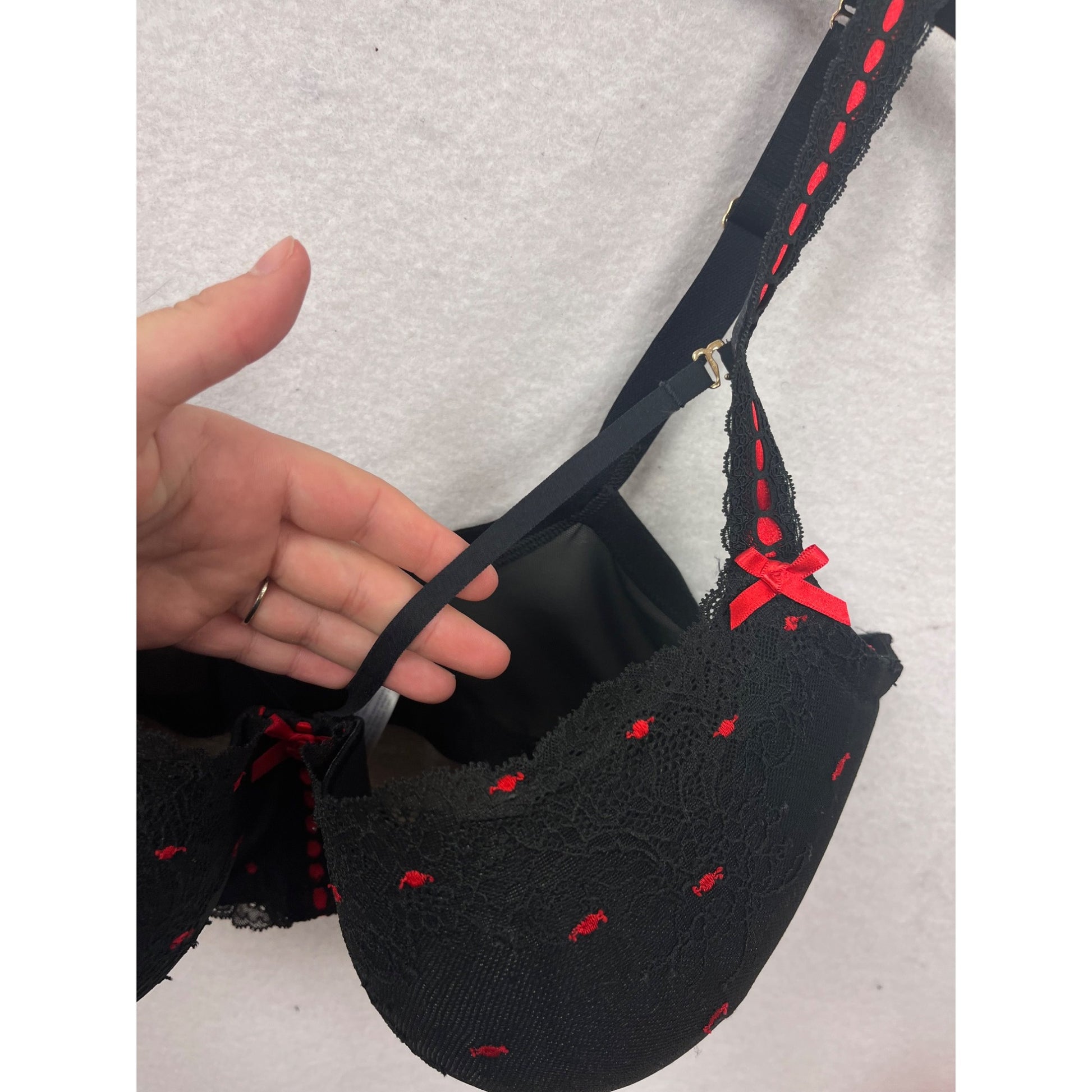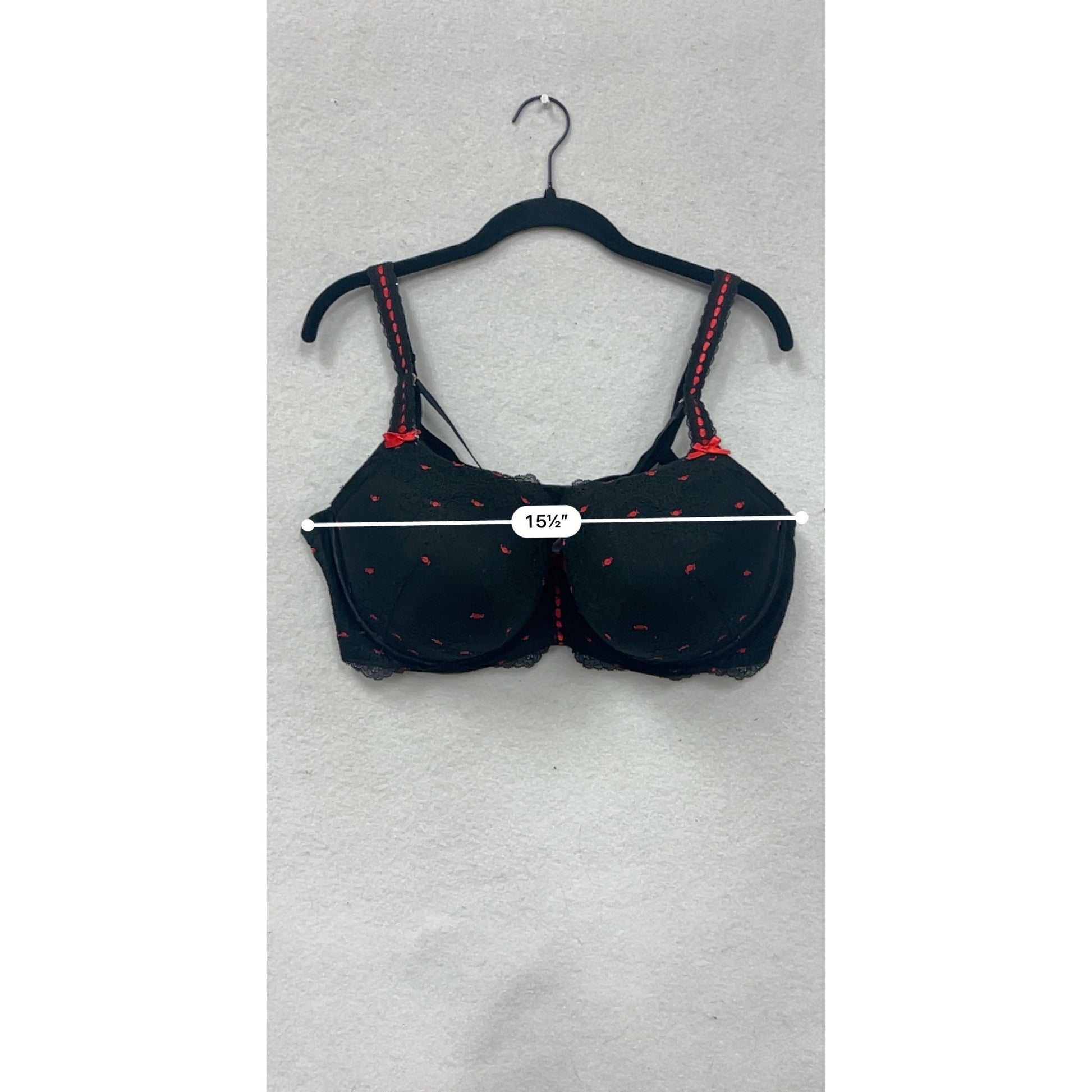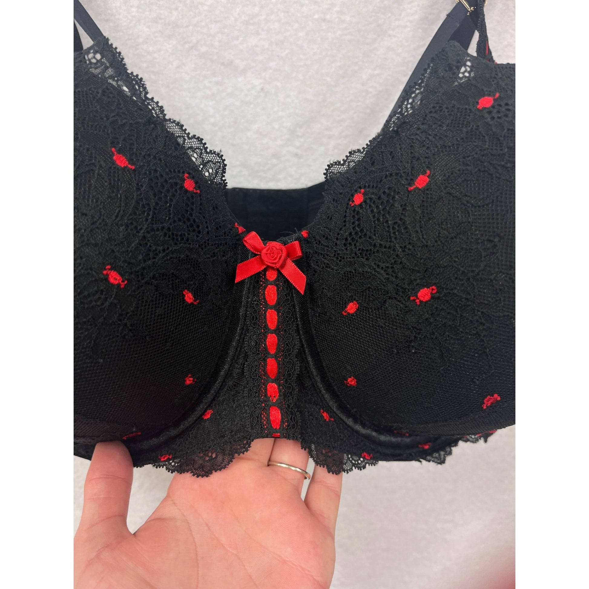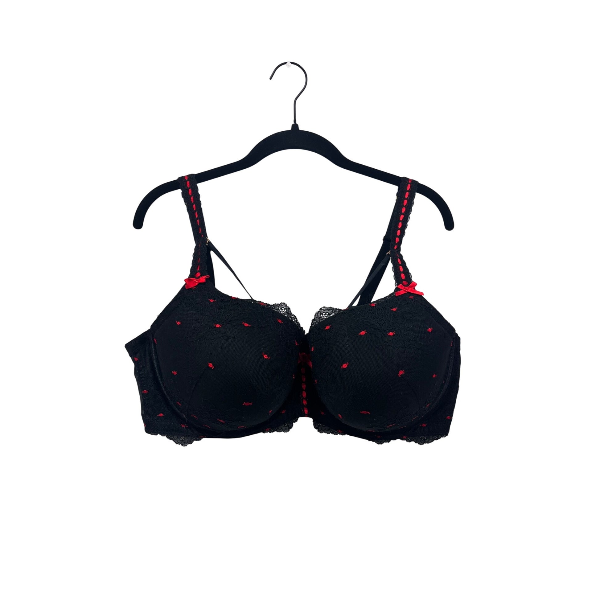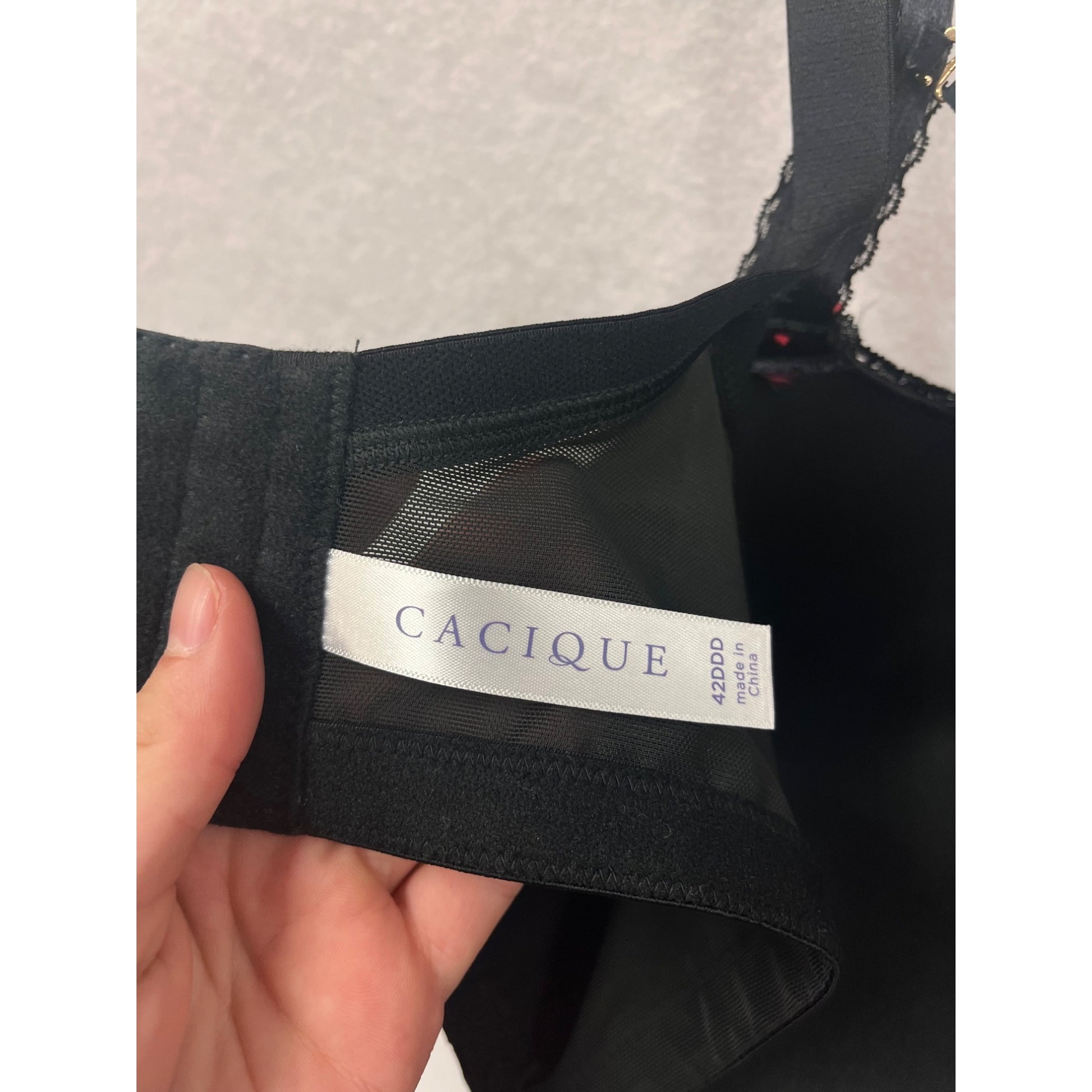 Cacique Black & Red Lace Embroidered Bra 42DDD #8599