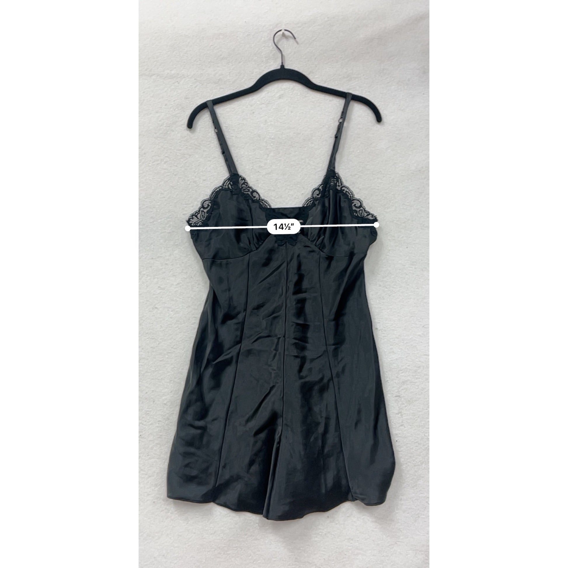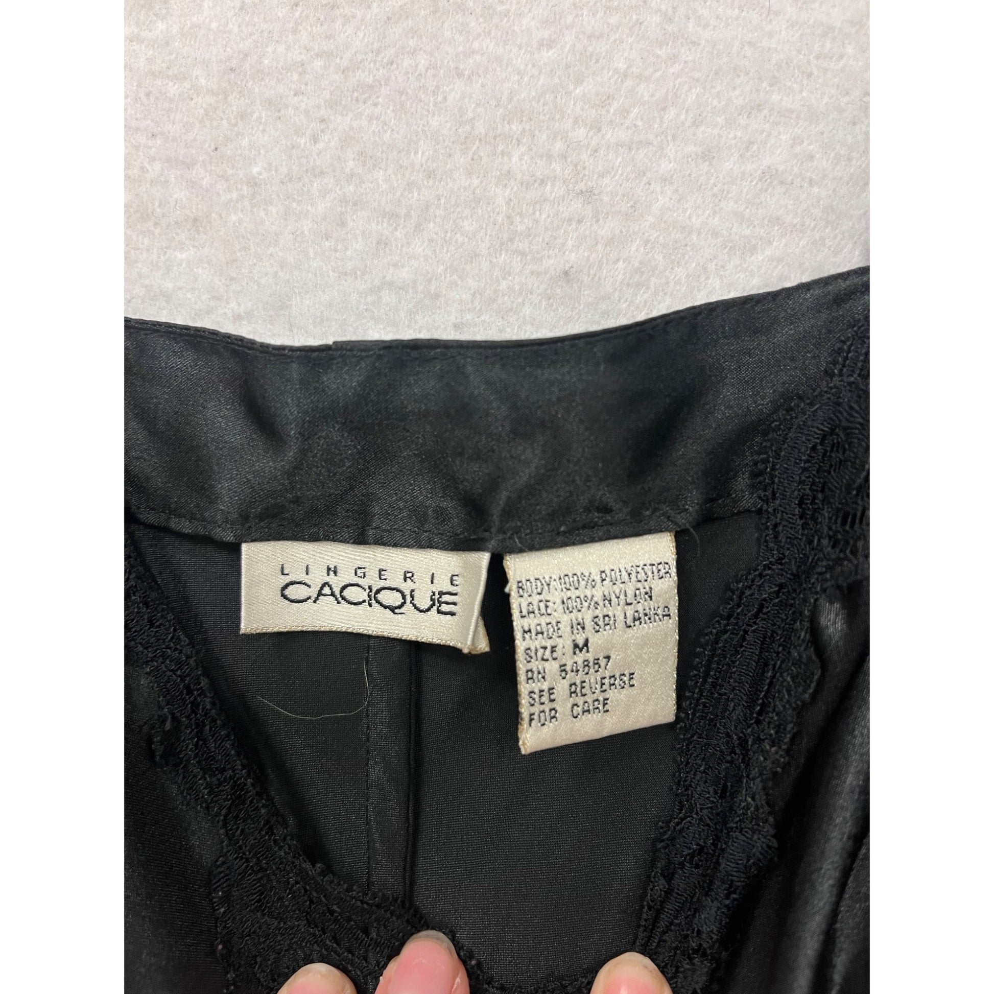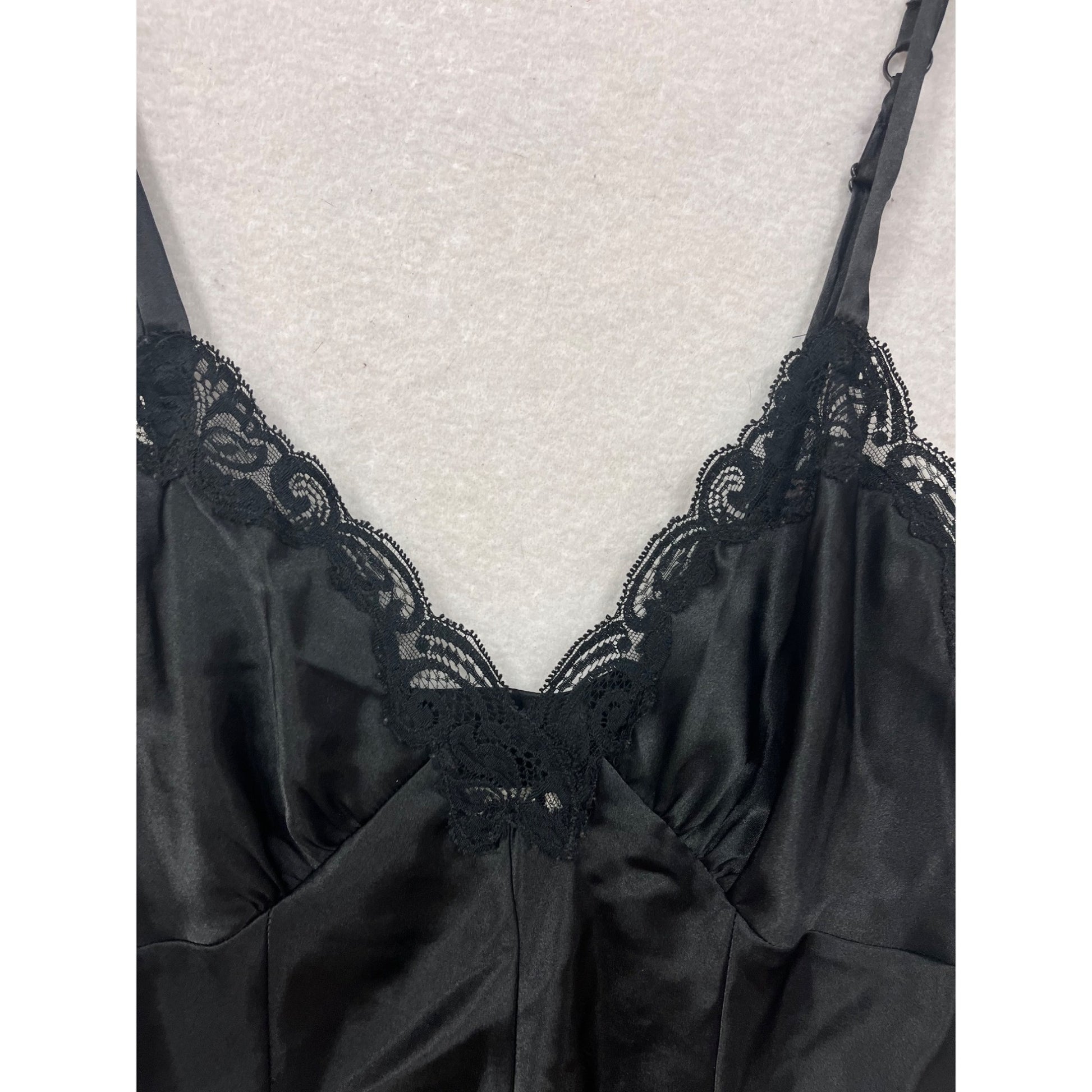 Cacique Womens Black Satin & Lace Chemise Lingerie Nightgown With Adjustable Straps Size M #8799