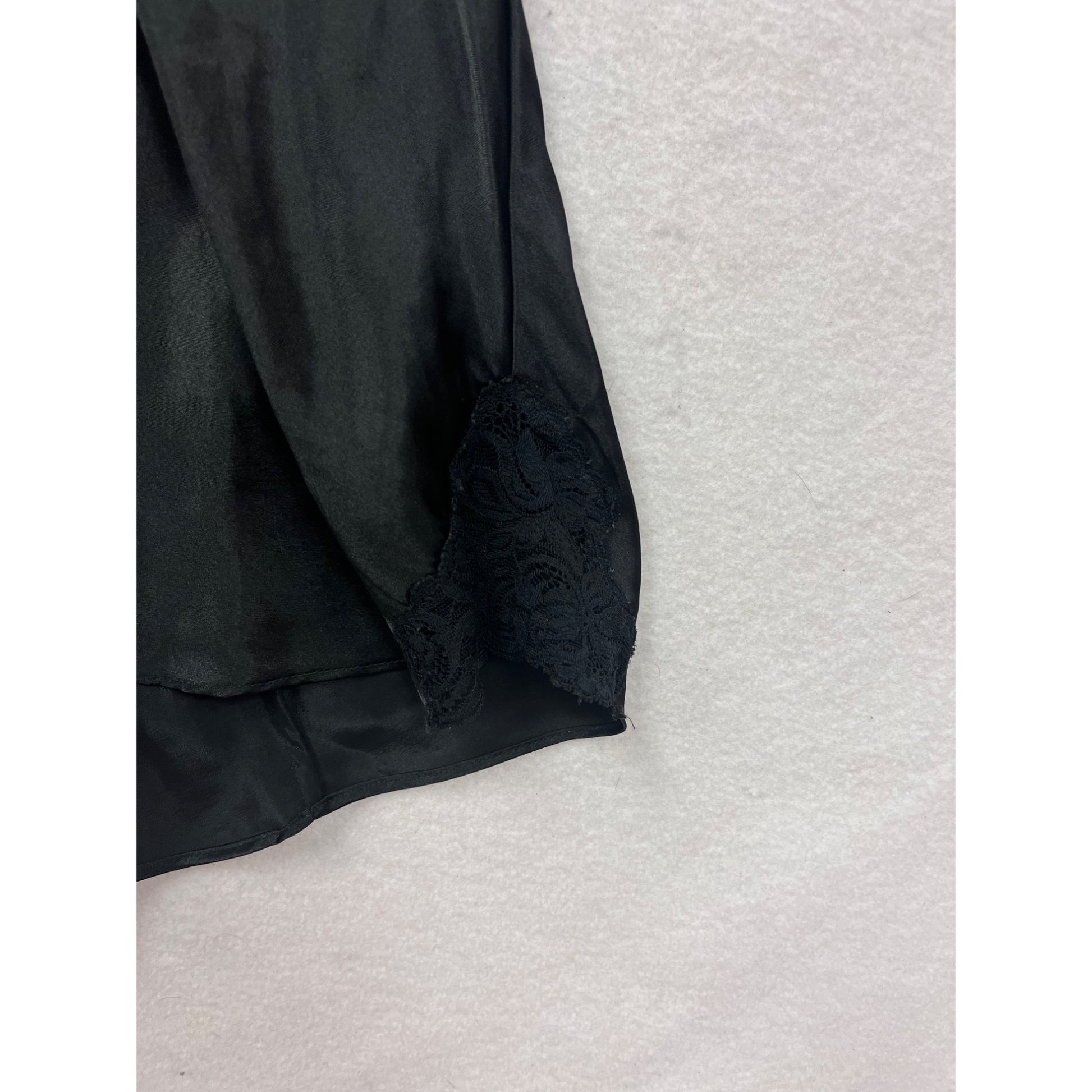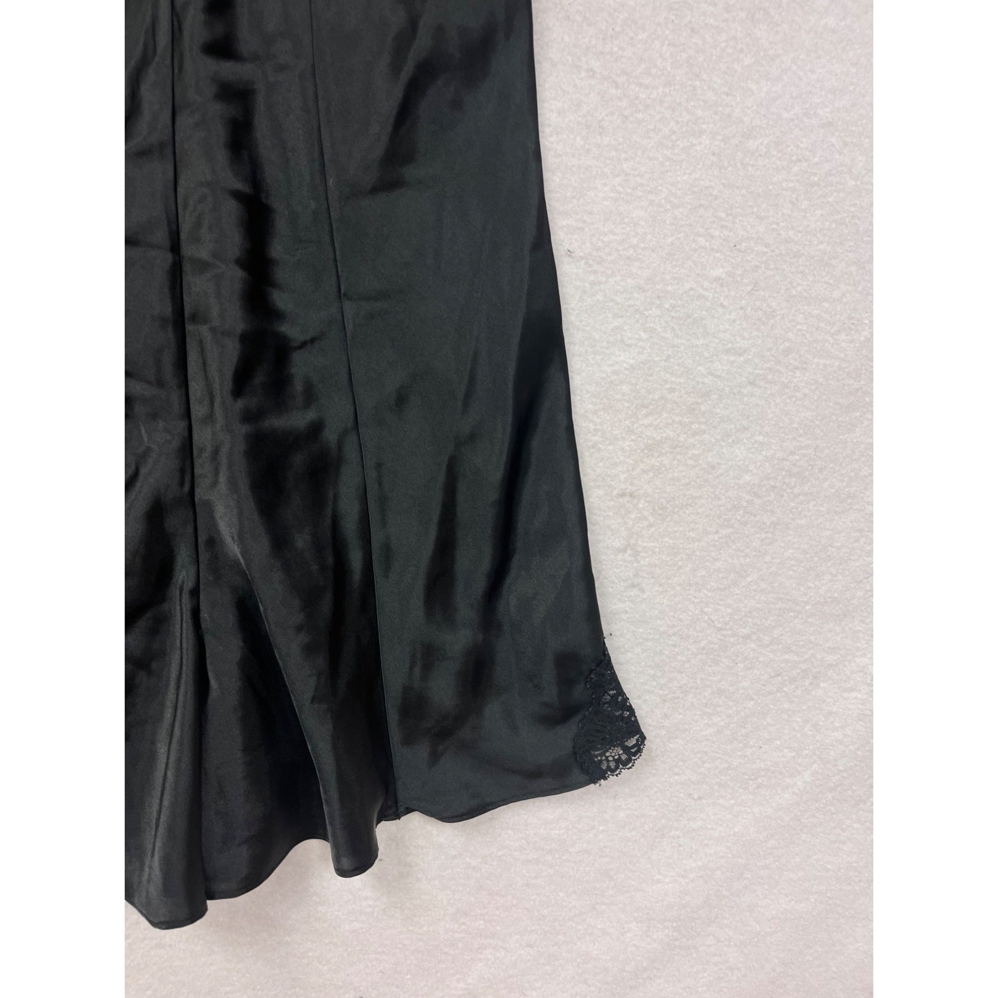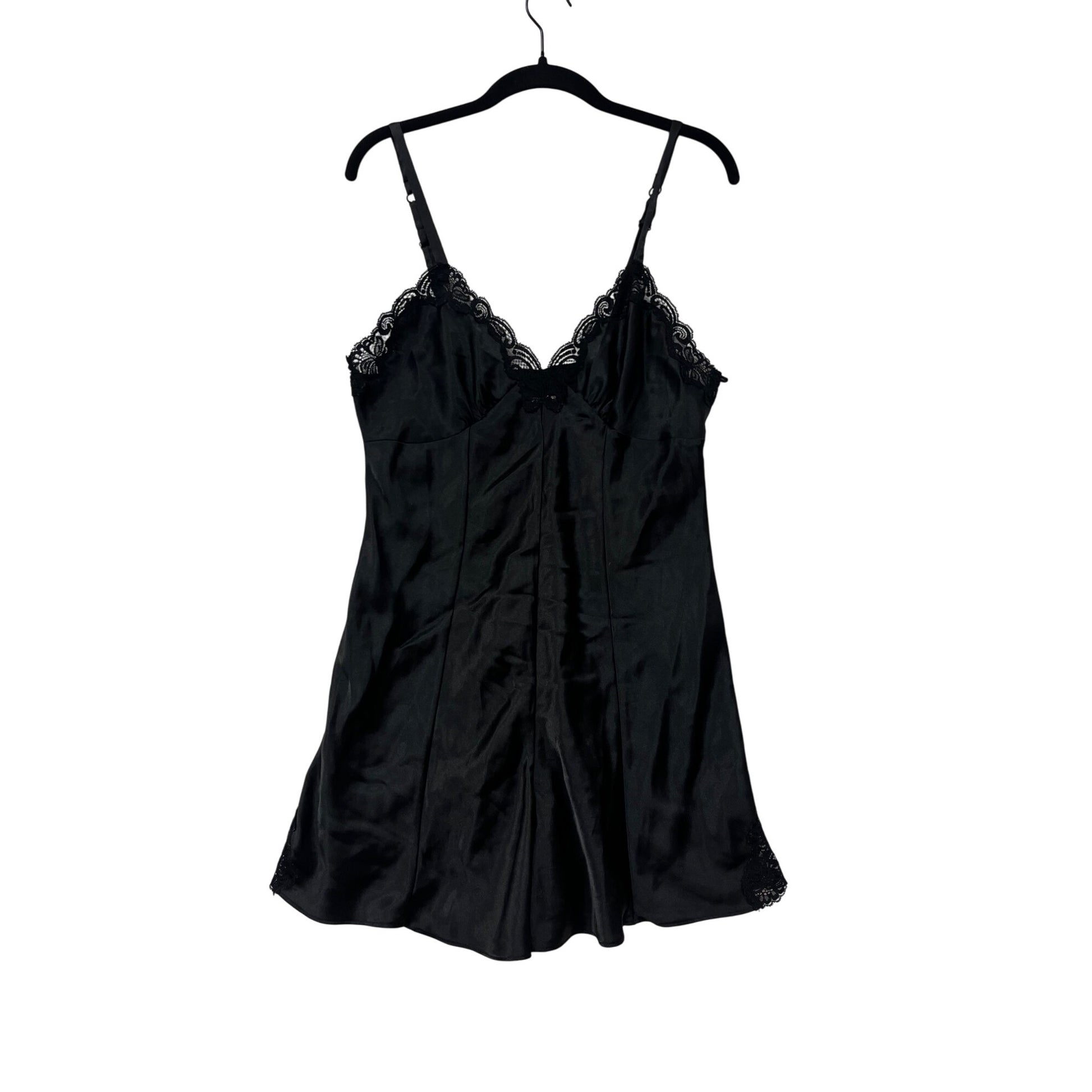 Cacique Womens Black Satin & Lace Chemise Lingerie Nightgown With Adjustable Straps Size M #8799