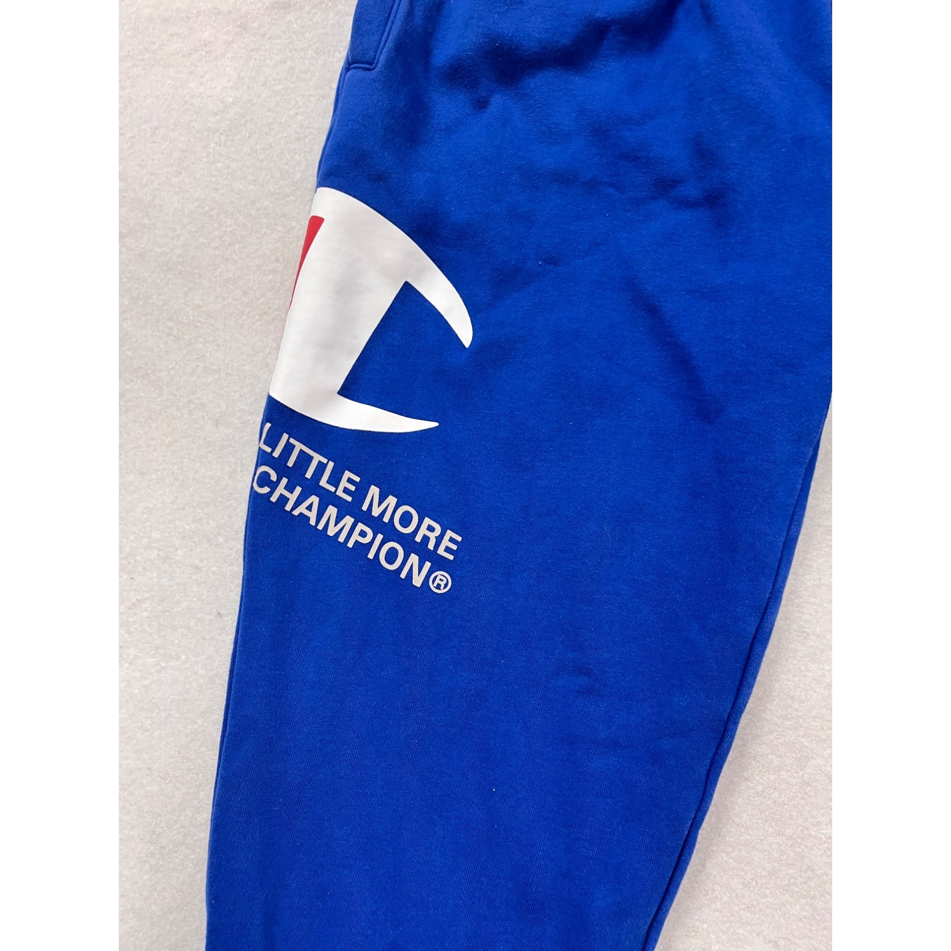These Champion sweatpants are made from a cotton and polyester blend, providing comfort and durability. The bold blue color and graphic print add a stylish touch, while the elastic waistband ensures a secure fit.