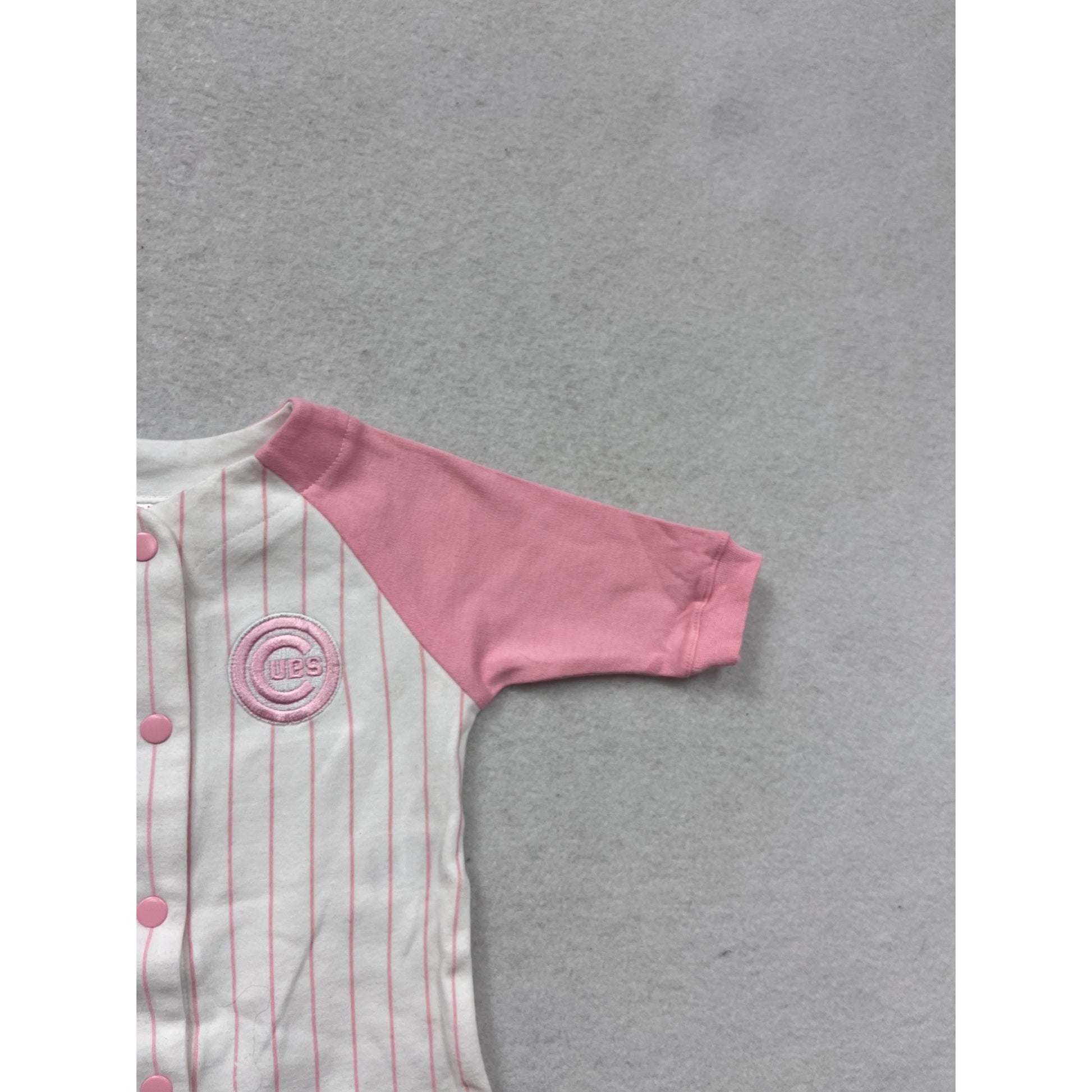 Chicago Cubs Baby Romper 0/3M Pink & White Striped #8841