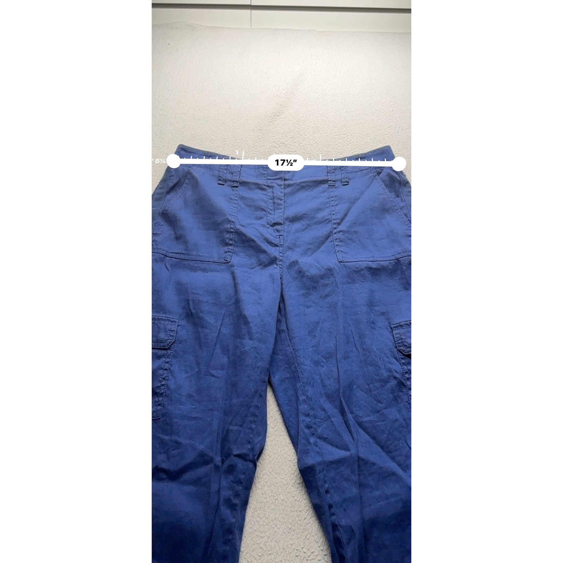 Chicos Blue Linen-Blend Cargo Pants Size 2 Crop With Pockets 458B