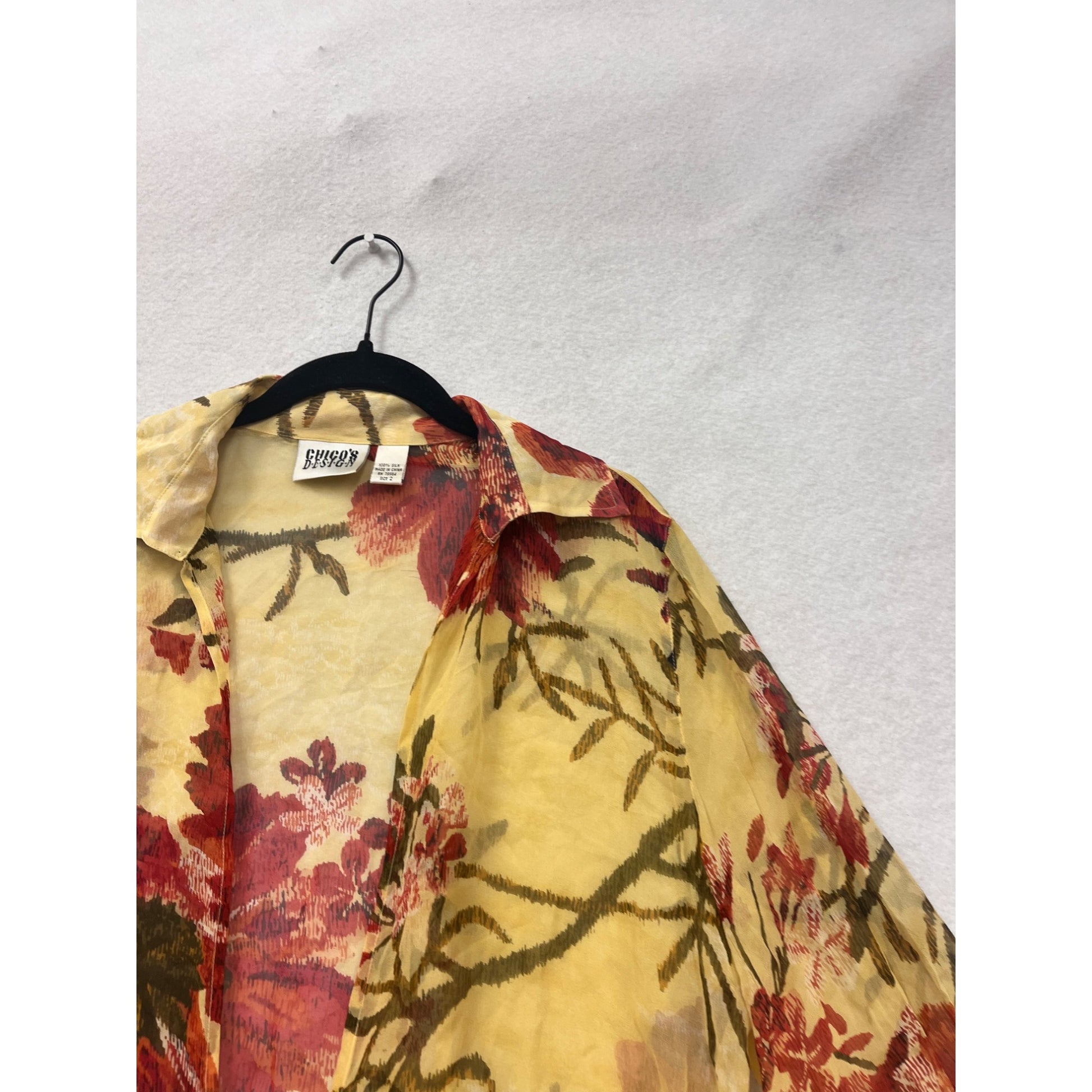 Chicos Sheer Floral Tie-Front Silk Blouse Size 2 #8624