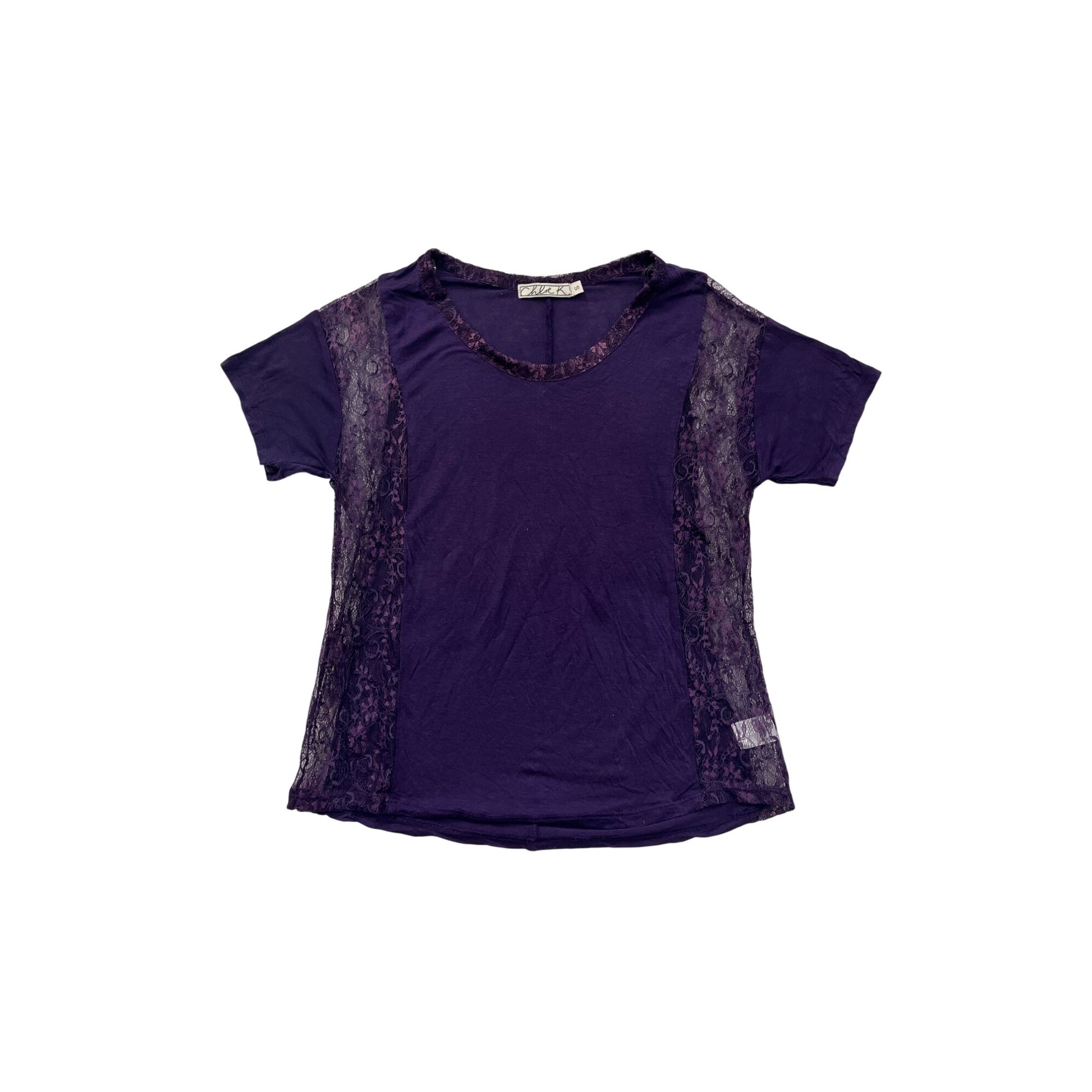 Chloe K Purple Lace Panel T-Shirt S #8501