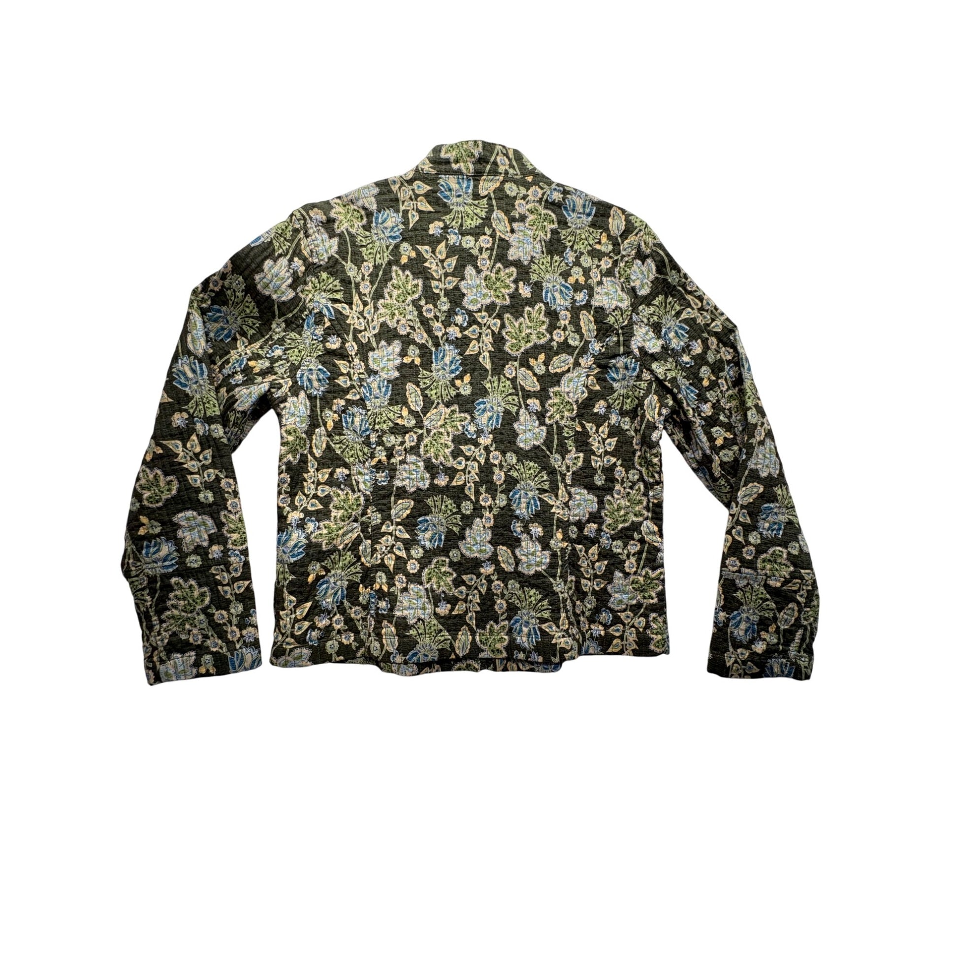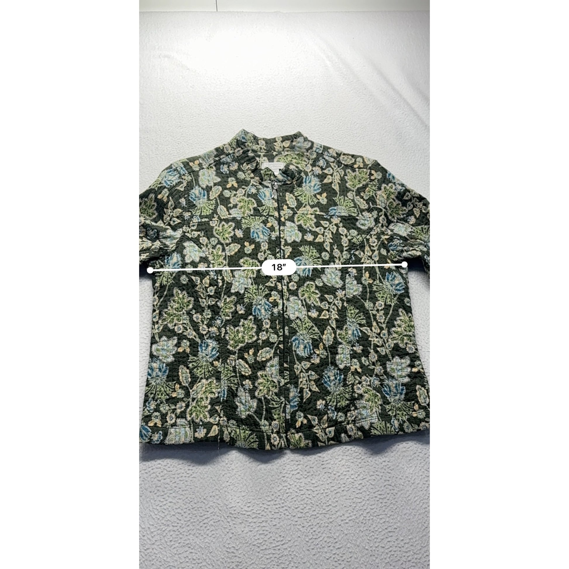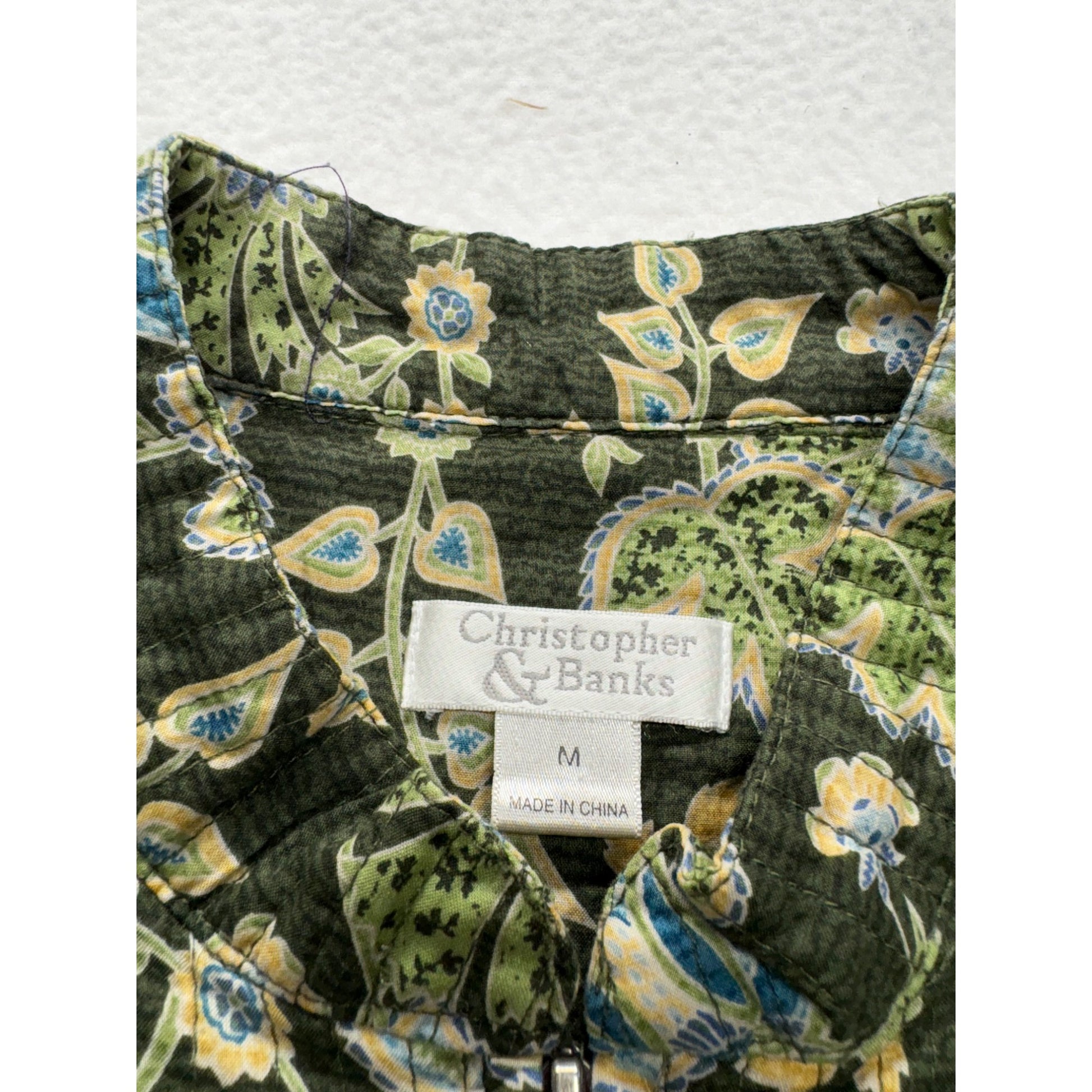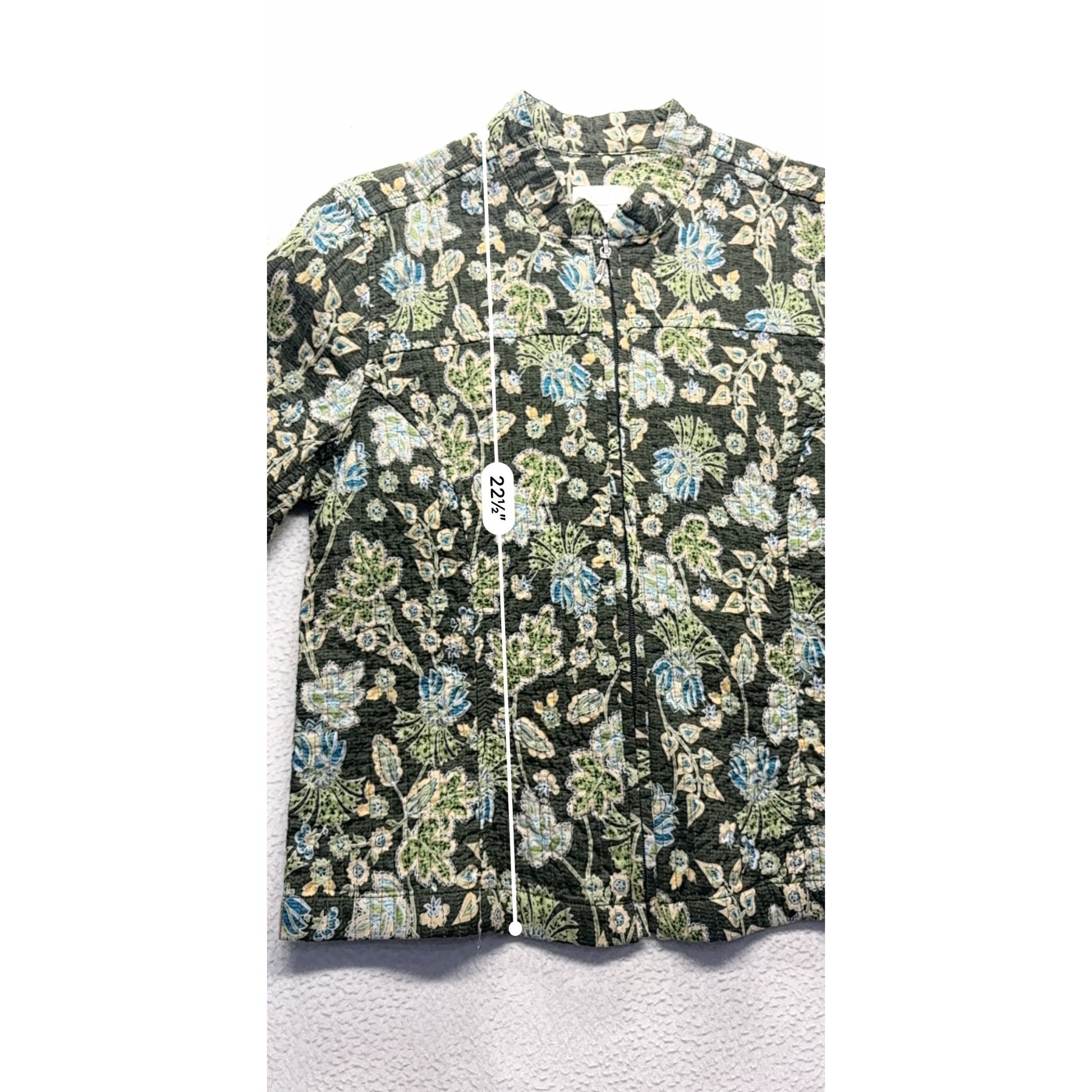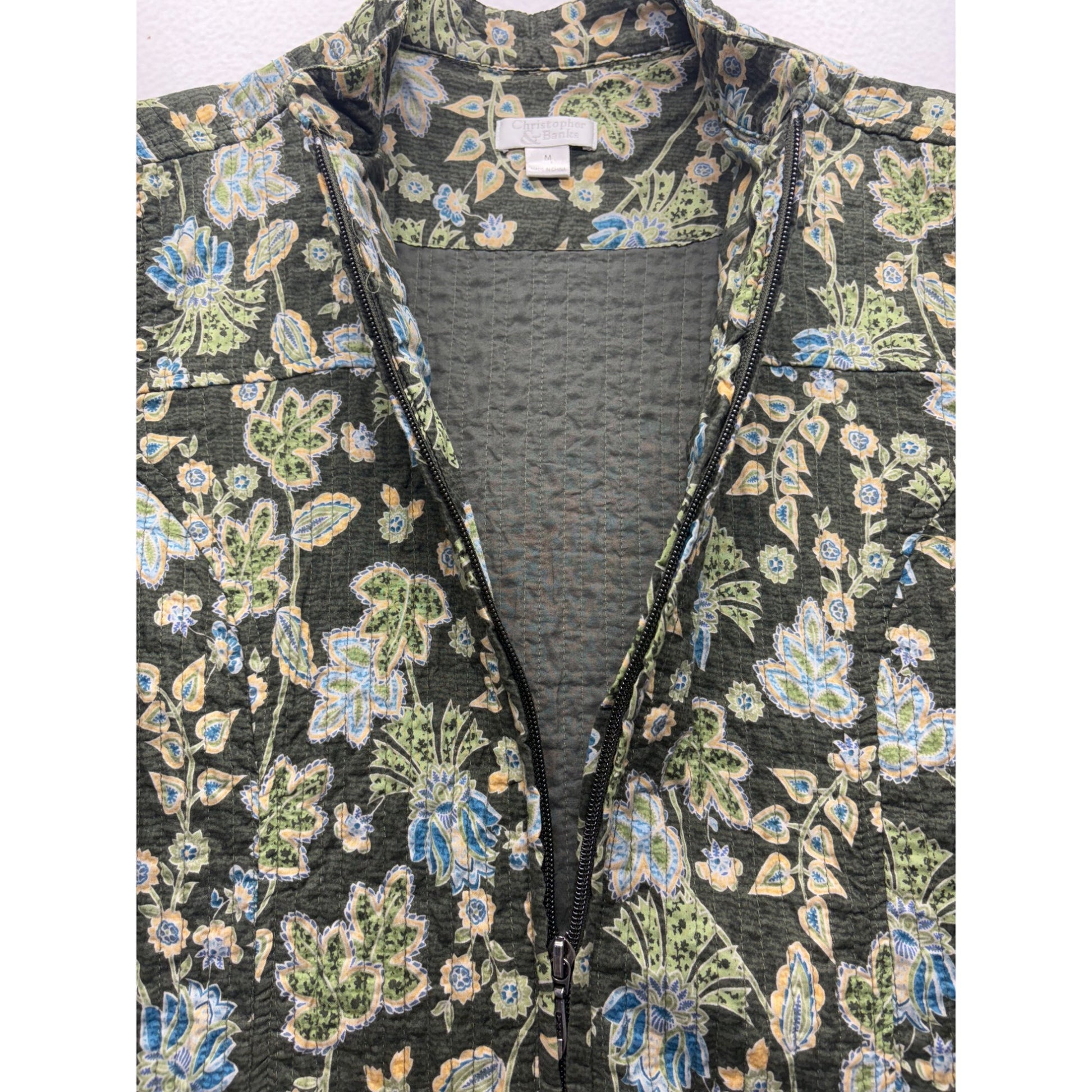 Christopher & Banks Floral Quilted Zip-Up Green Blazer #7691