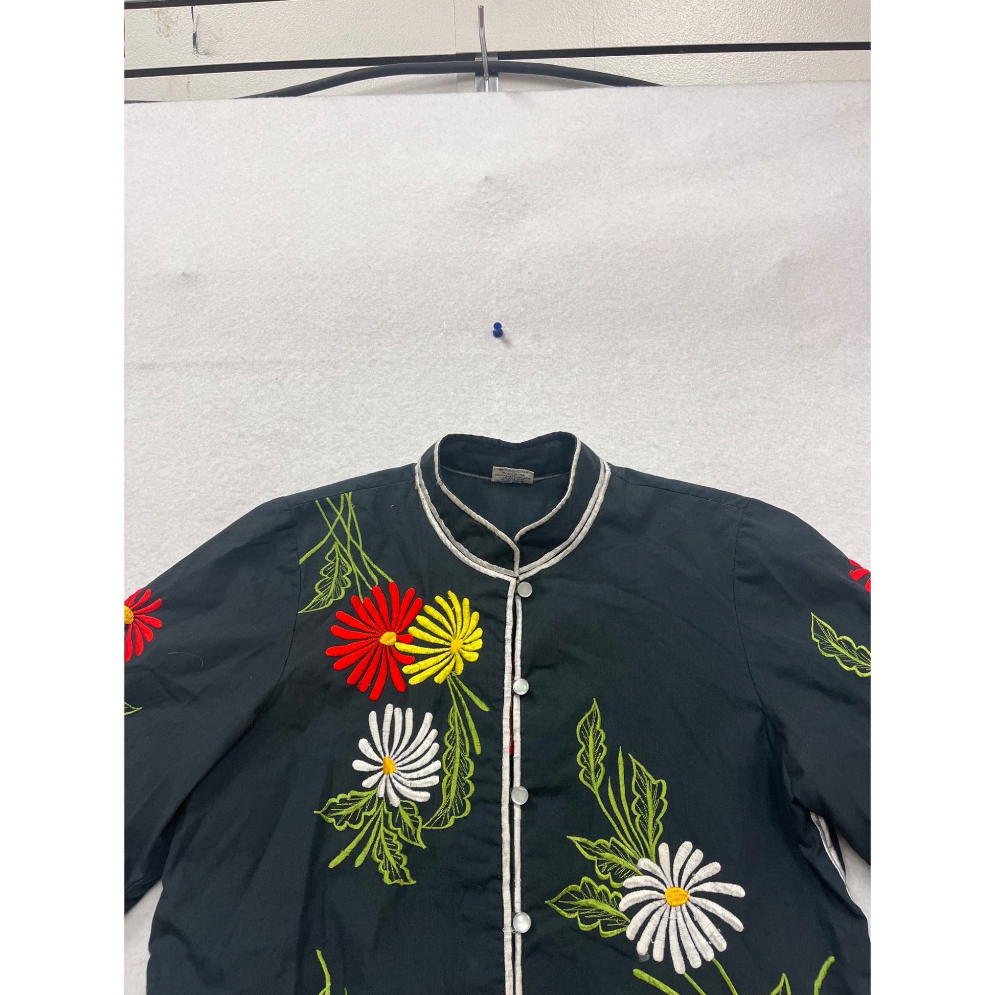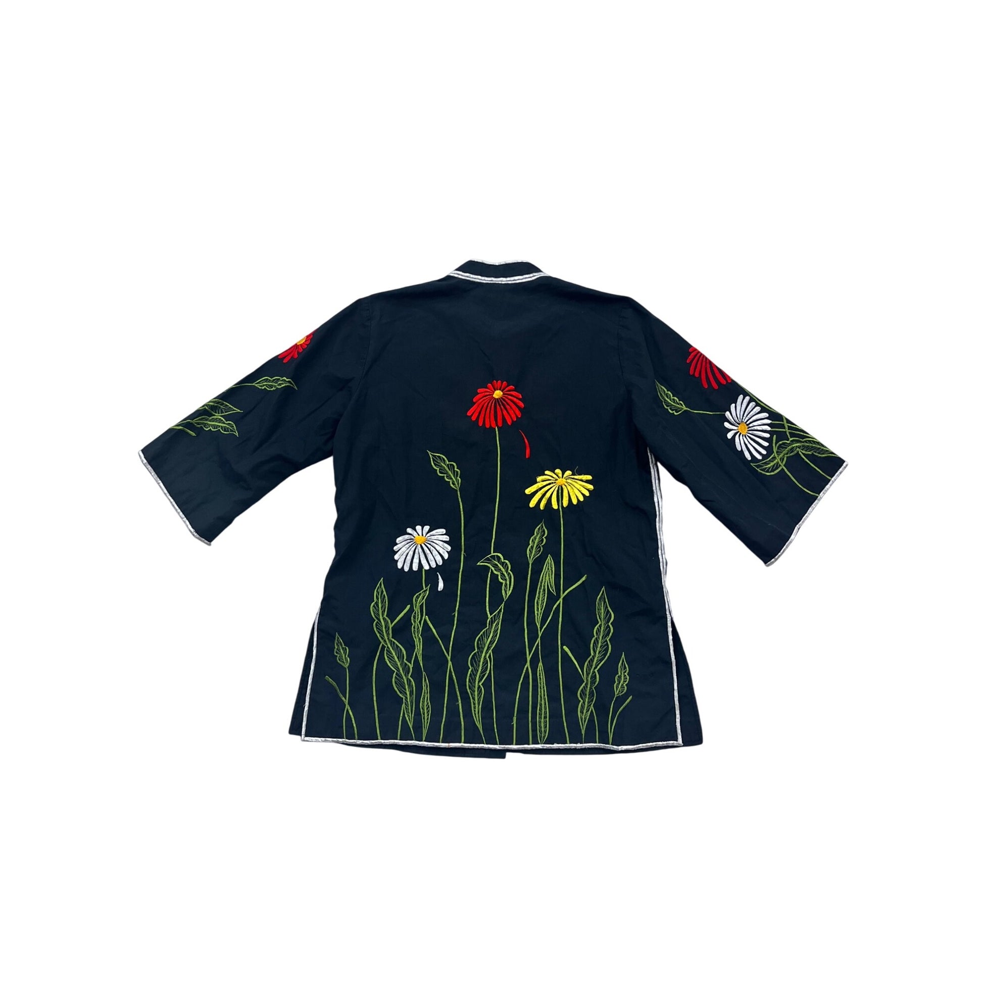 This floral embroidered cardigan by Chuch offers a sophisticated and charming touch to your wardrobe. Crafted with a blend of polyester and cotton, it features intricate flower designs and an elegant button-up front. Ideal for enhancing your everyday attire with a touch of elegance and grace.